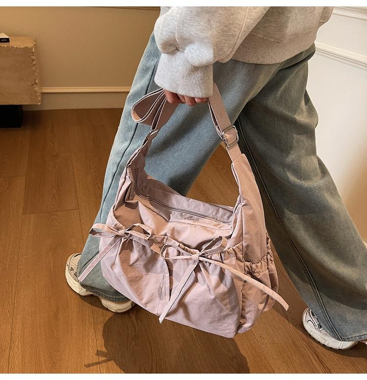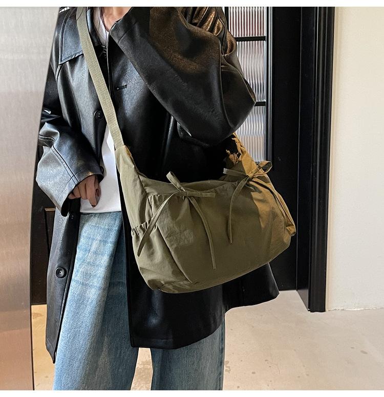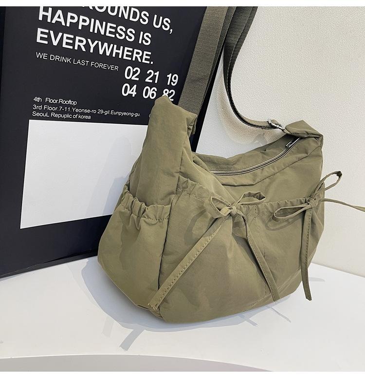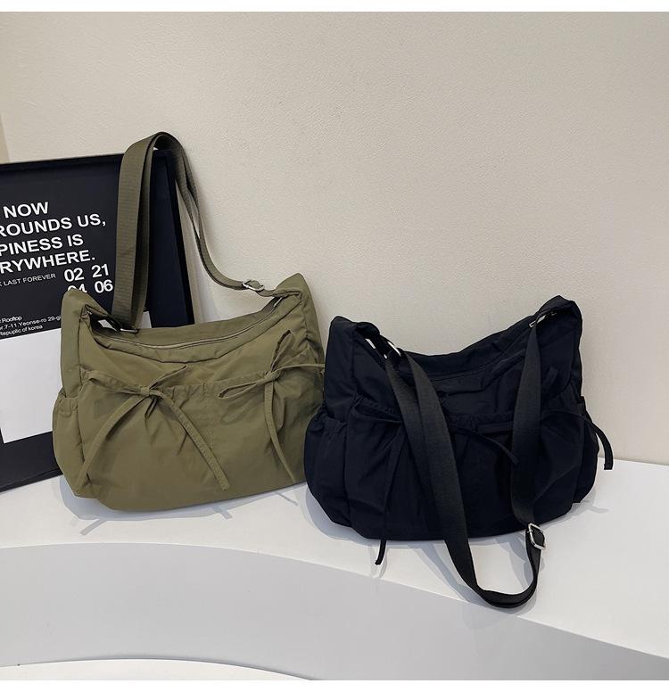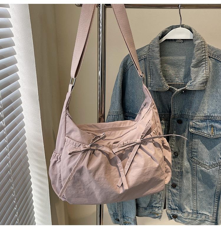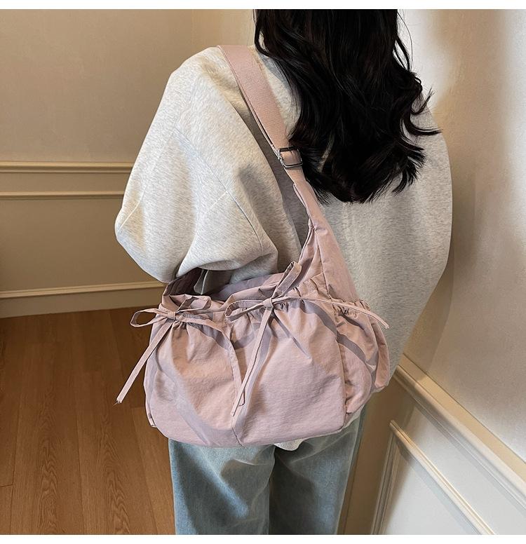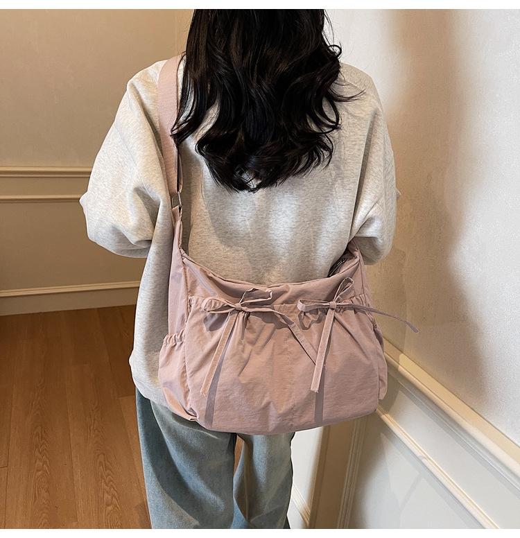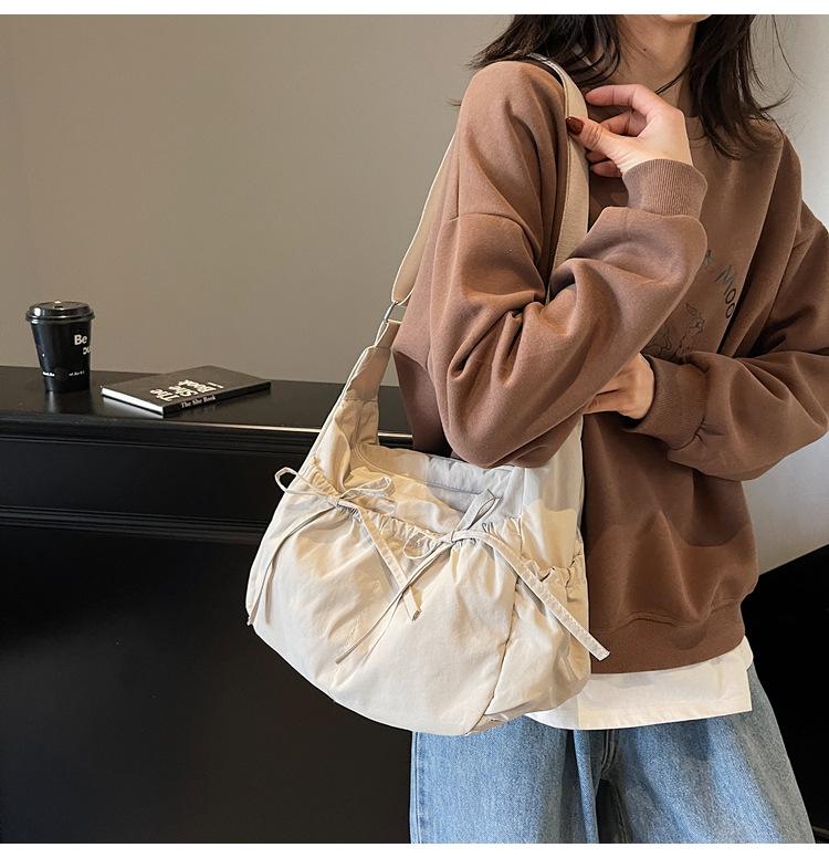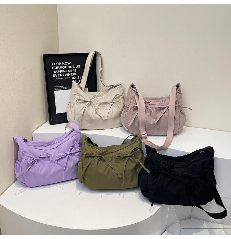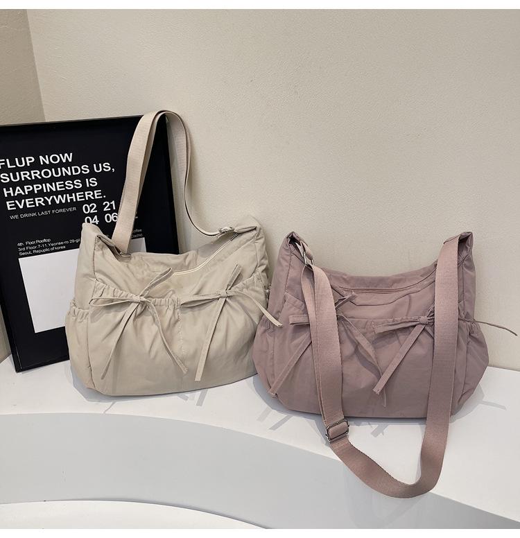 Bolso de Tela de Nailon Ligero con Lazo Bolso Cruzado Nuevo para Mujer 2025 Bolso Dumpling para Viajeros Estudiantes Universitarios Clase Bolso de Mujer