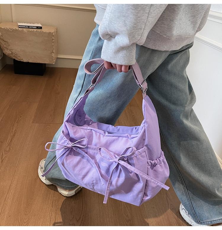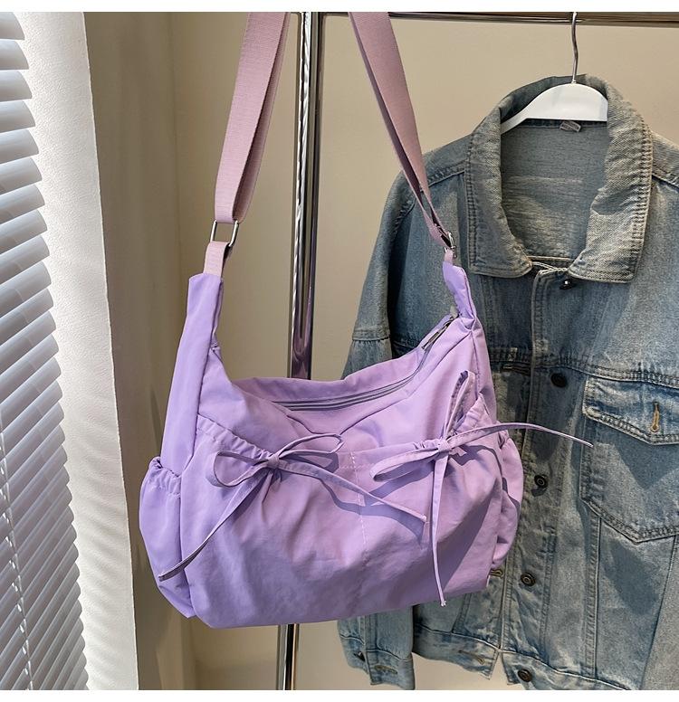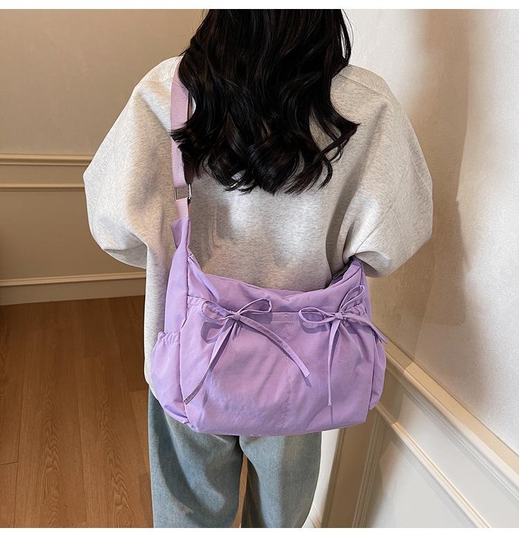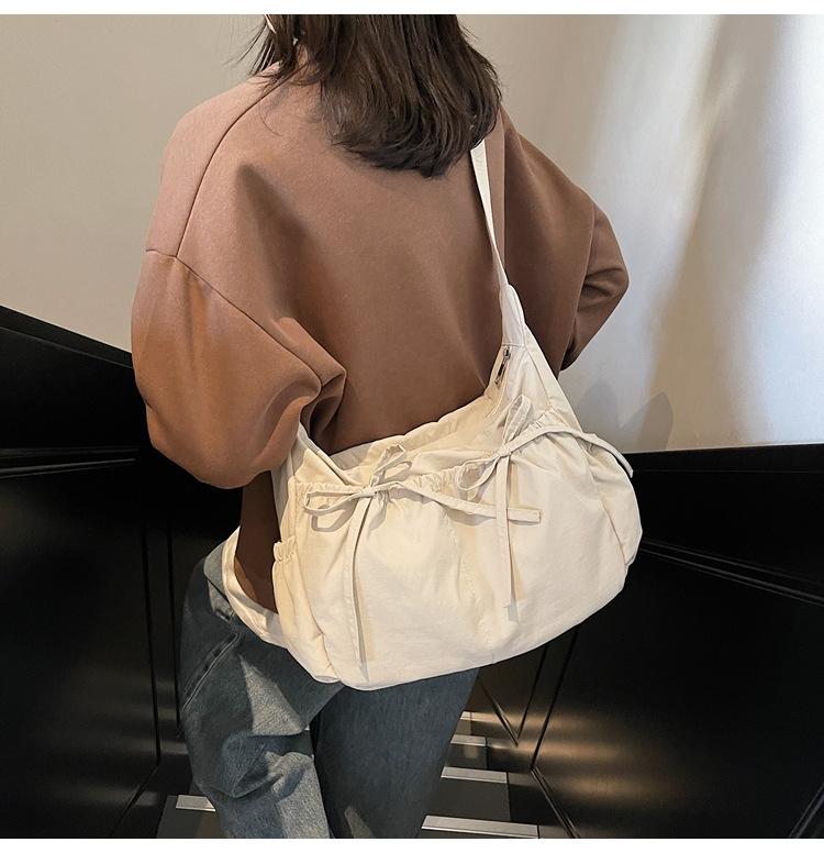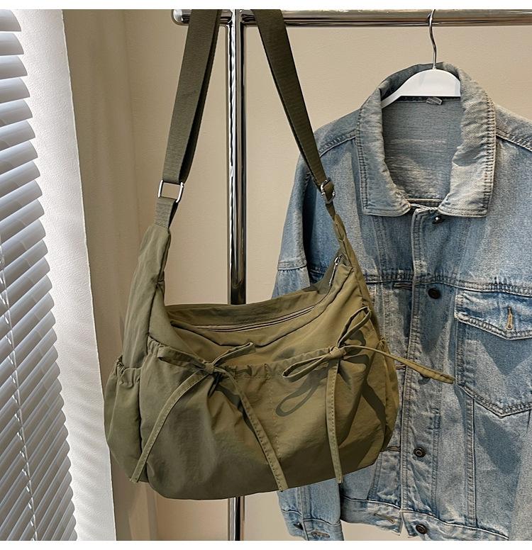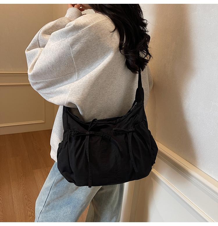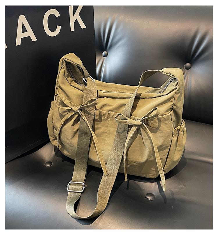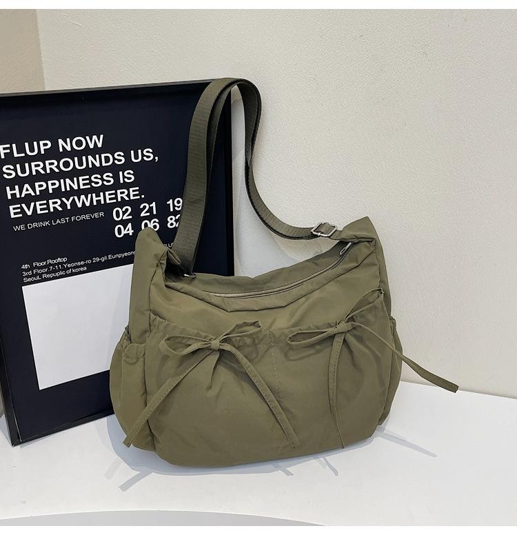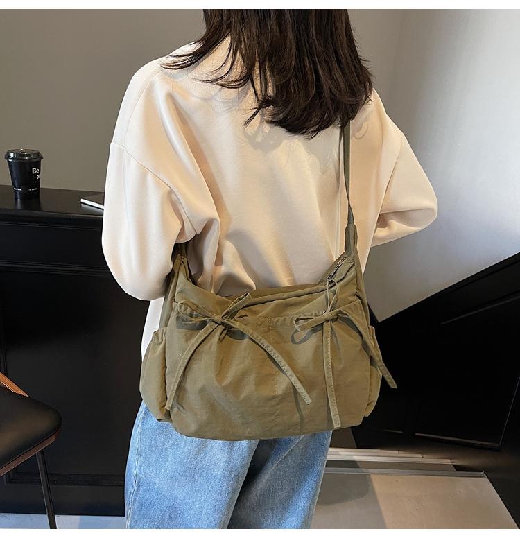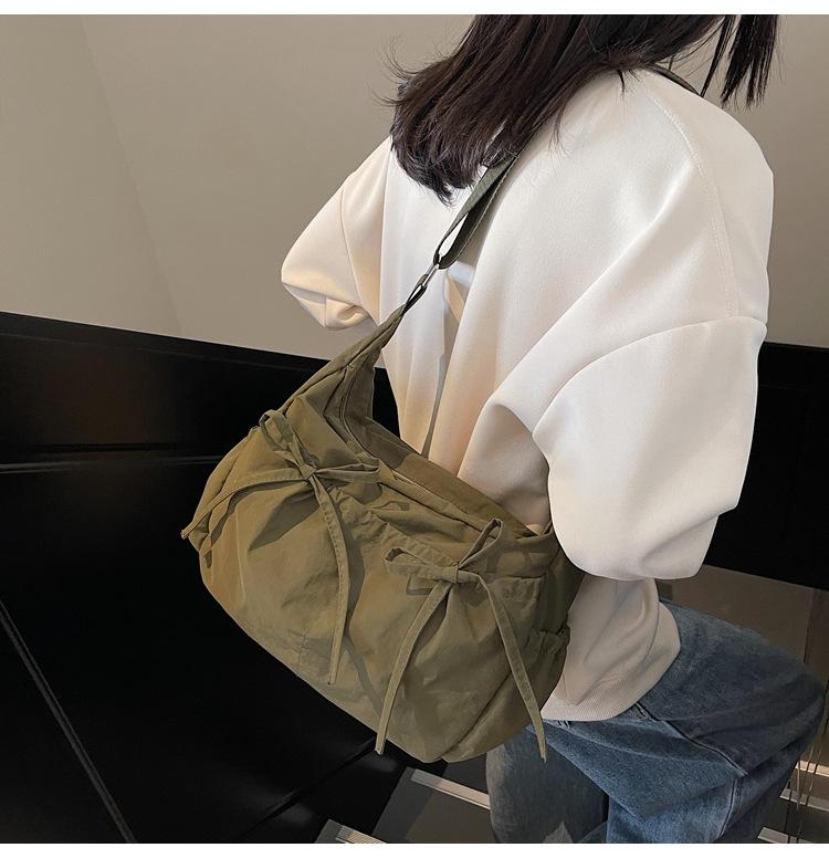Bolso de Tela de Nailon Ligero con Lazo Bolso Cruzado Nuevo para Mujer 2025 Bolso Dumpling para Viajeros Estudiantes Universitarios Clase Bolso de Mujer