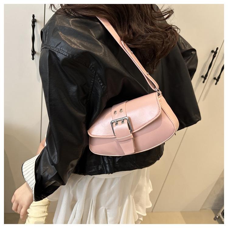 Bolso de Hombro para Mujer 2025 Primavera y Verano Nuevo Estilo Coreano Moda Retro Simple Hebilla de Cinturón Bolso de Axila Elegante para Mujer