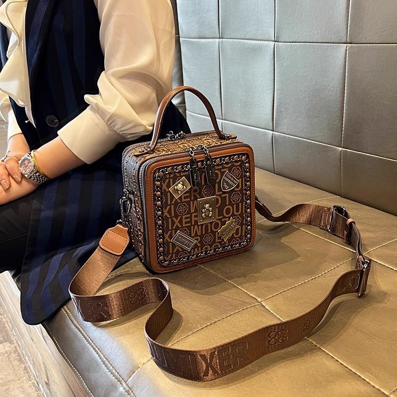 Bolsos para Mujer 2024 Nuevo Versátil Retro Elegante Cartera Bolso Cuadrado Pequeño Multifuncional Bandolera Bolso de Hombro Bolso Caja