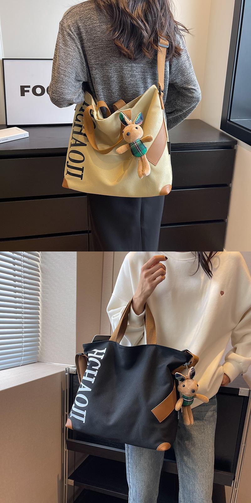 Bolsa Tote de Lona Estilo Japonés Casual Gran Capacidad Bolso de Mano Viajero Estudiante Clase Versátil Hombro Cruzado