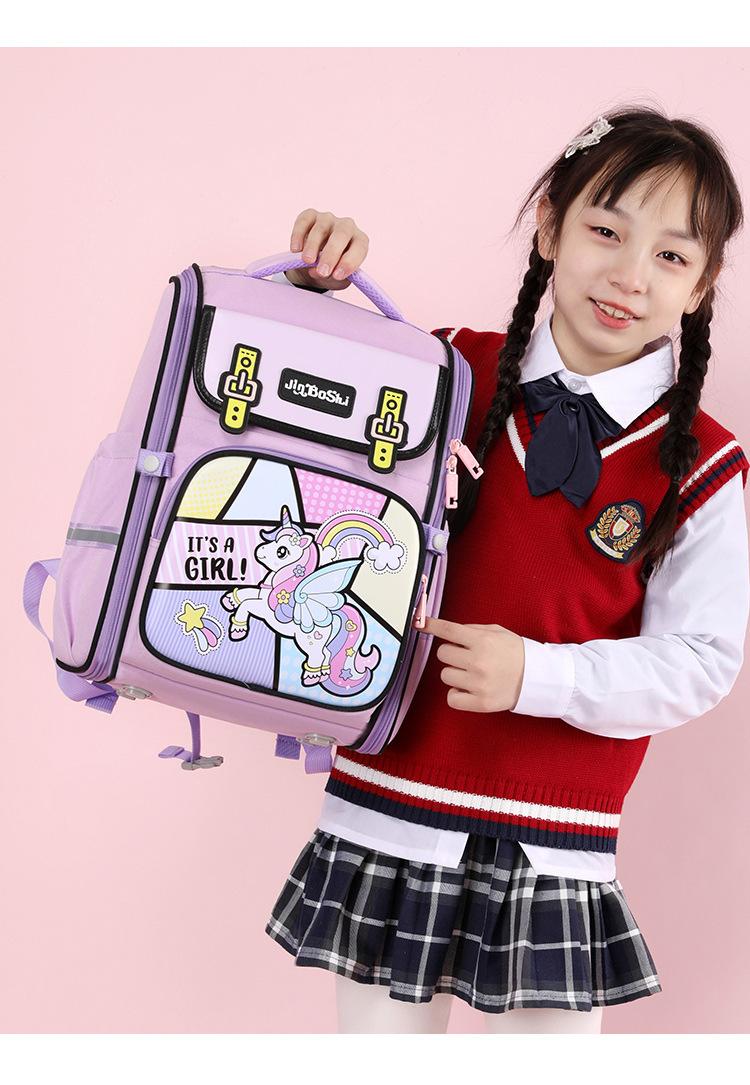 Mochila para Estudiante de Primaria Niña Grados 1-6 Mochila con Patrón de Dibujos Animados Ligera Reductora de Carga de Gran Capacidad Protección para la Columna