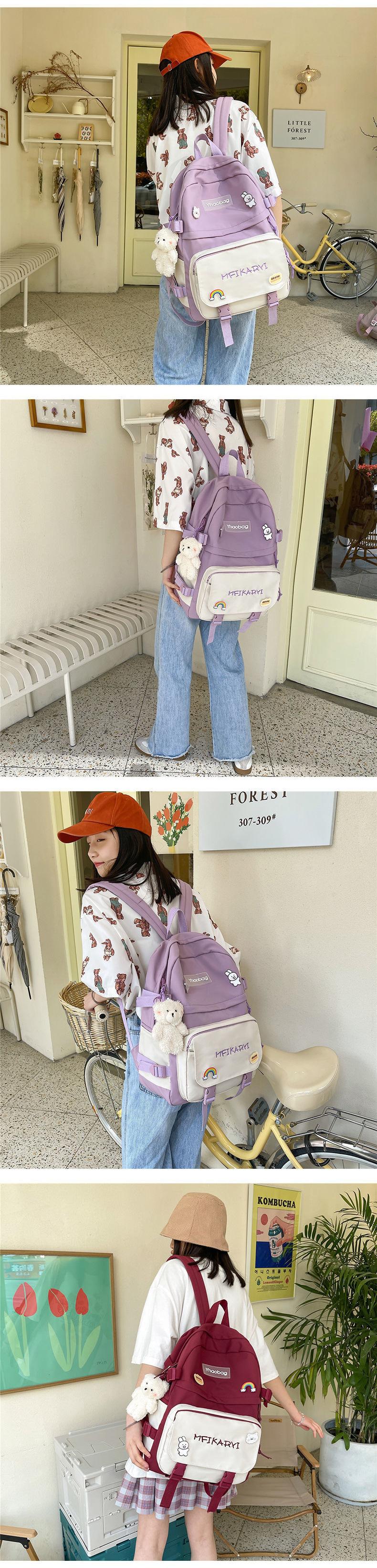 Large school bag + 5 badges + bear