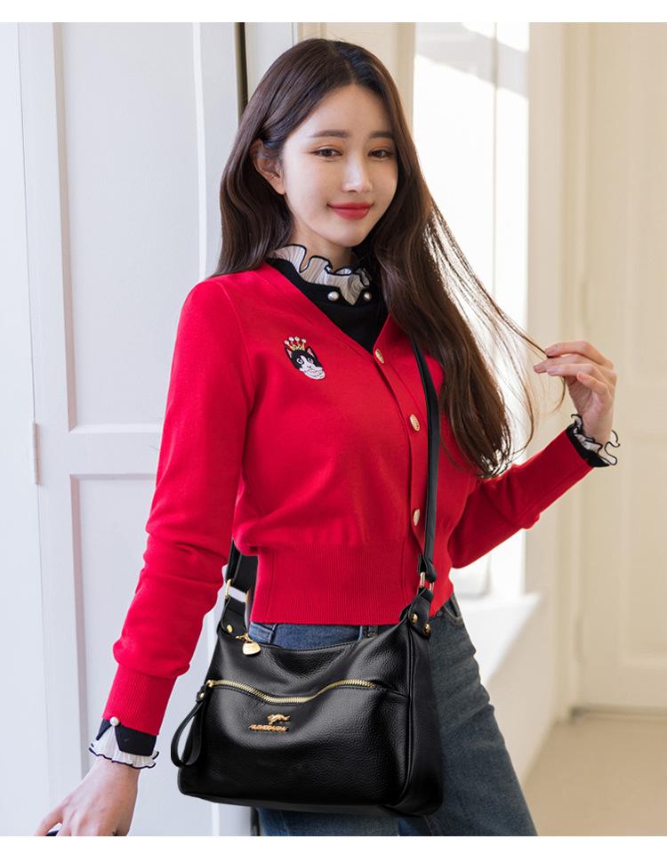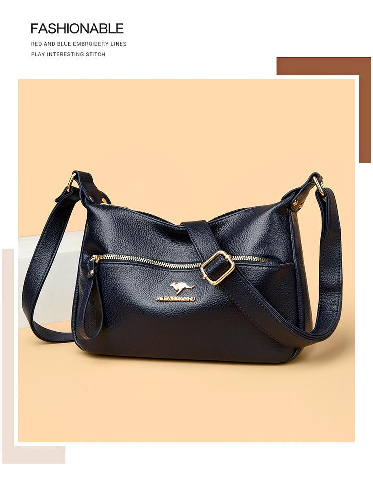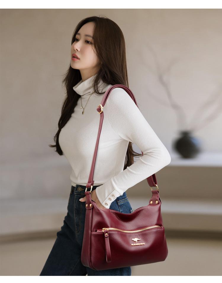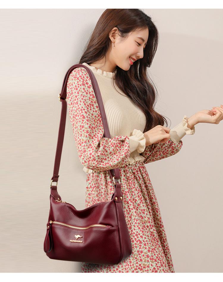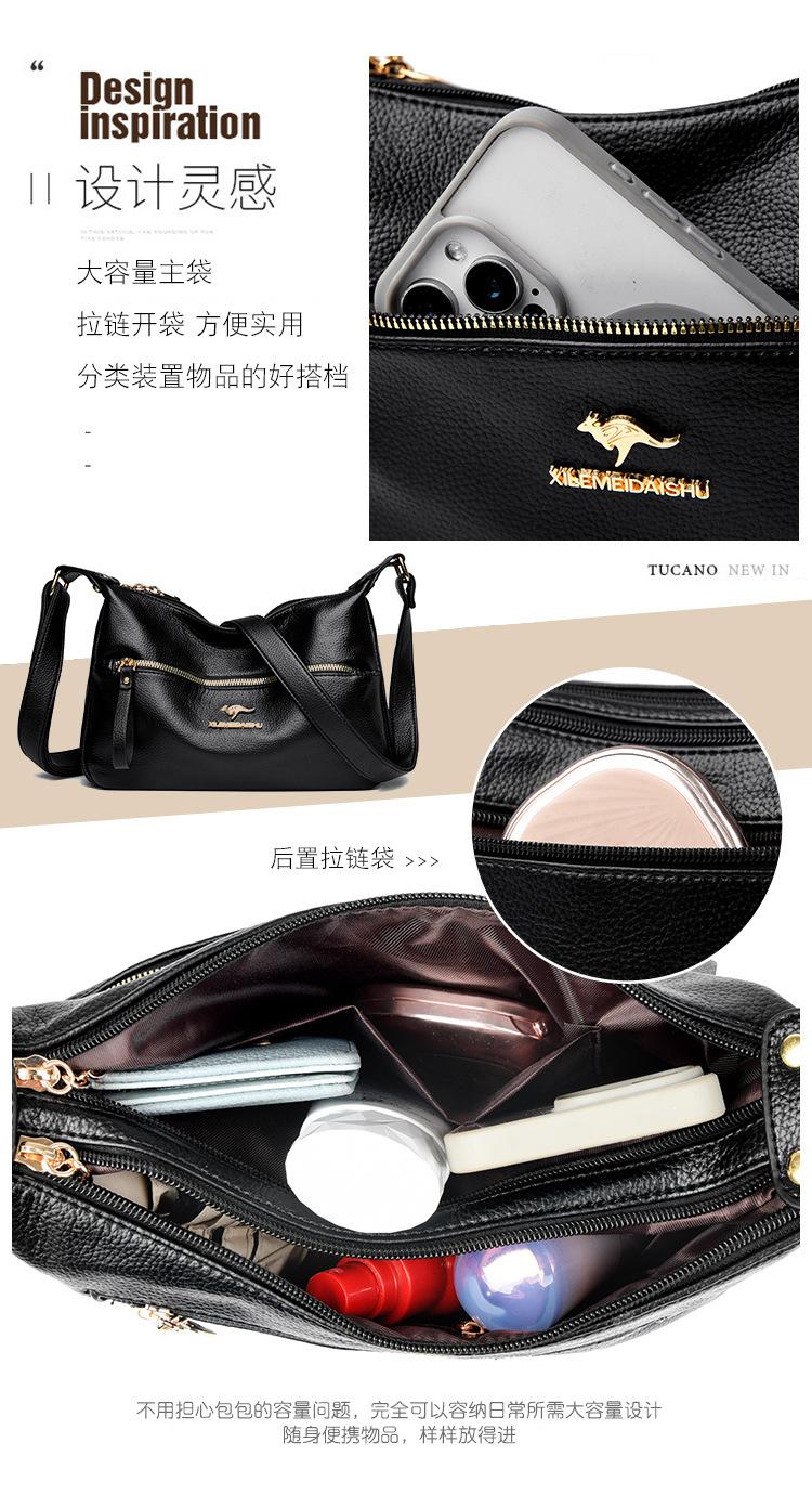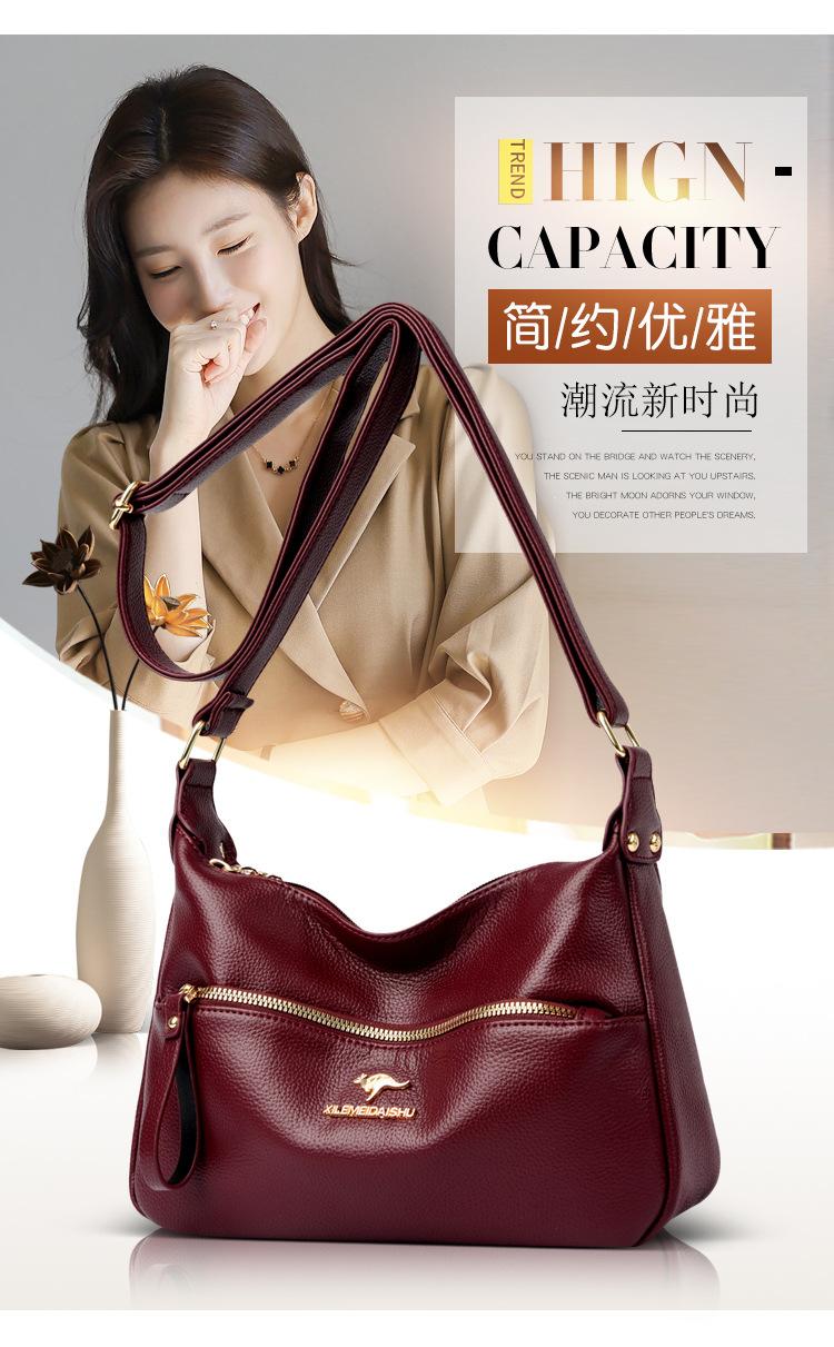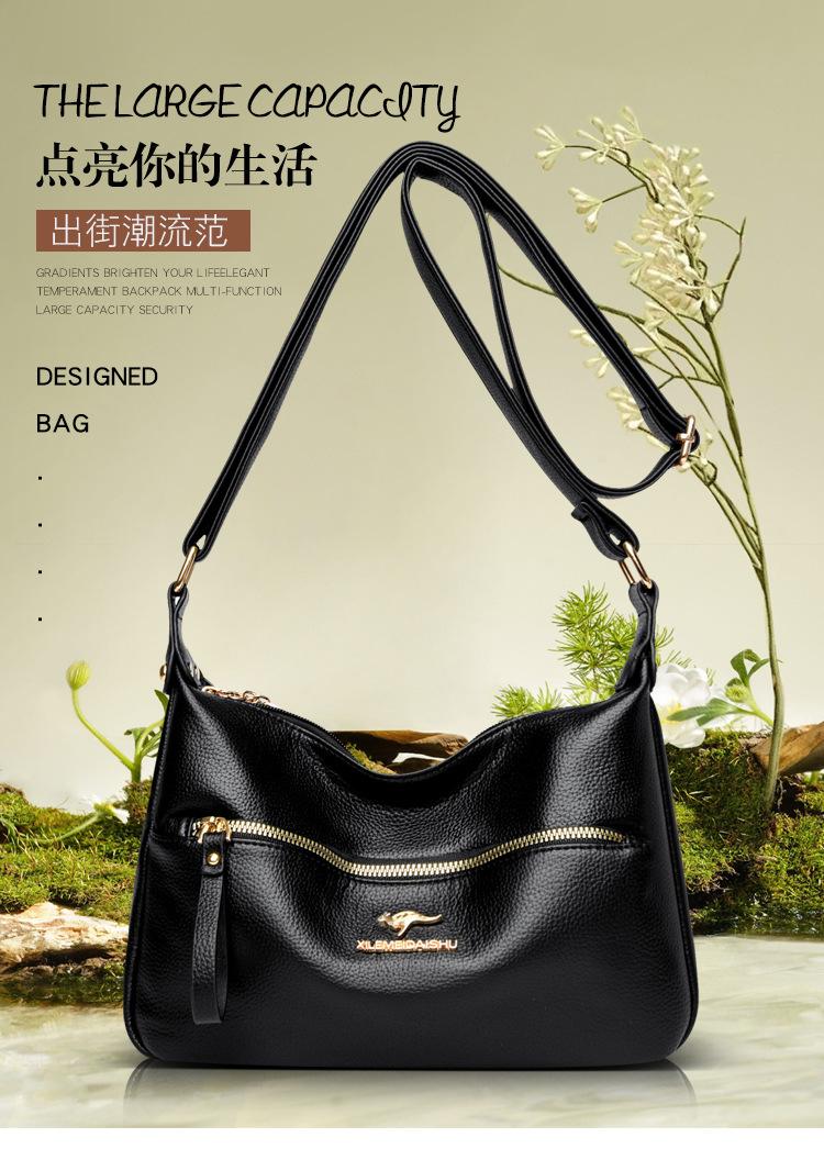 Bolsa de Madre de Cuero Vacuno con Patrón de Comercio Exterior 2025 Nueva Bolsa Grande de Cuero Graneado para Mujer Venta Barata Bandolera de Hombro Único Bolso Media Luna