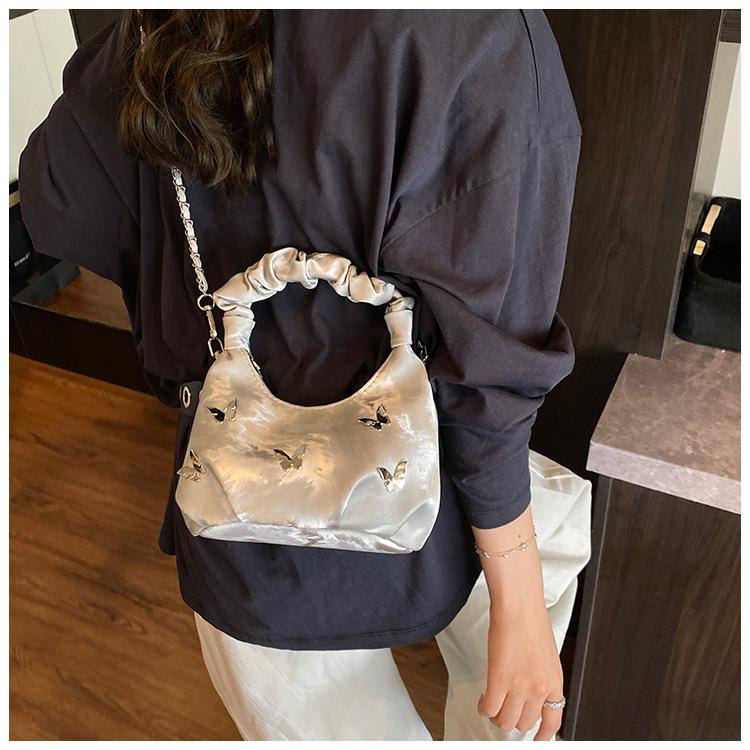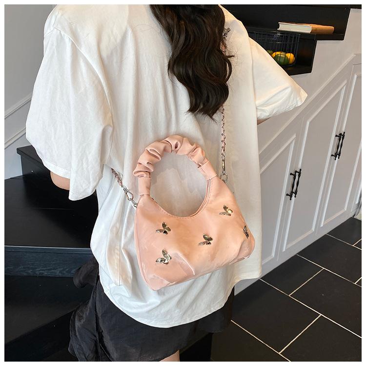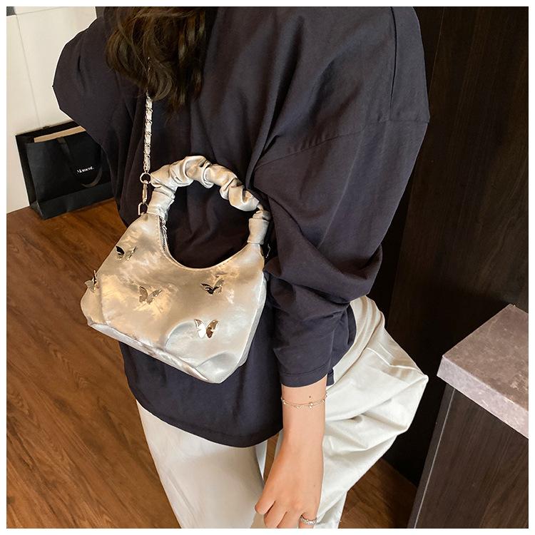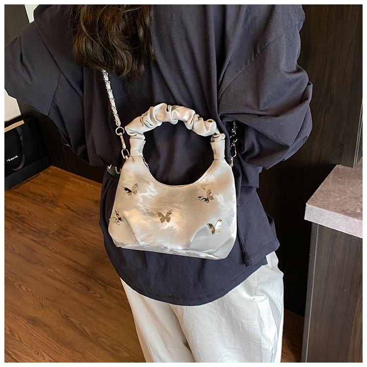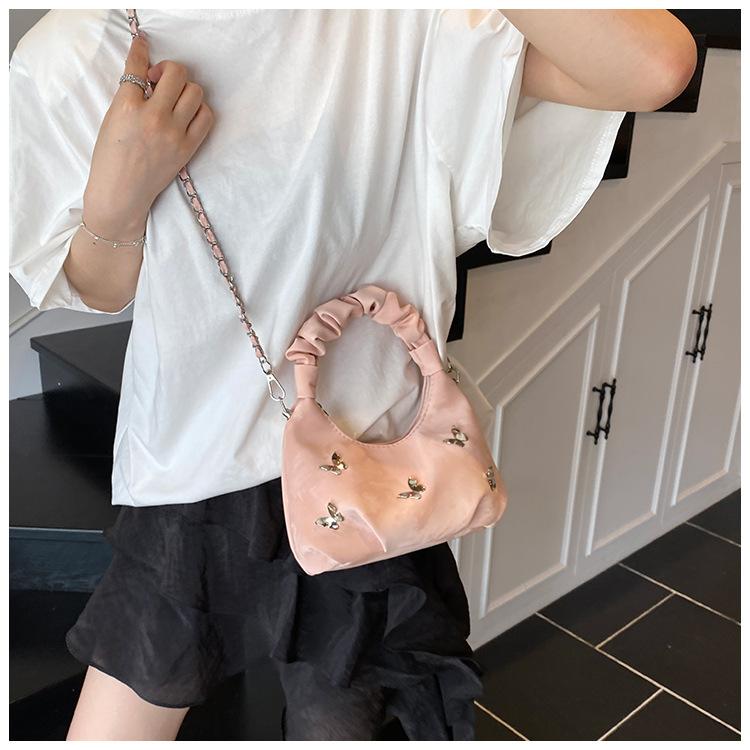 Bolso Pequeño de Moda de Verano para Mujer 2025 Nueva Moda Versátil Bolso Cruzado de un Solo Hombro Axilar Fruncido de Mano Tipo Dumpling