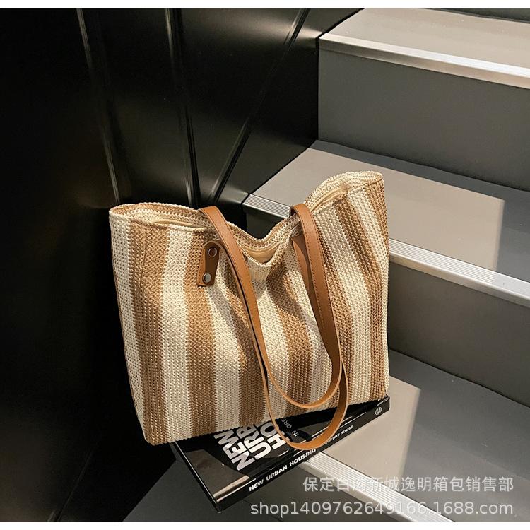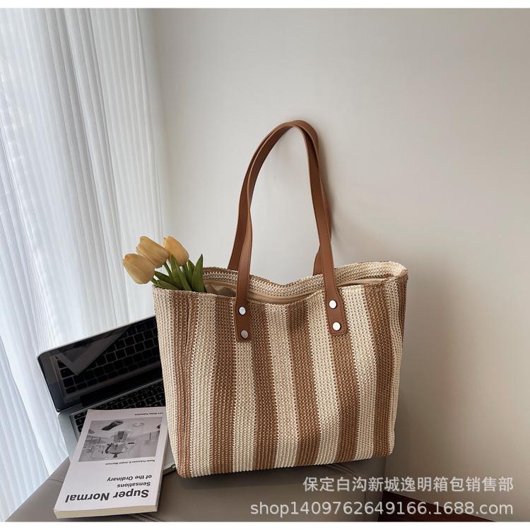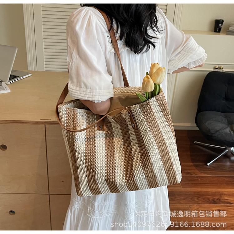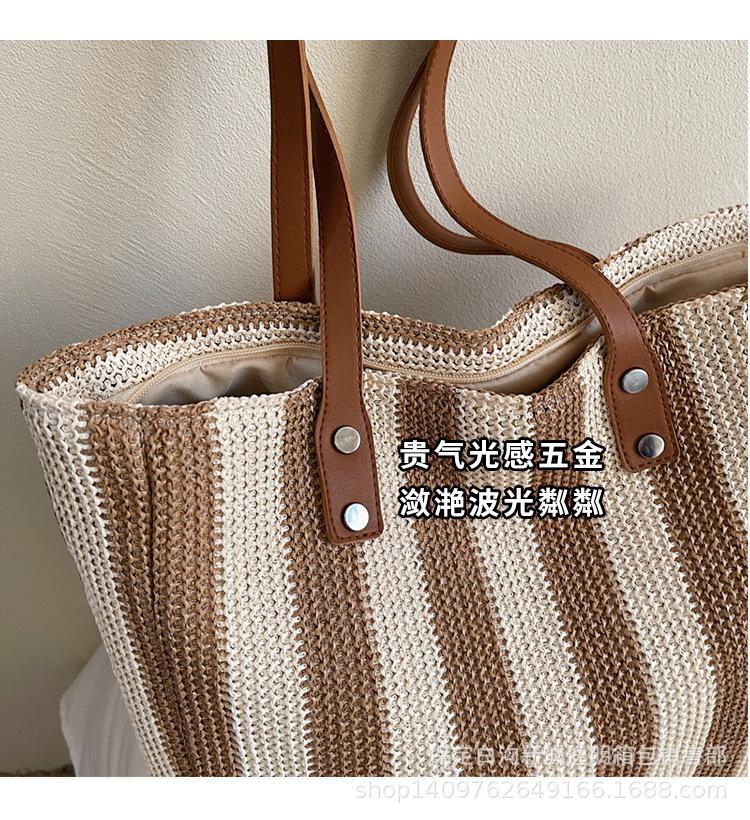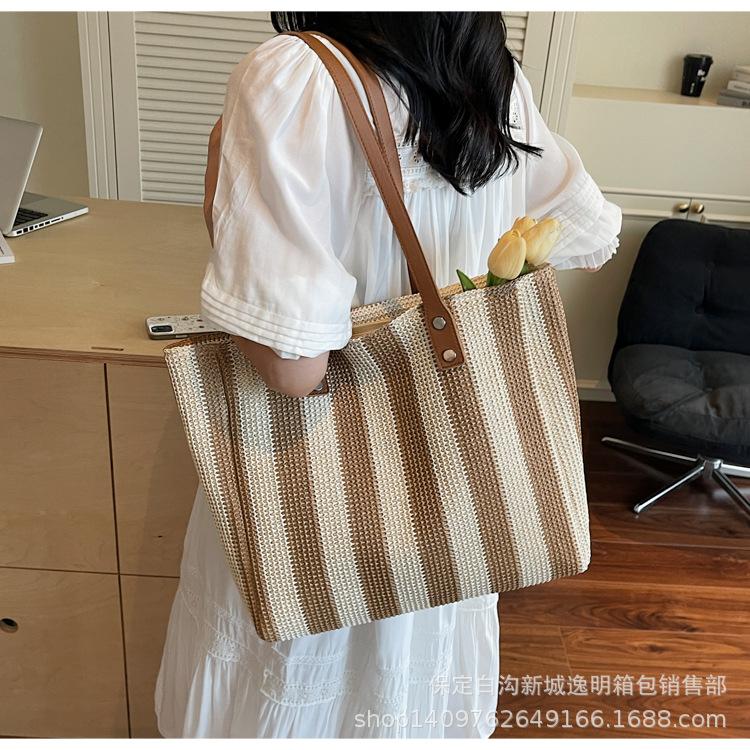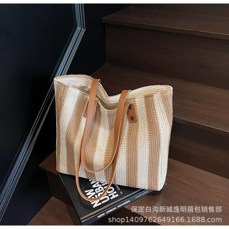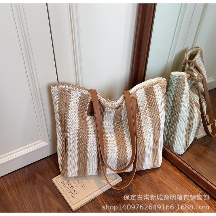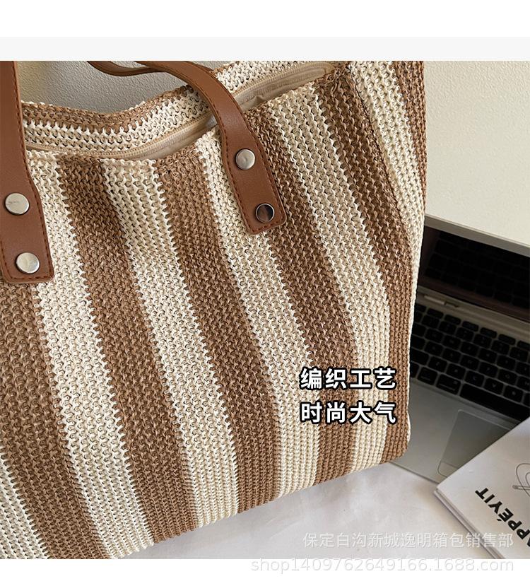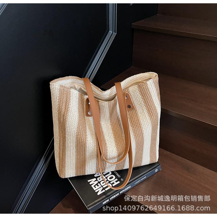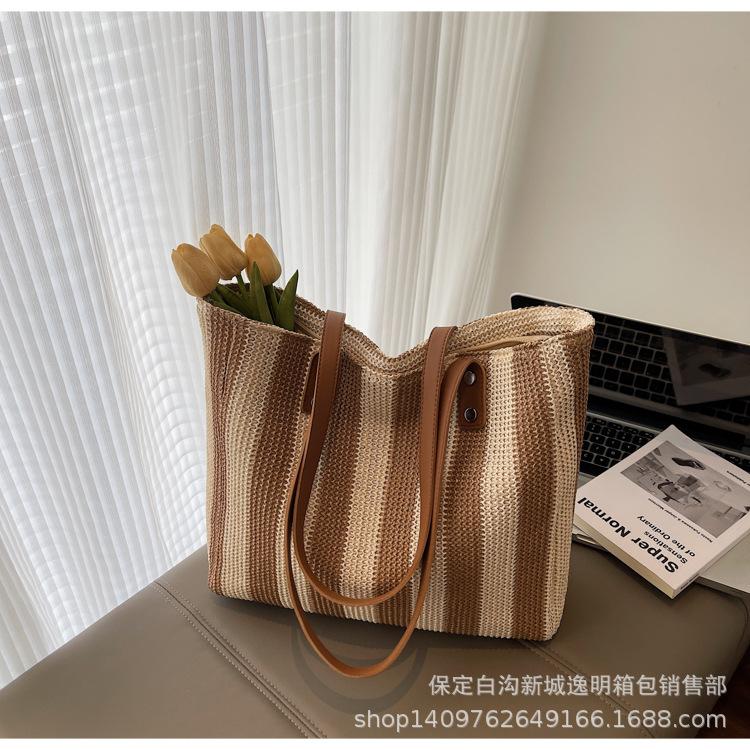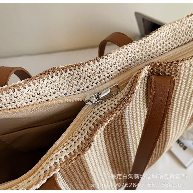 Bolso Tote de Gran Capacidad Bolso de Hombro Simple de Color Contrastante Bolso de Playa Casual para Vacaciones de Verano 2025 para Mujer