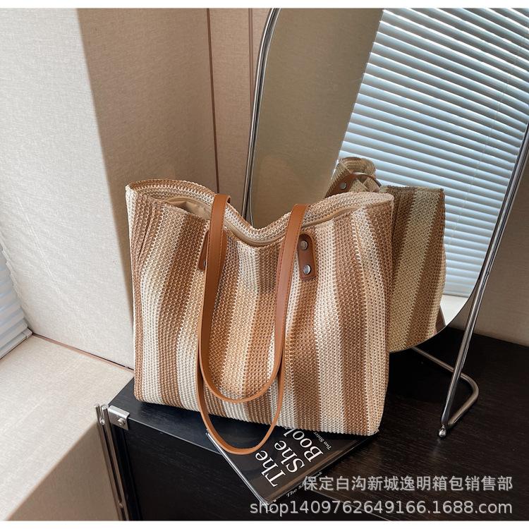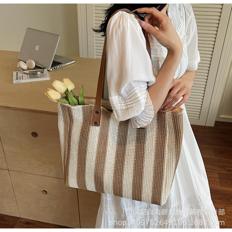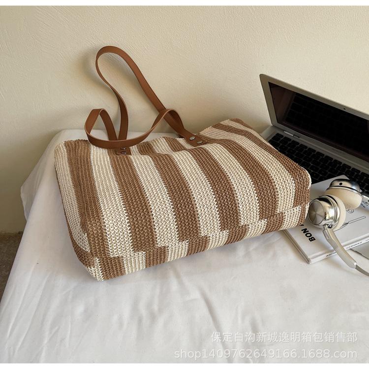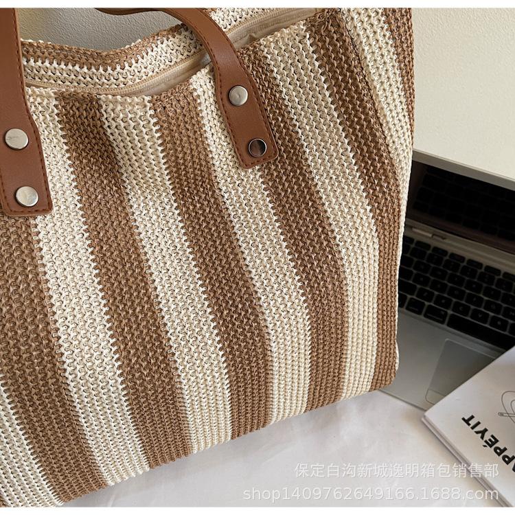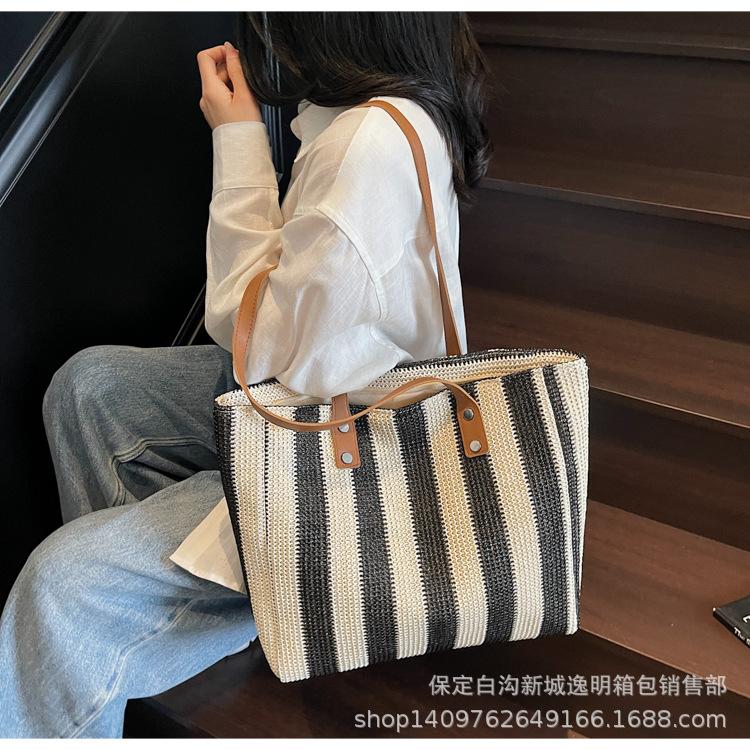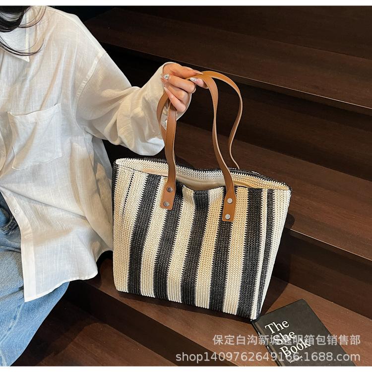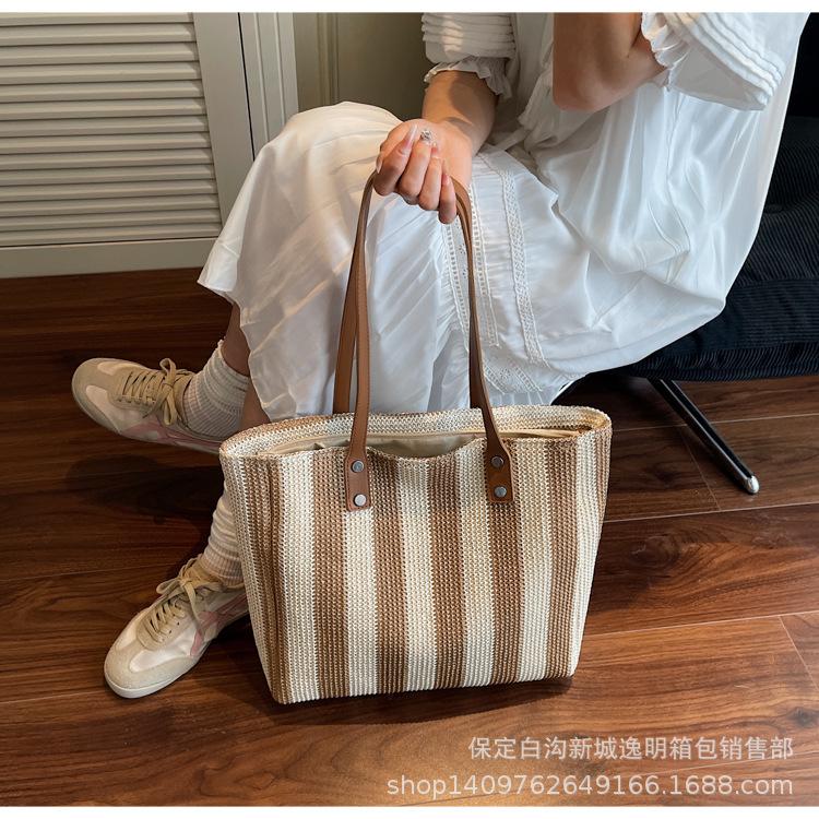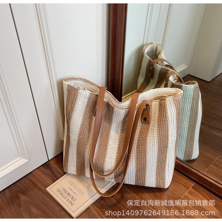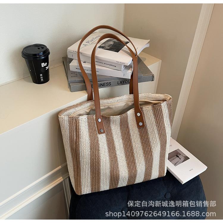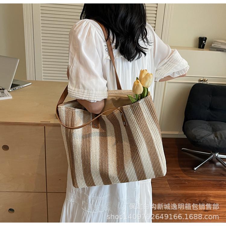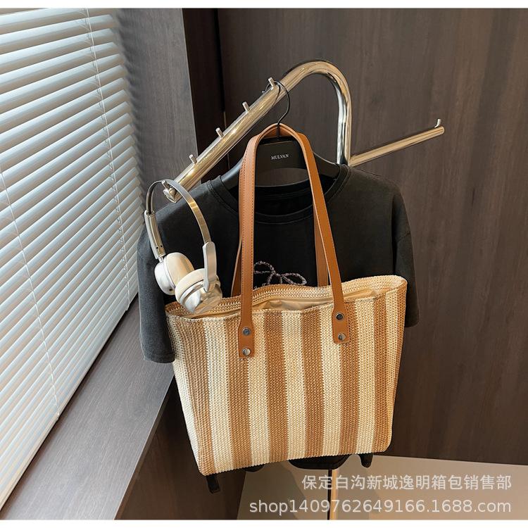 Bolso Tote de Gran Capacidad Bolso de Hombro Simple de Color Contrastante Bolso de Playa Casual para Vacaciones de Verano 2025 para Mujer