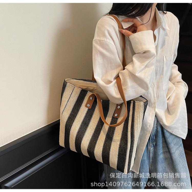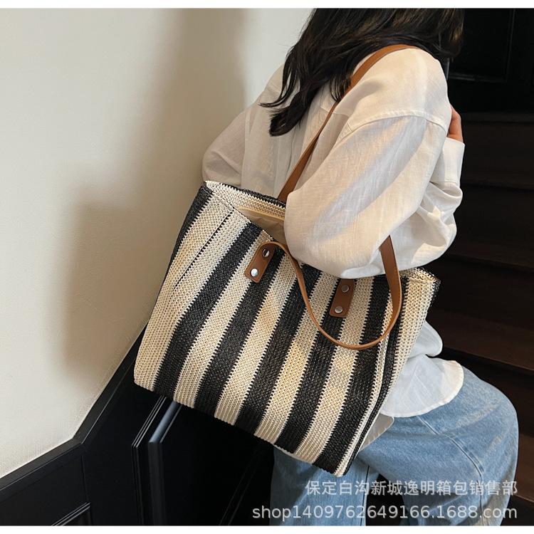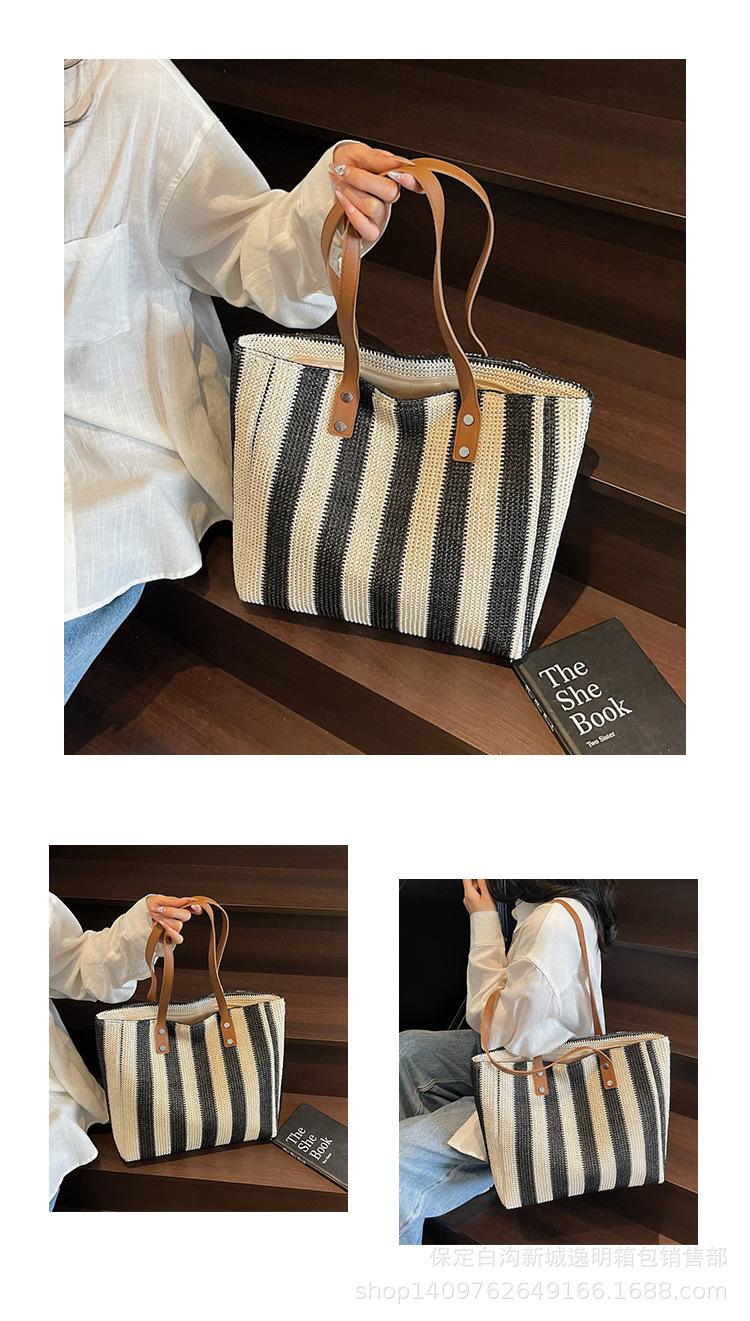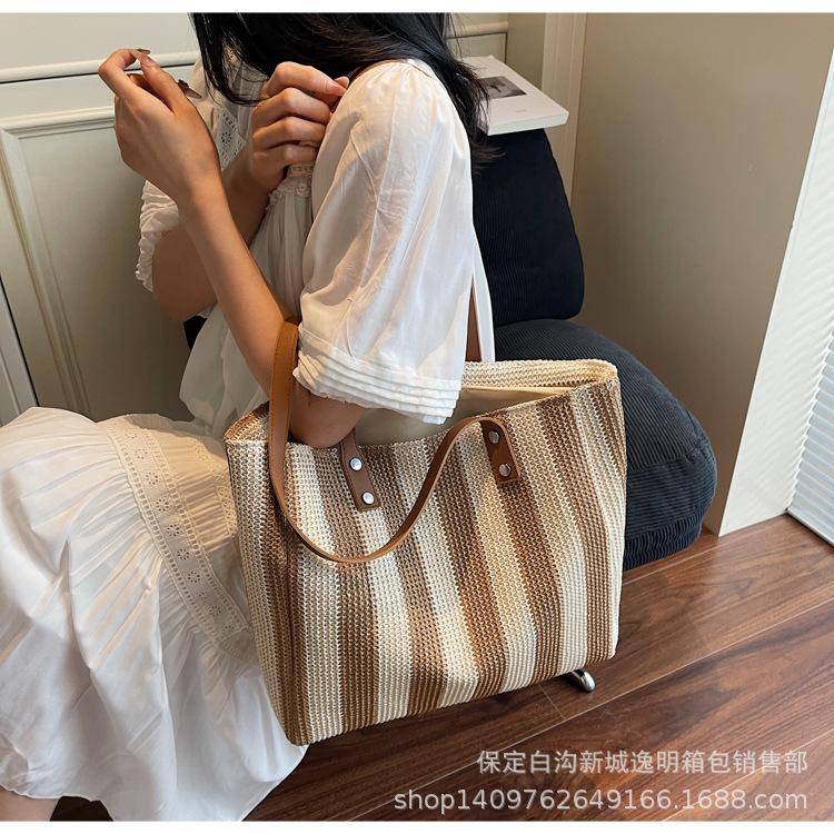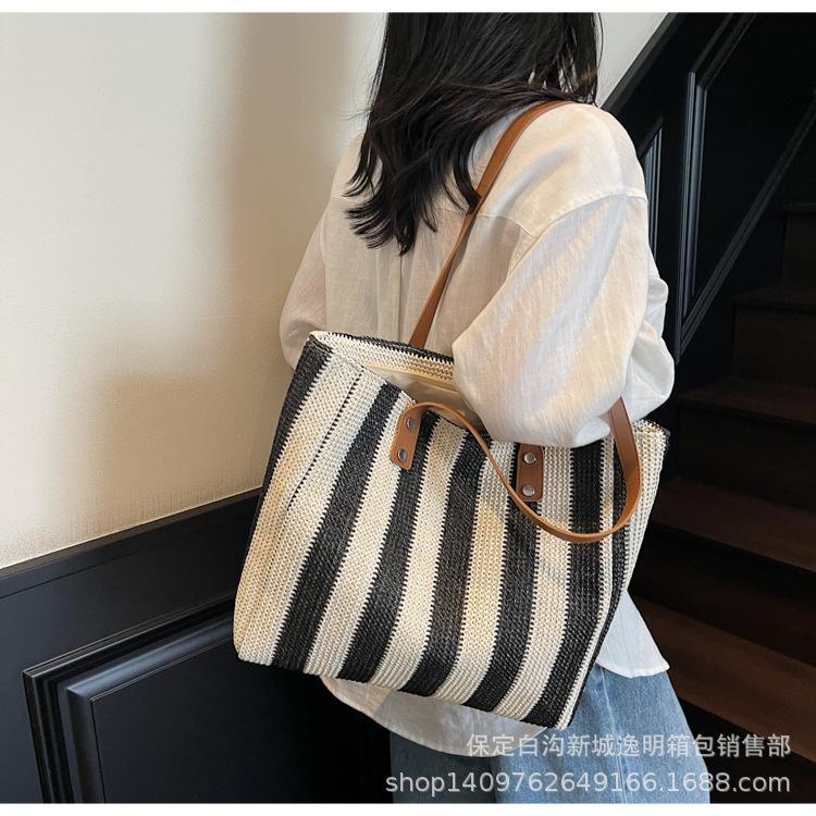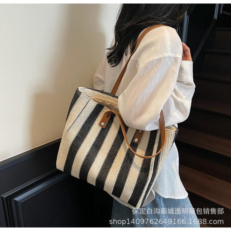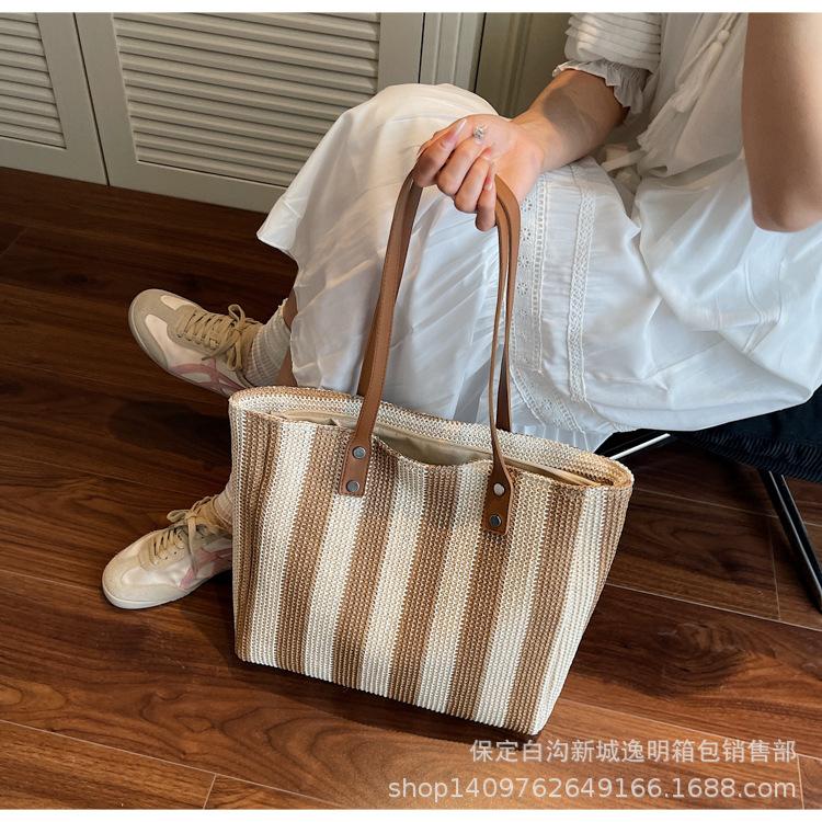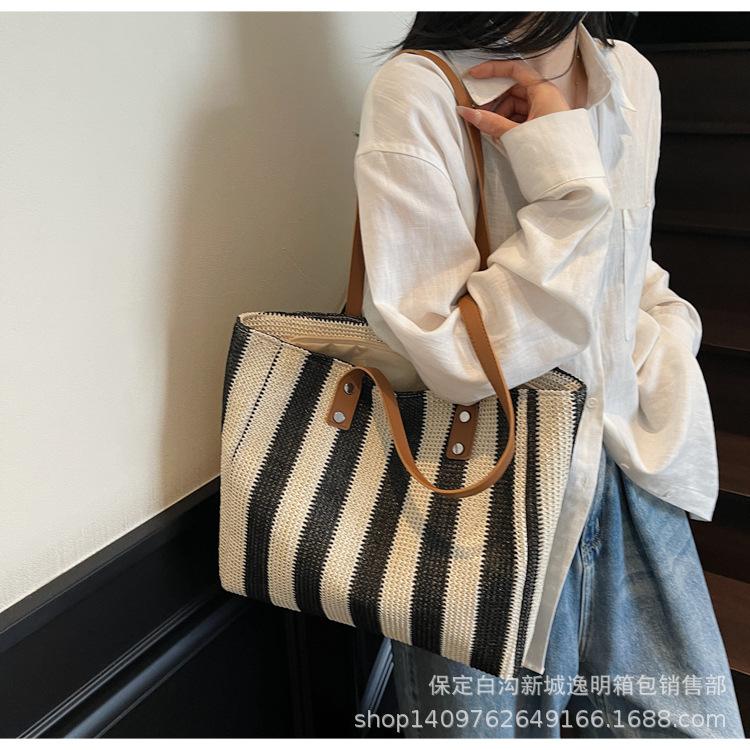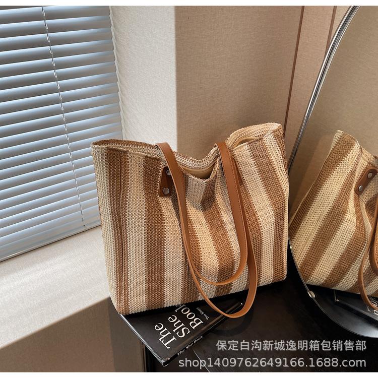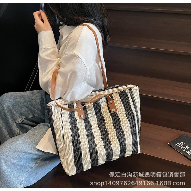 Bolso Tote de Gran Capacidad Bolso de Hombro Simple de Color Contrastante Bolso de Playa Casual para Vacaciones de Verano 2025 para Mujer