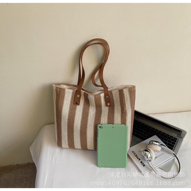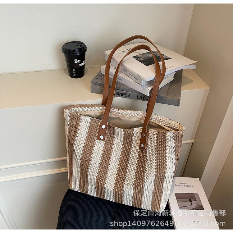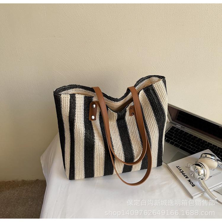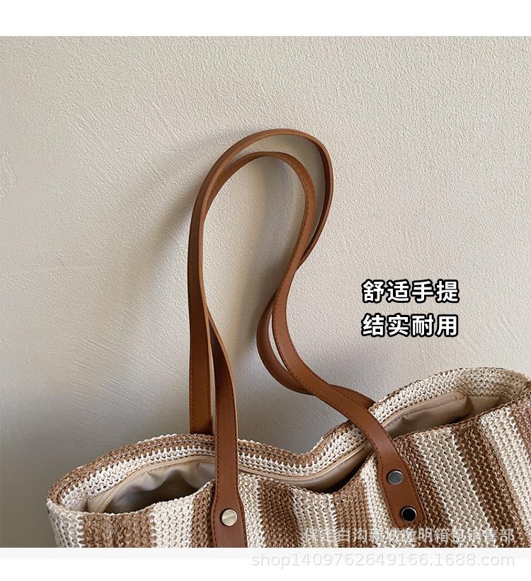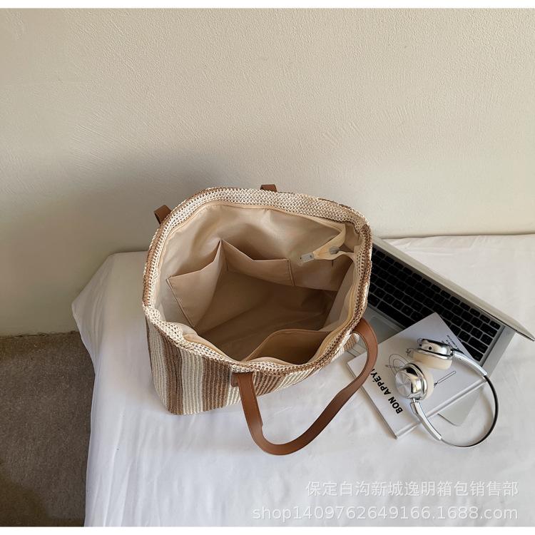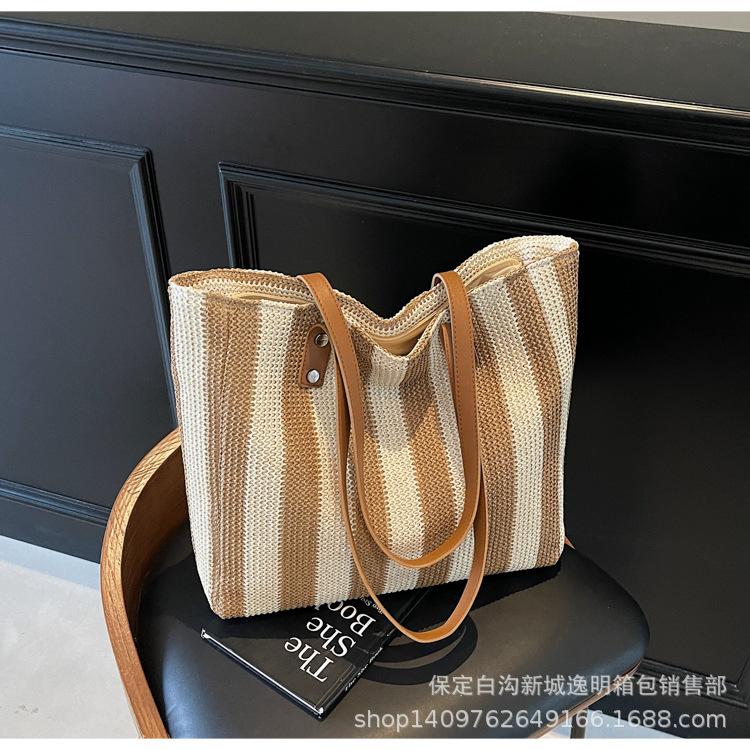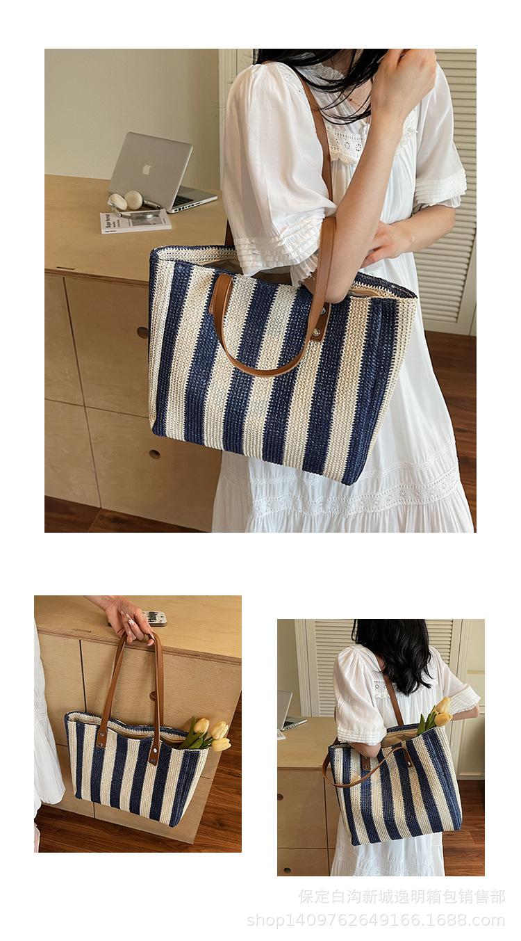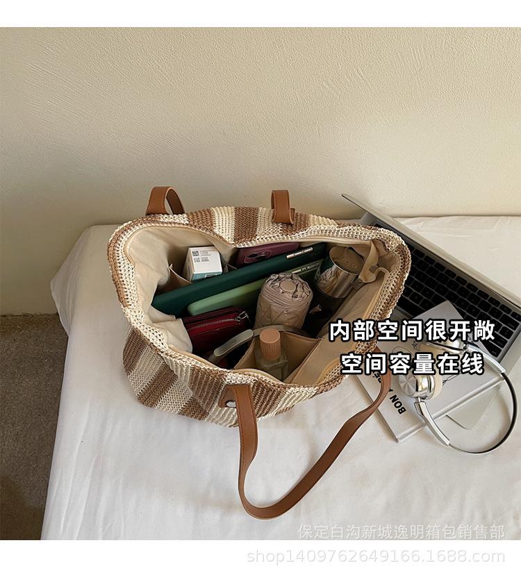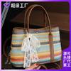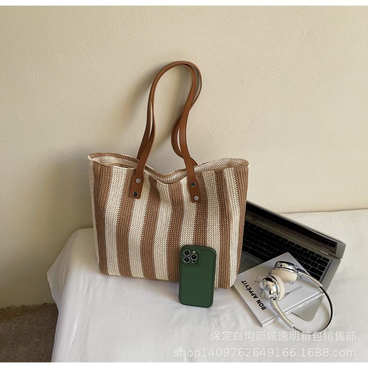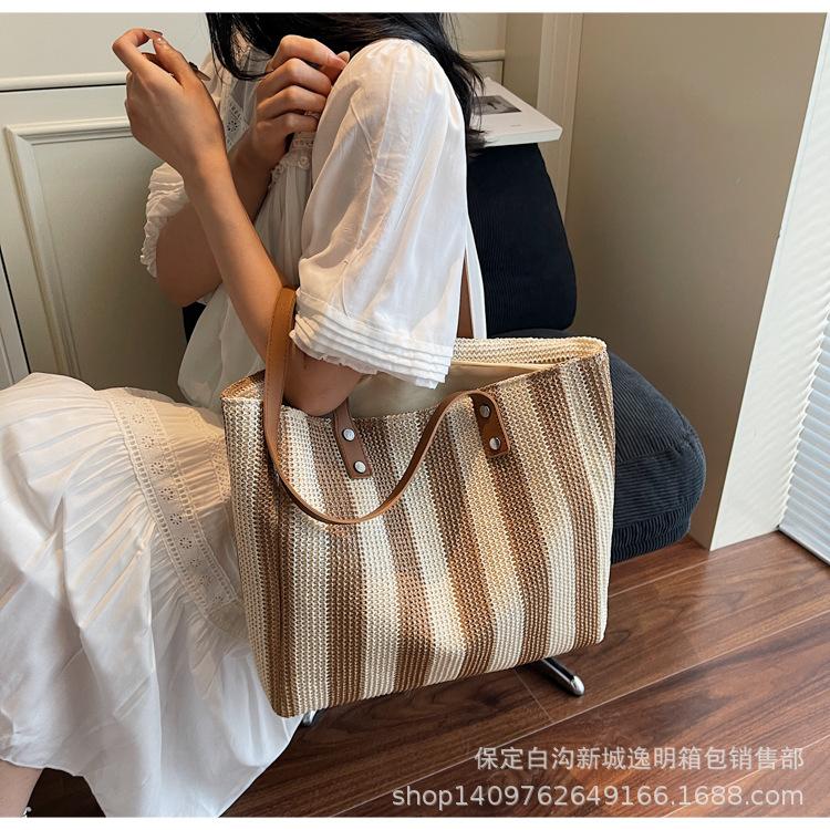 Bolso Tote de Gran Capacidad Bolso de Hombro Simple de Color Contrastante Bolso de Playa Casual para Vacaciones de Verano 2025 para Mujer