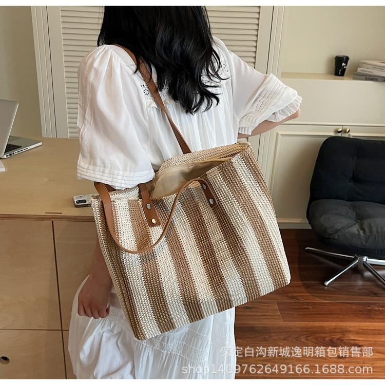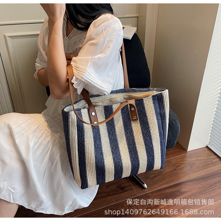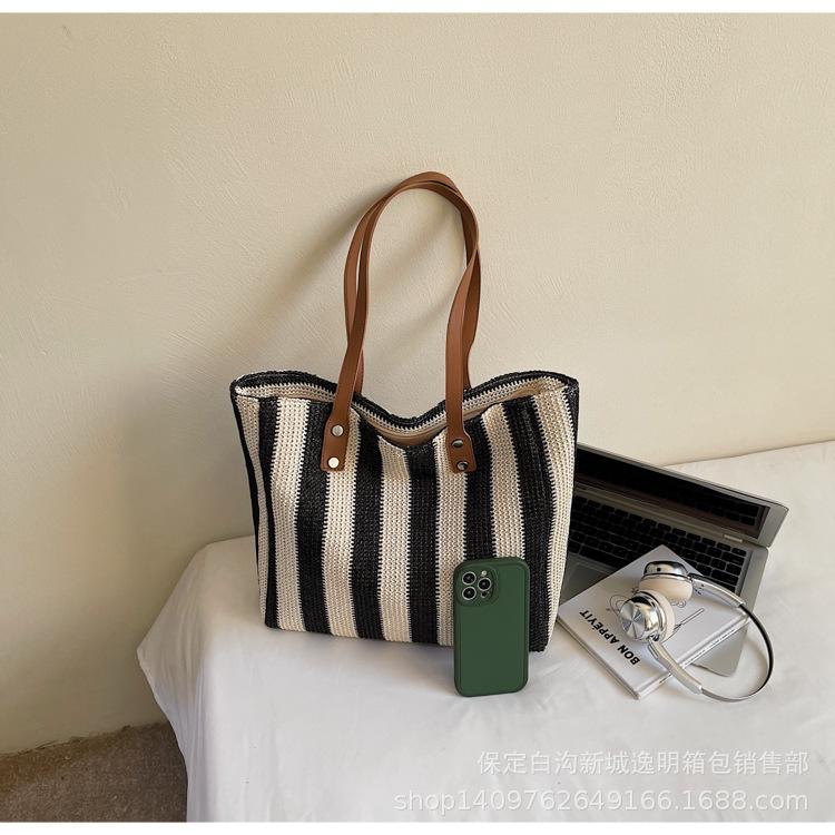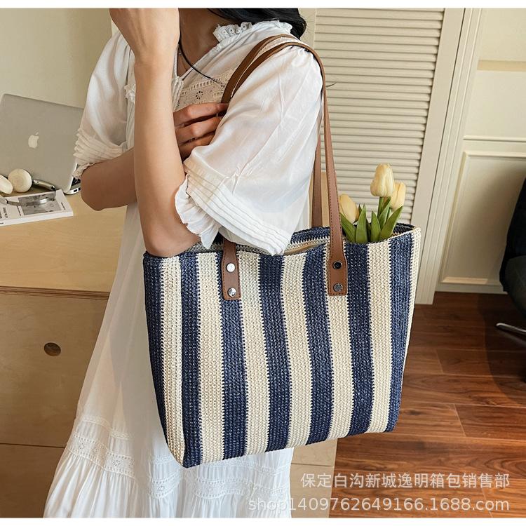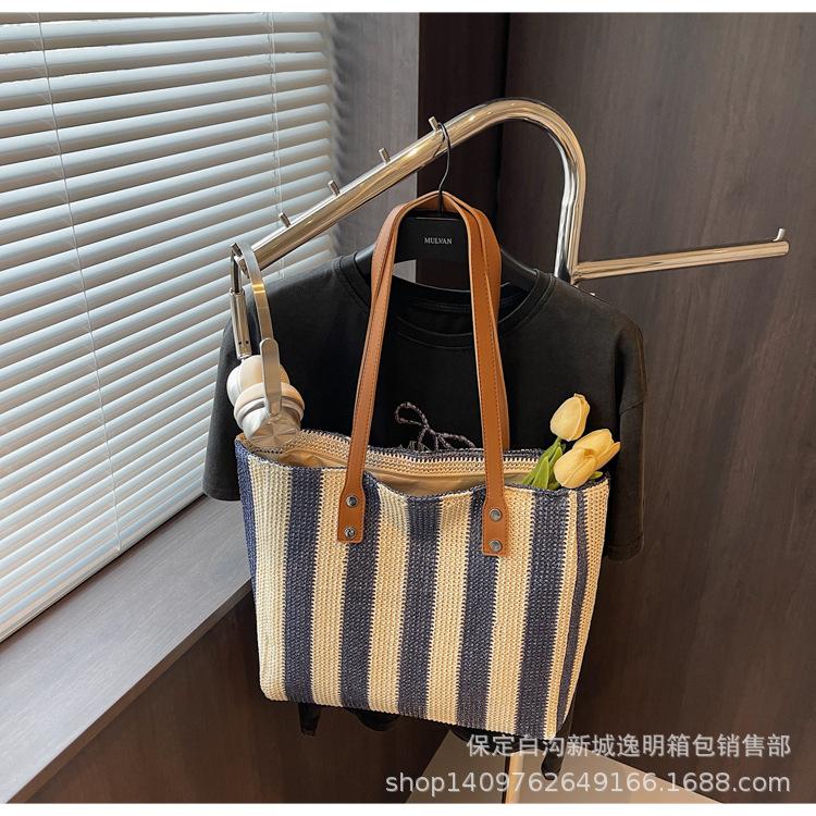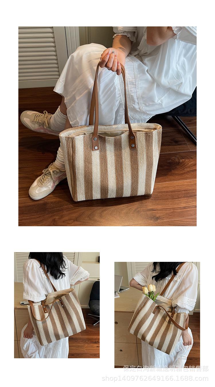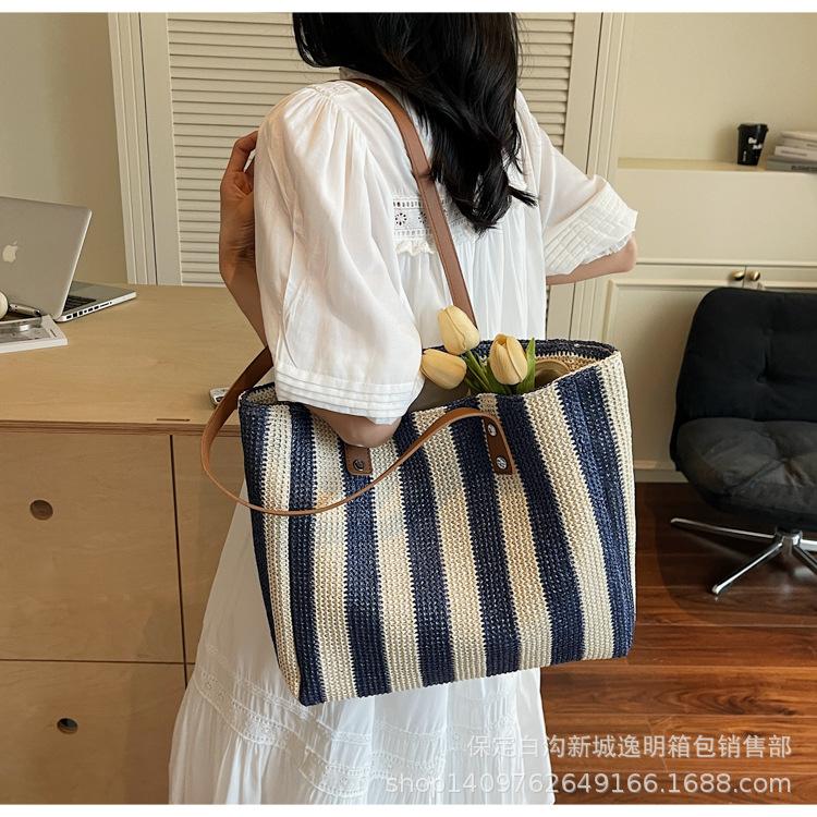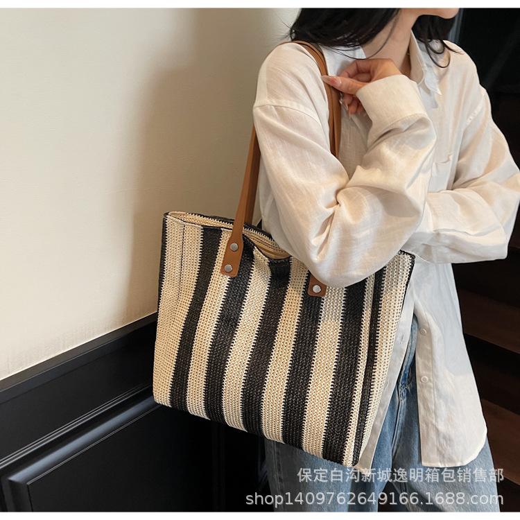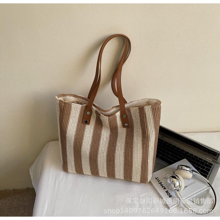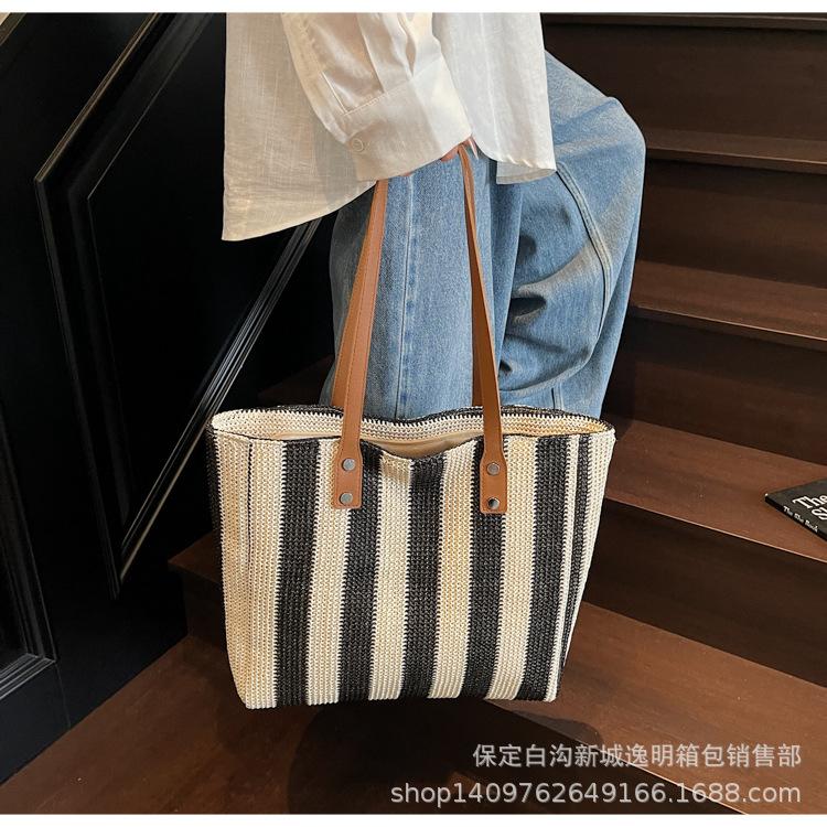 Bolso Tote de Gran Capacidad Bolso de Hombro Simple de Color Contrastante Bolso de Playa Casual para Vacaciones de Verano 2025 para Mujer