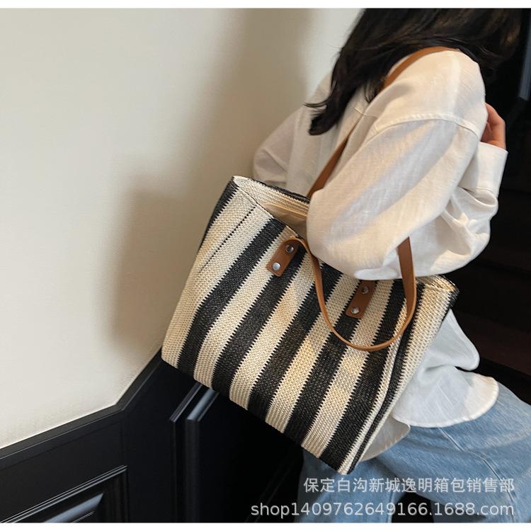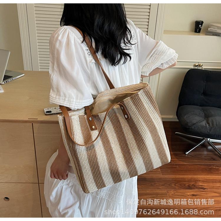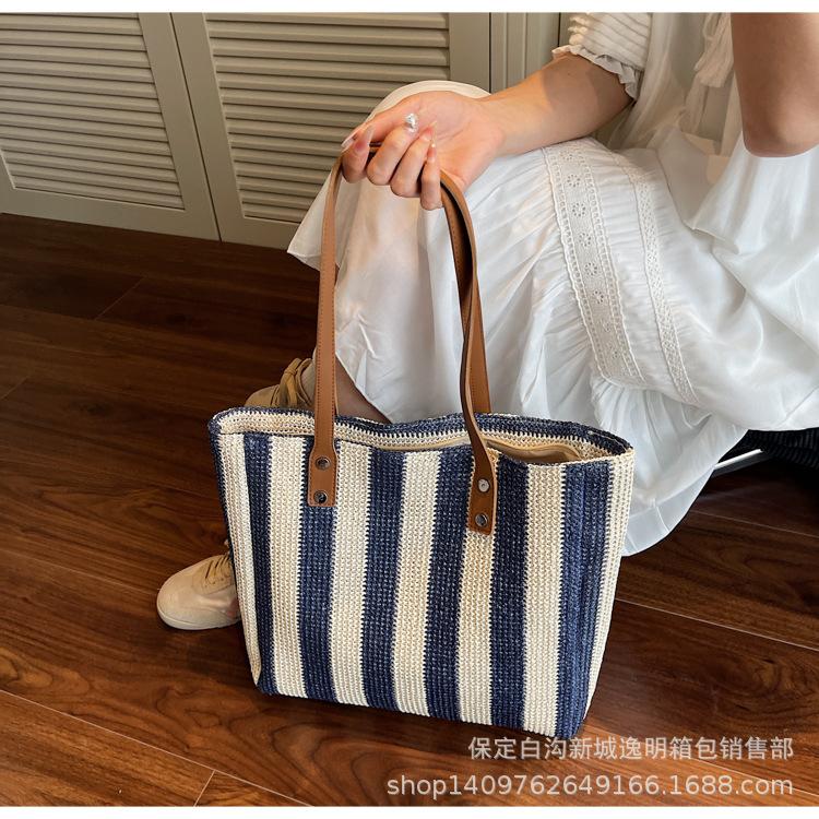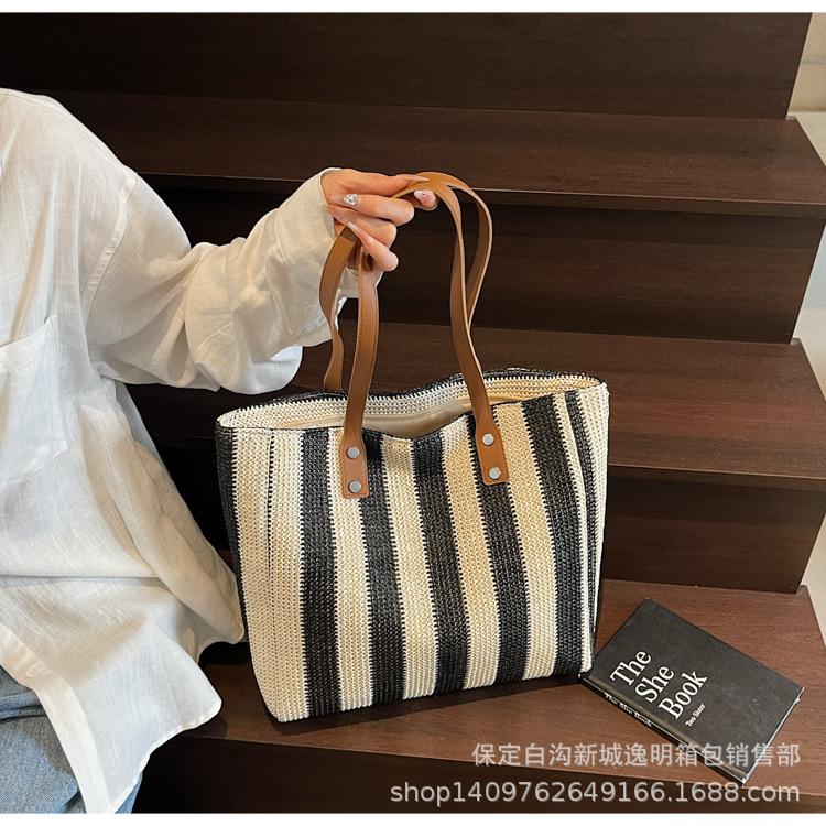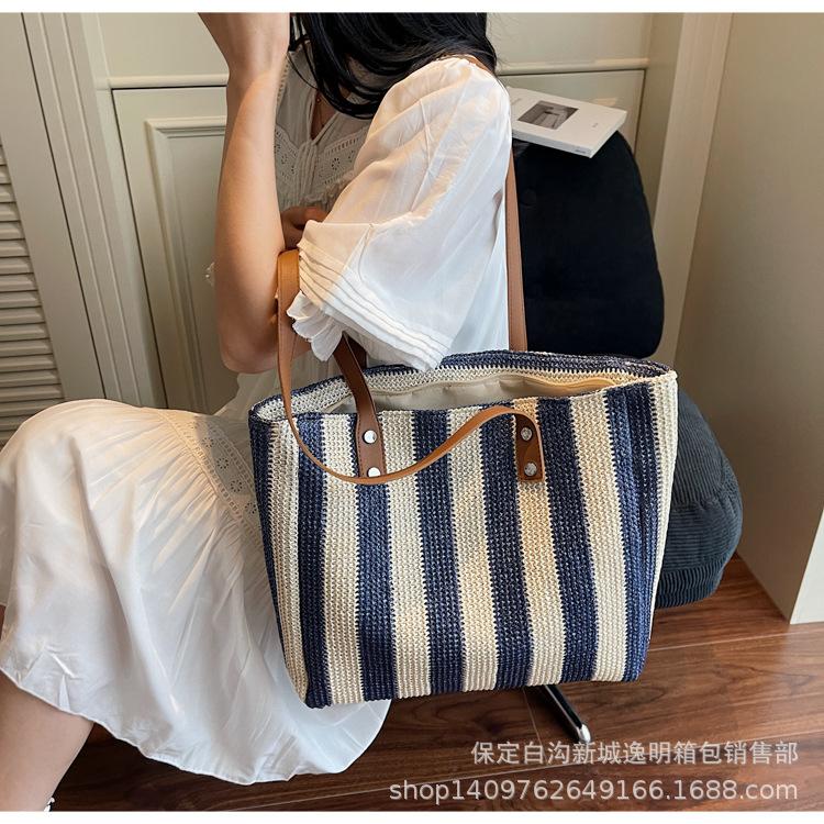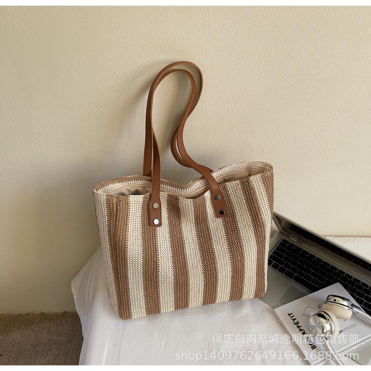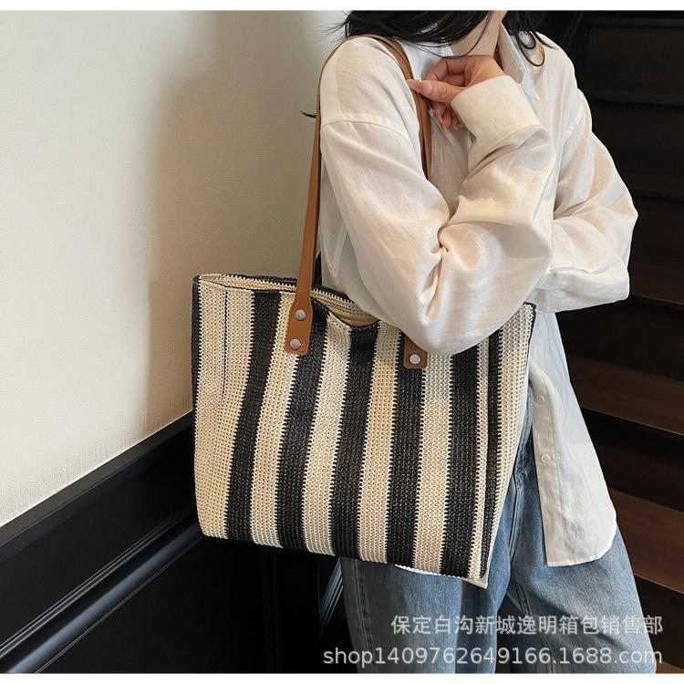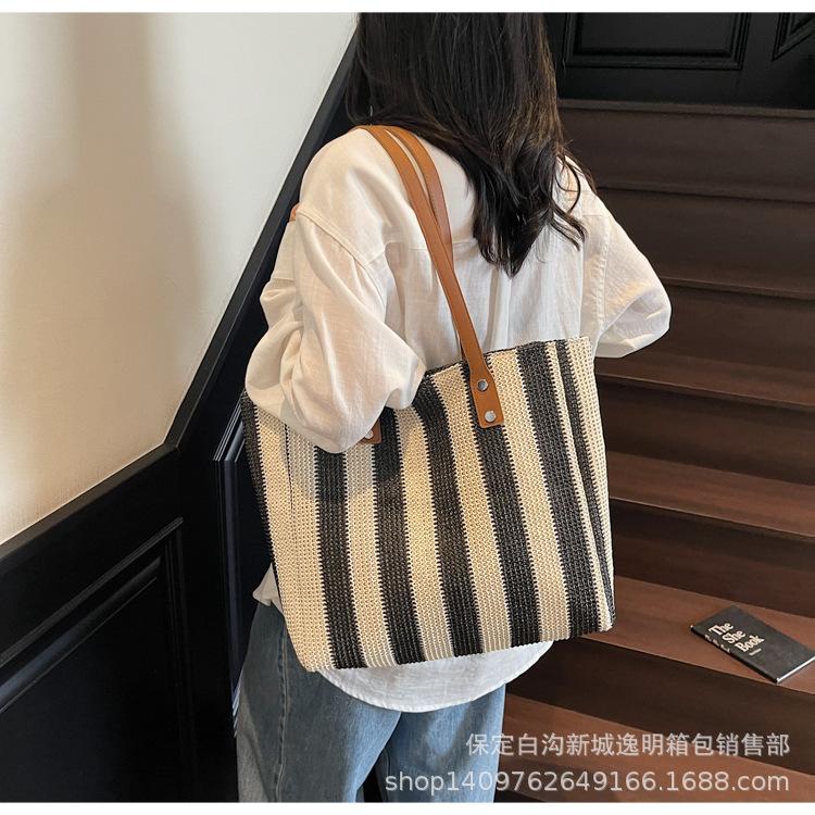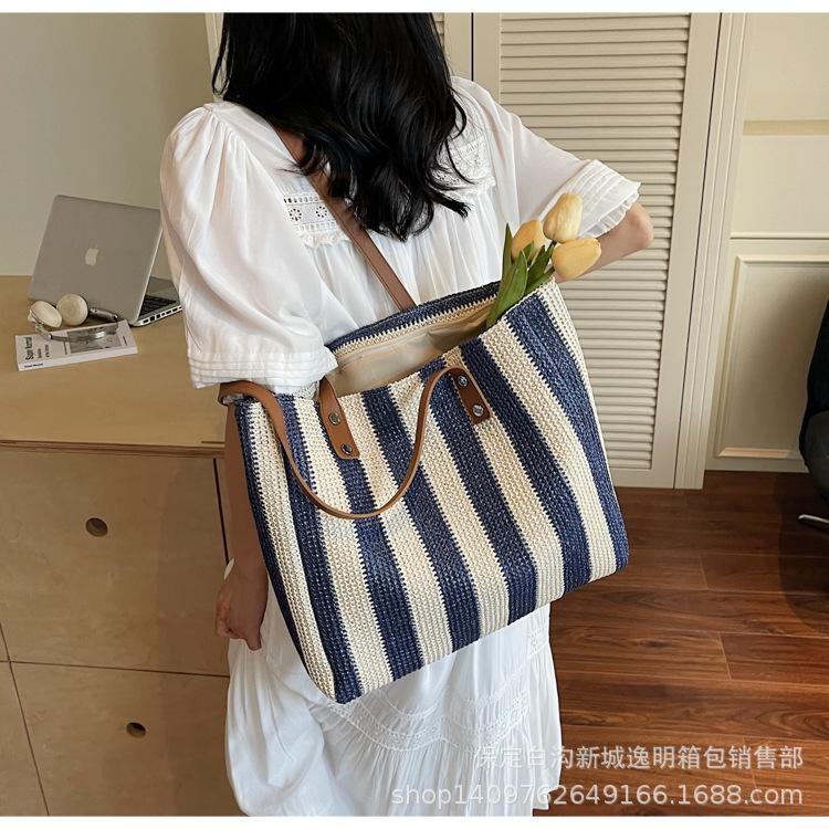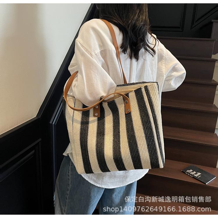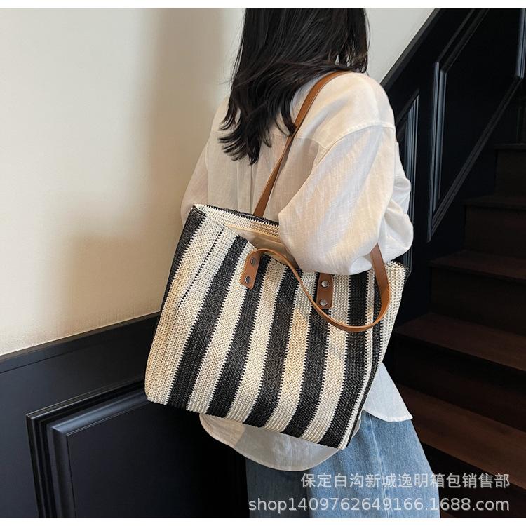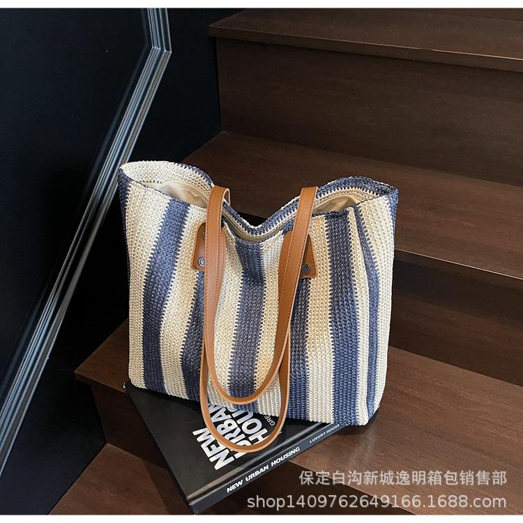 Bolso Tote de Gran Capacidad Bolso de Hombro Simple de Color Contrastante Bolso de Playa Casual para Vacaciones de Verano 2025 para Mujer