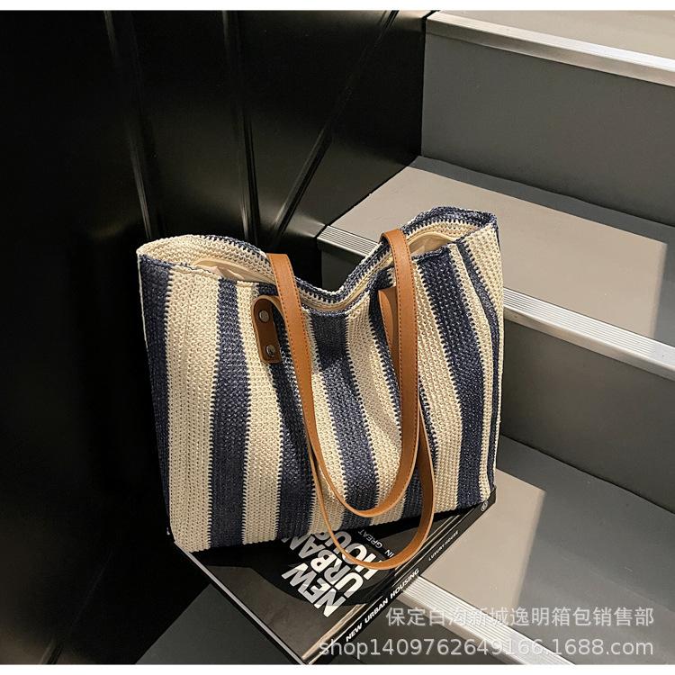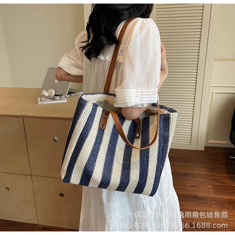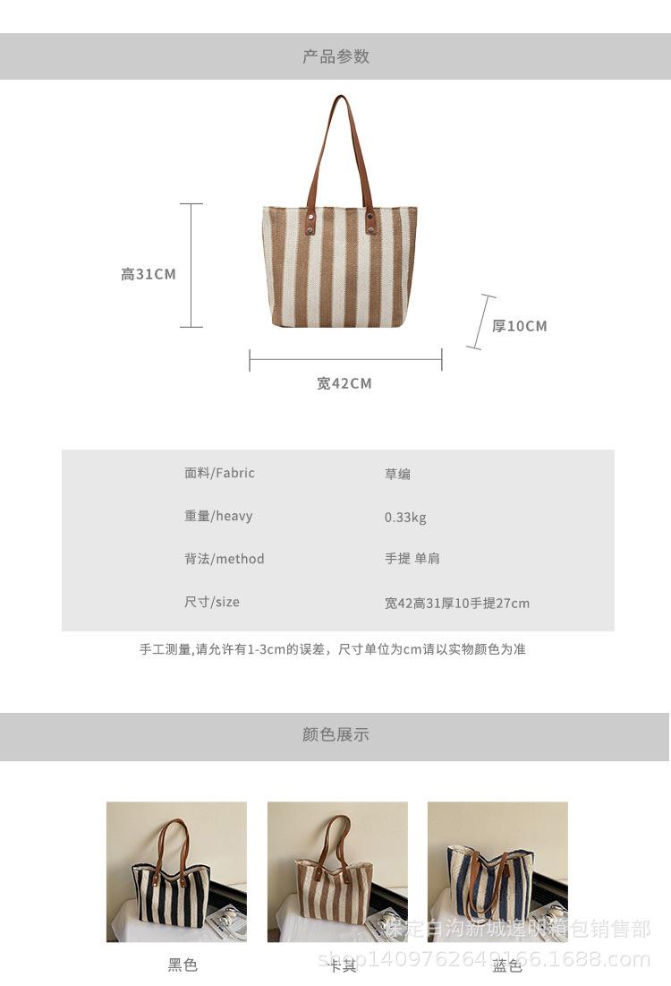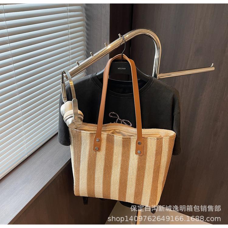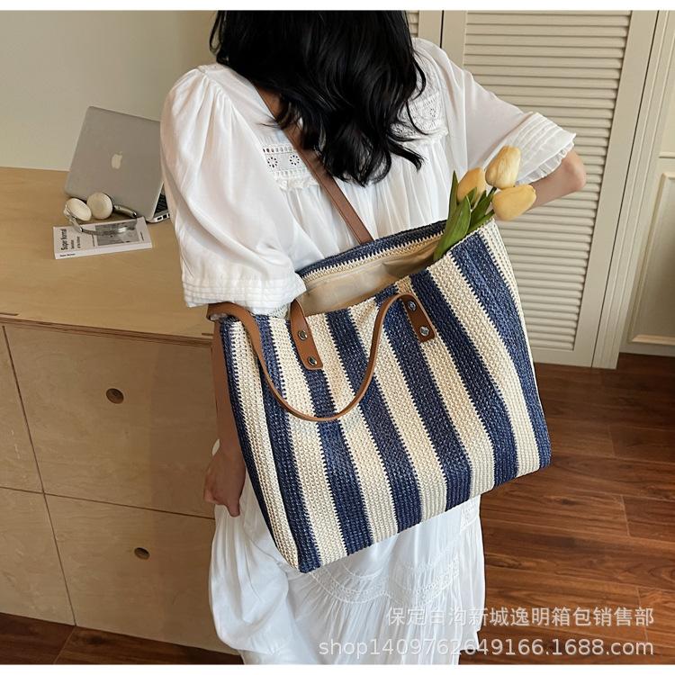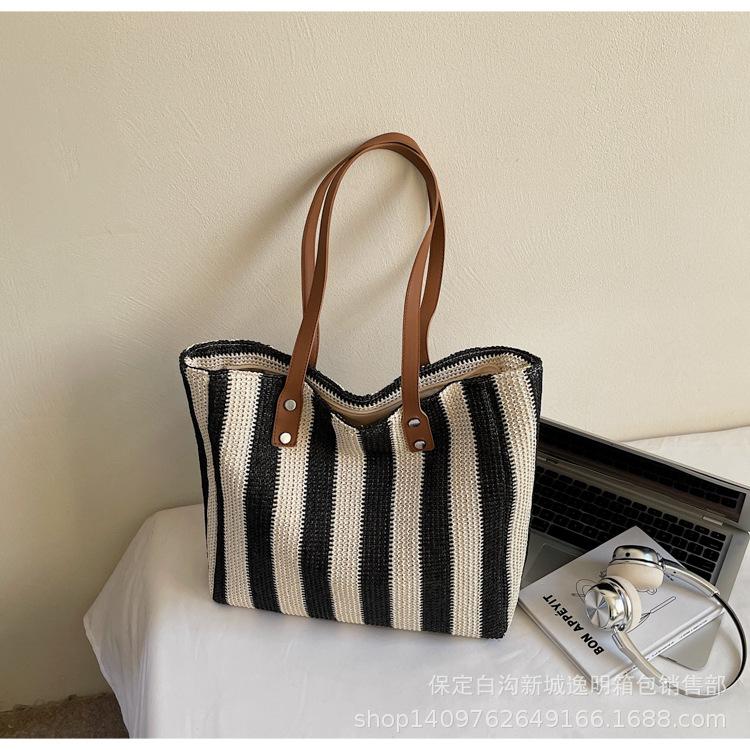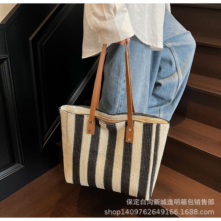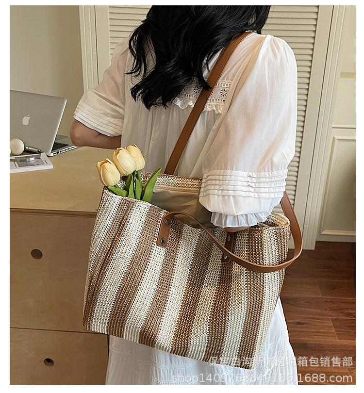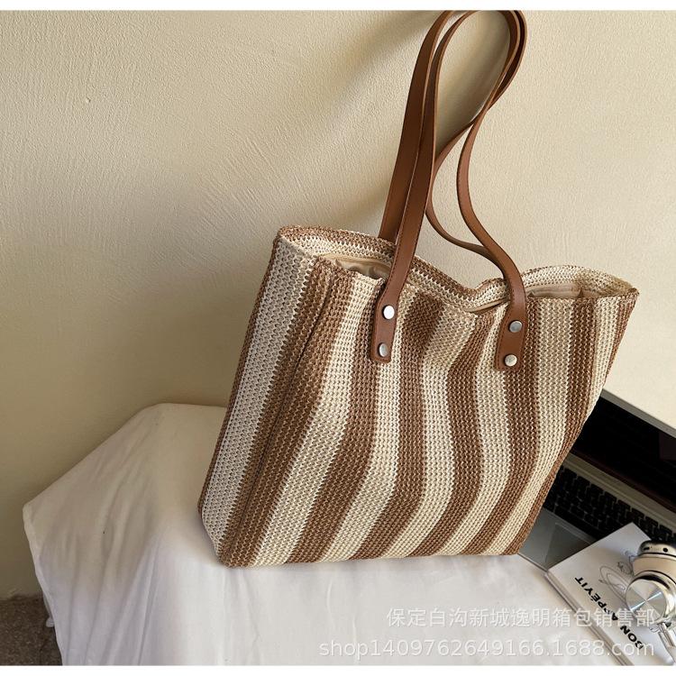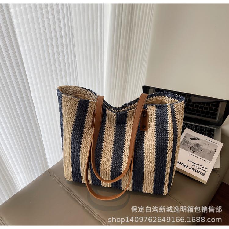 Bolso Tote de Gran Capacidad Bolso de Hombro Simple de Color Contrastante Bolso de Playa Casual para Vacaciones de Verano 2025 para Mujer