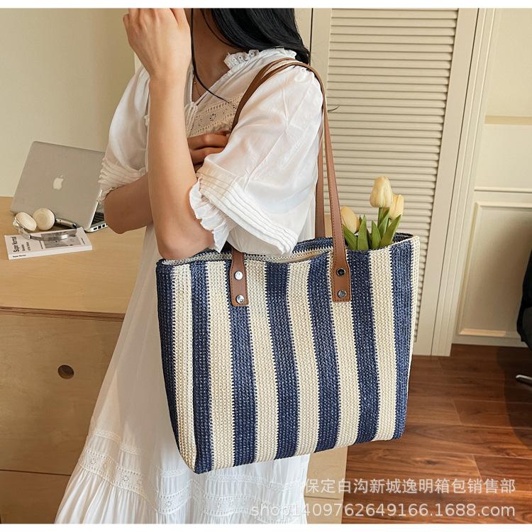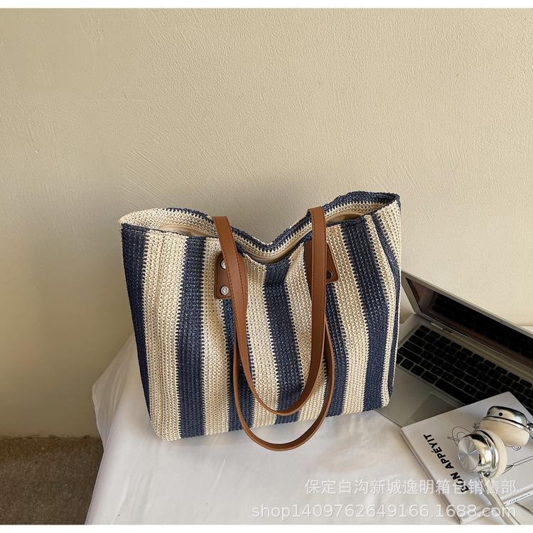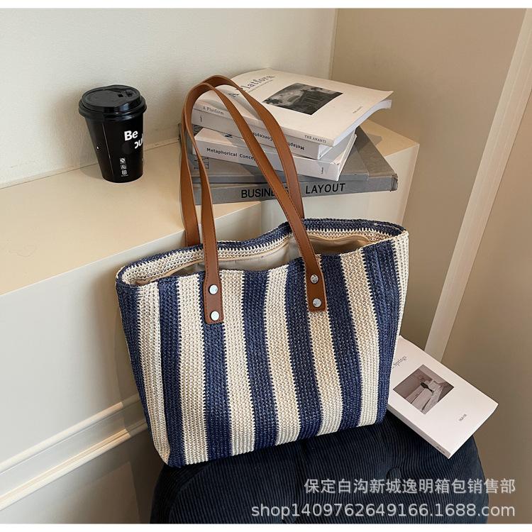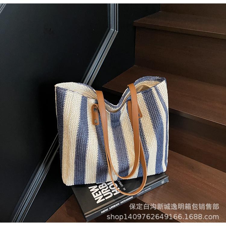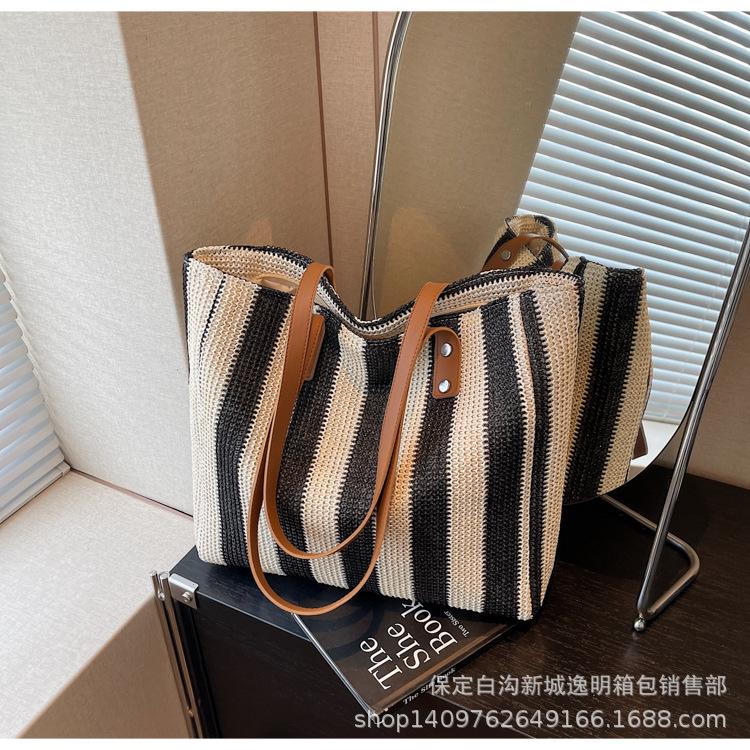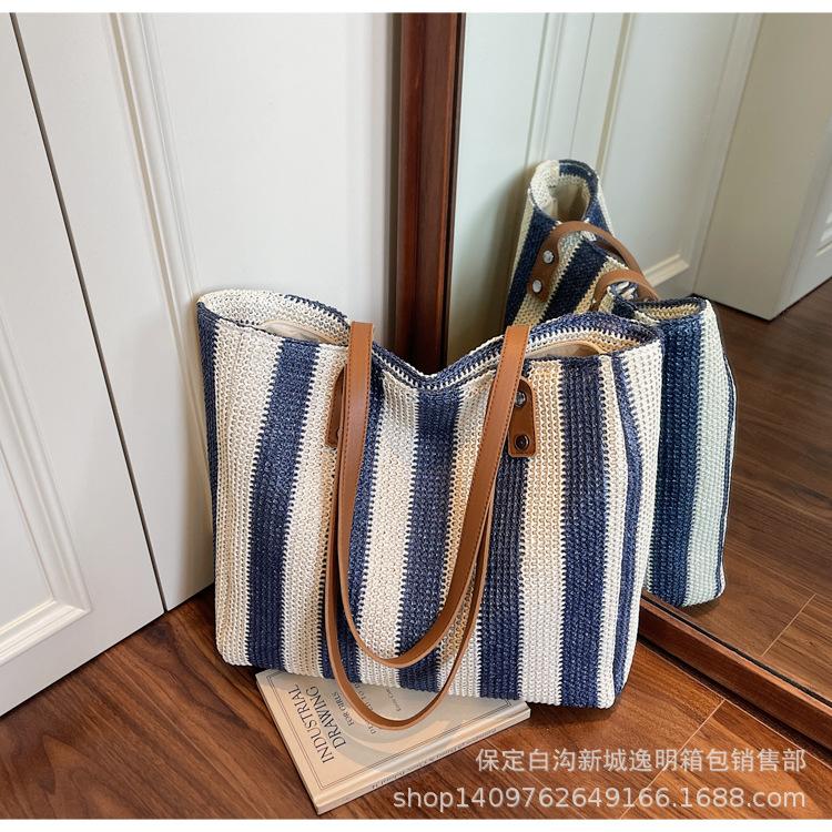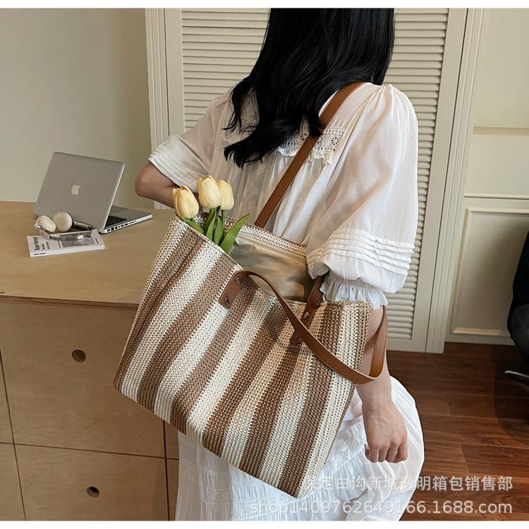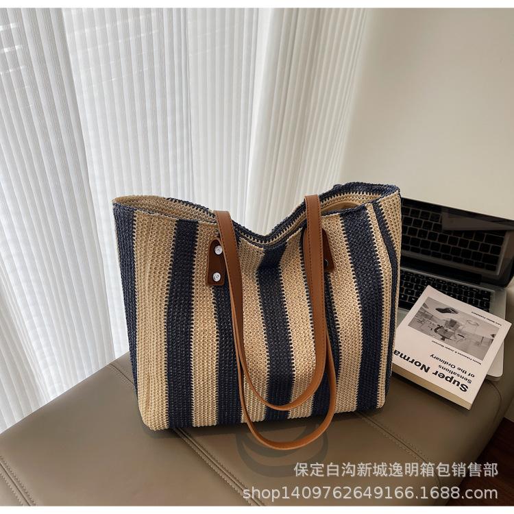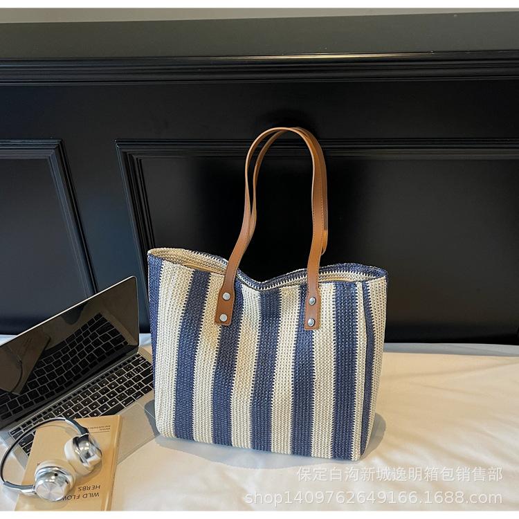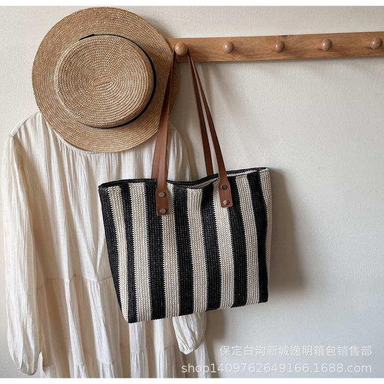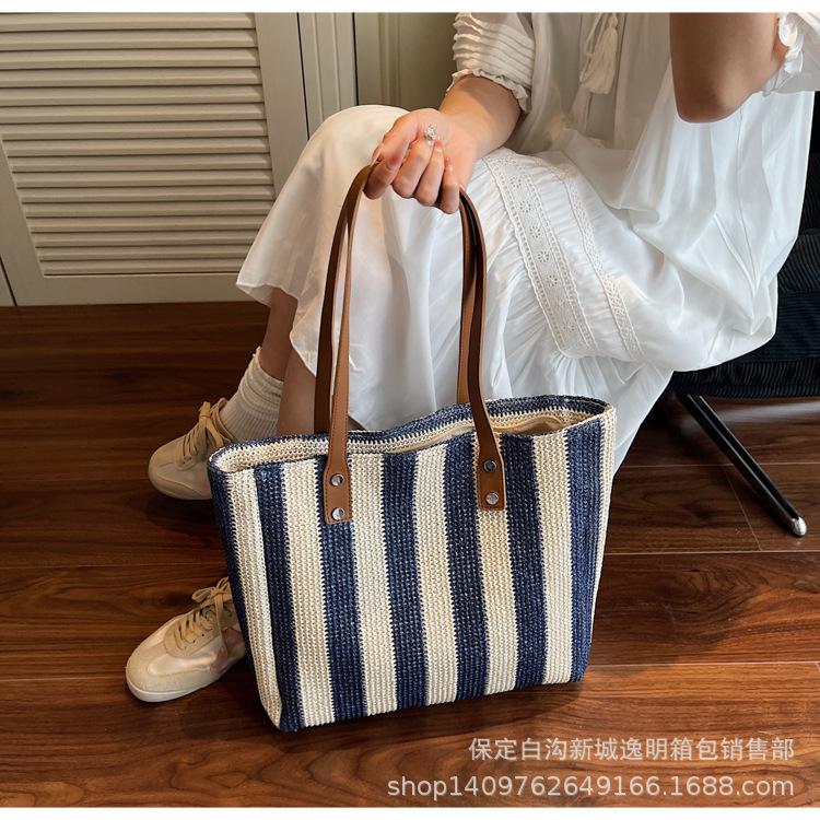 Bolso Tote de Gran Capacidad Bolso de Hombro Simple de Color Contrastante Bolso de Playa Casual para Vacaciones de Verano 2025 para Mujer