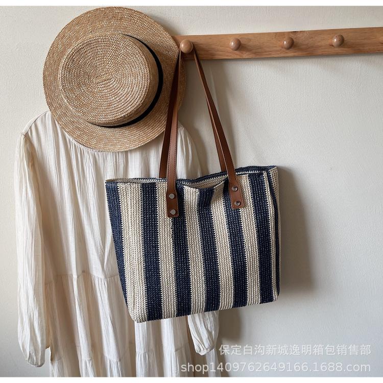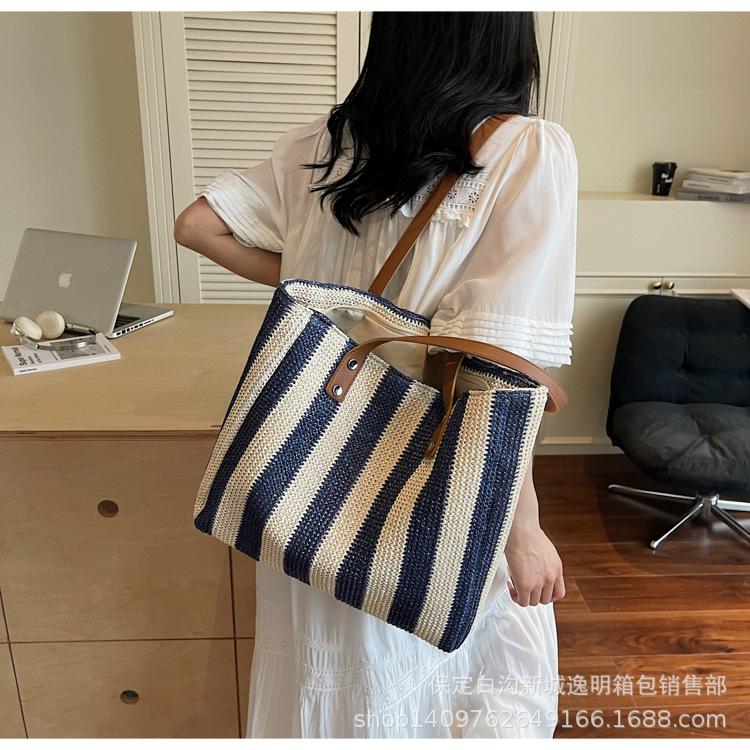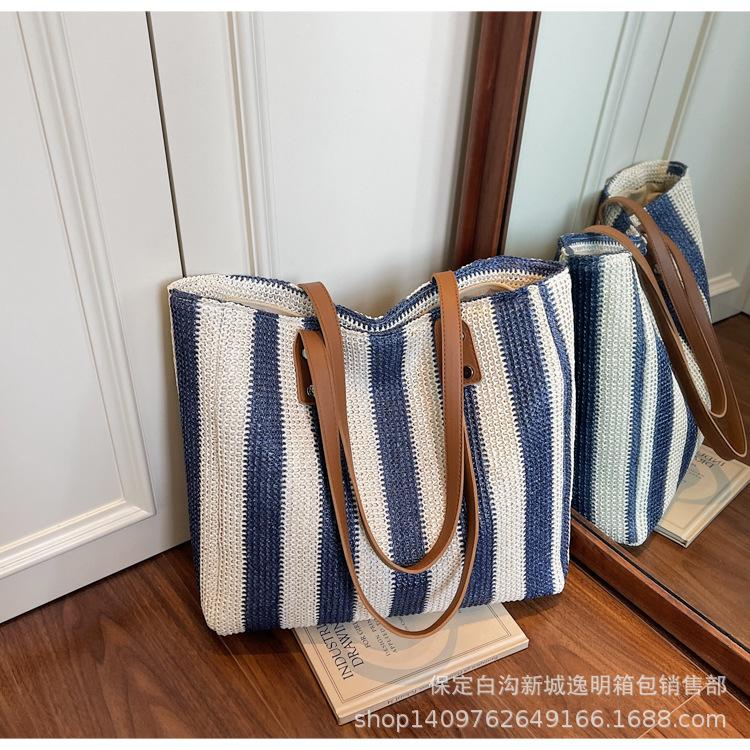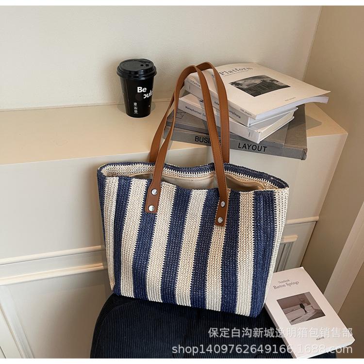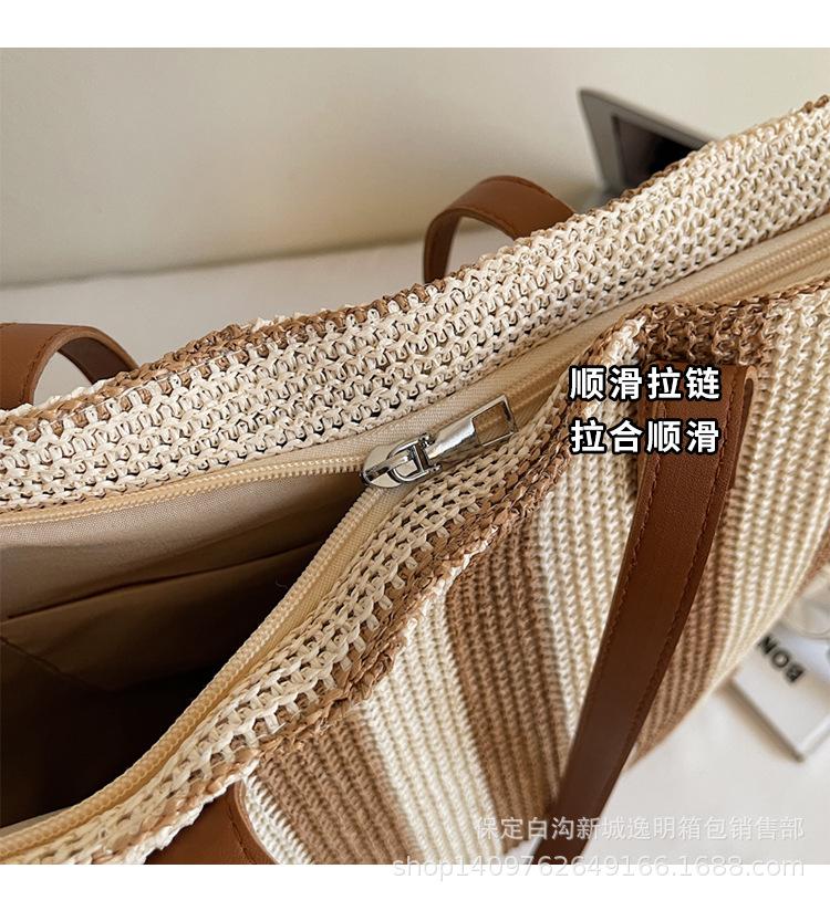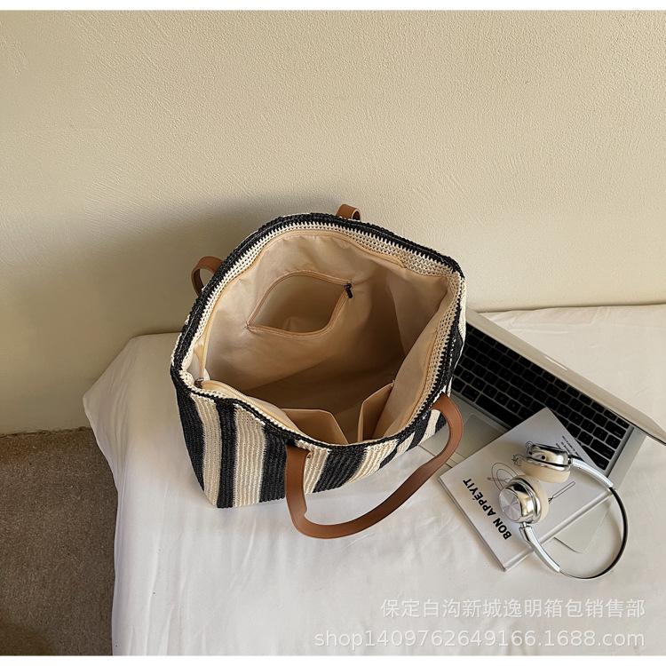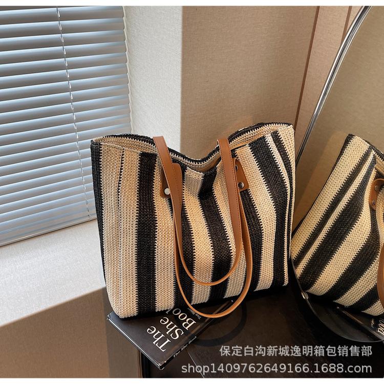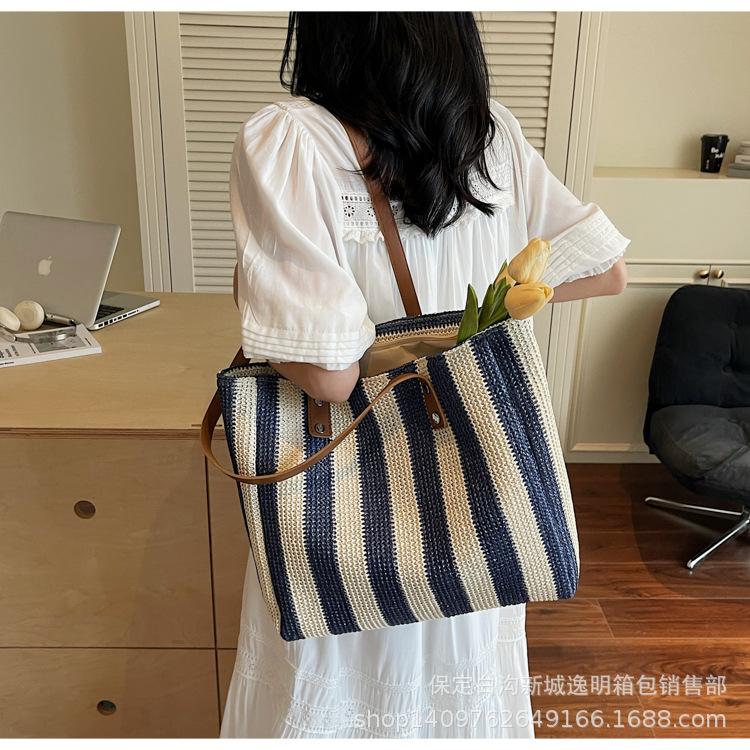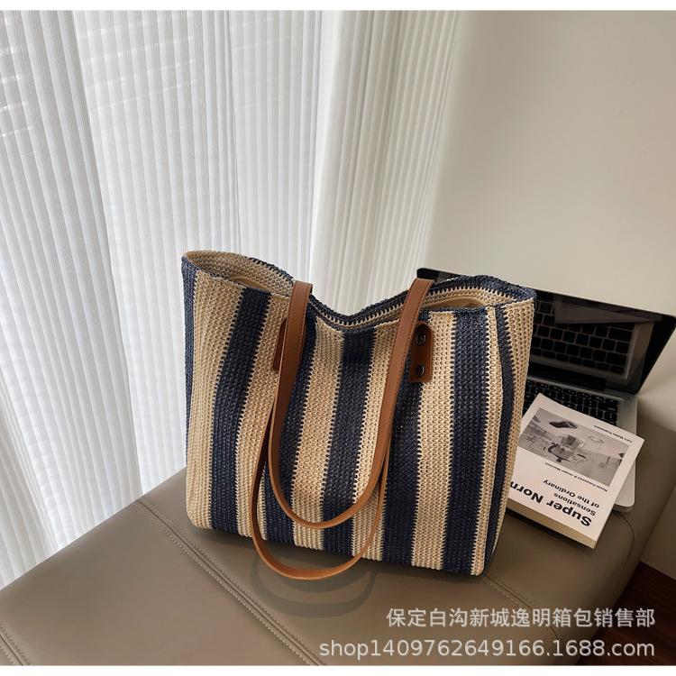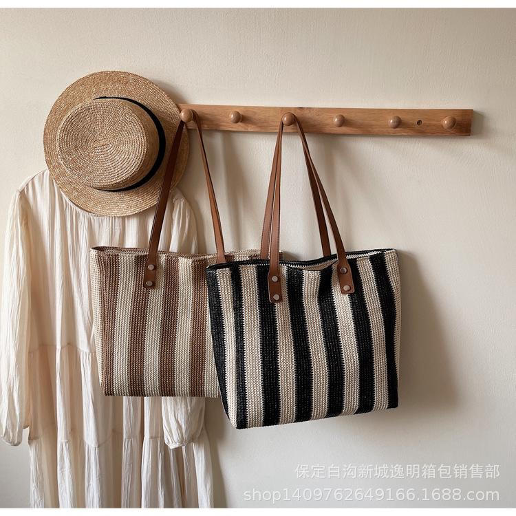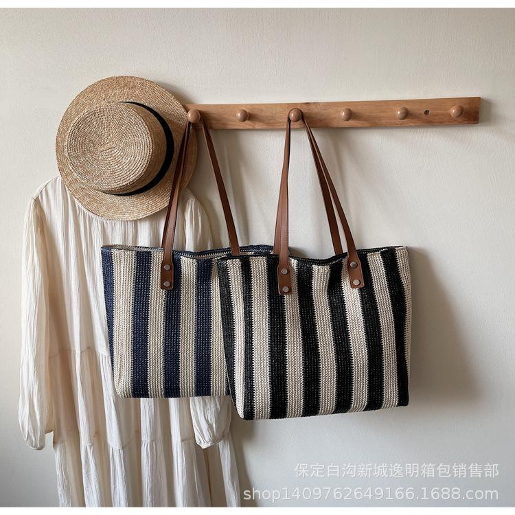 Bolso Tote de Gran Capacidad Bolso de Hombro Simple de Color Contrastante Bolso de Playa Casual para Vacaciones de Verano 2025 para Mujer