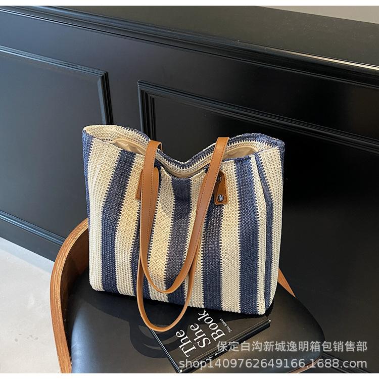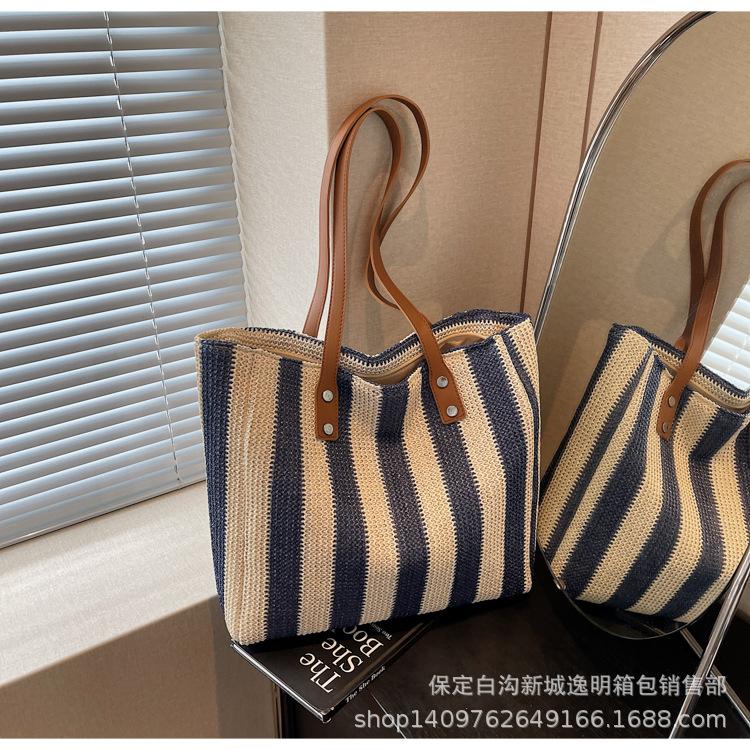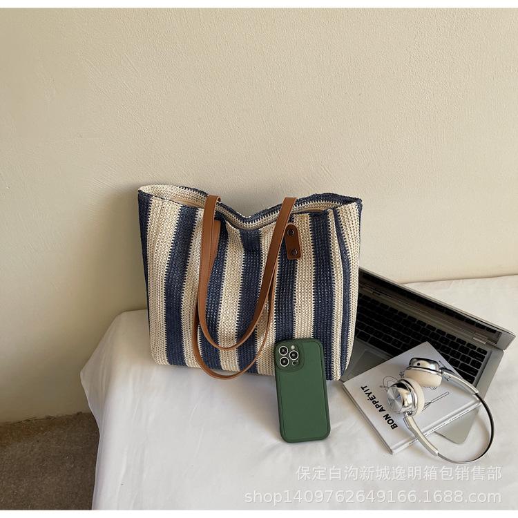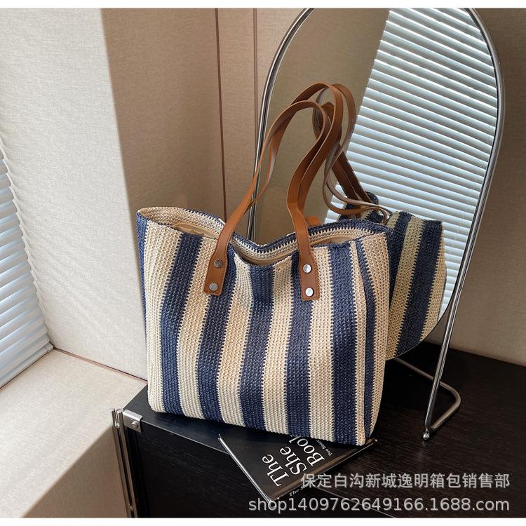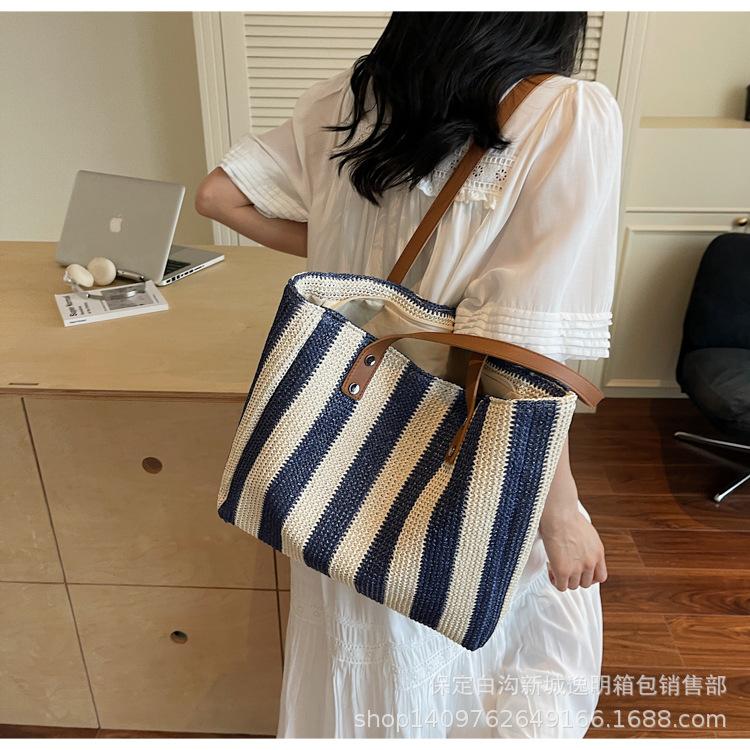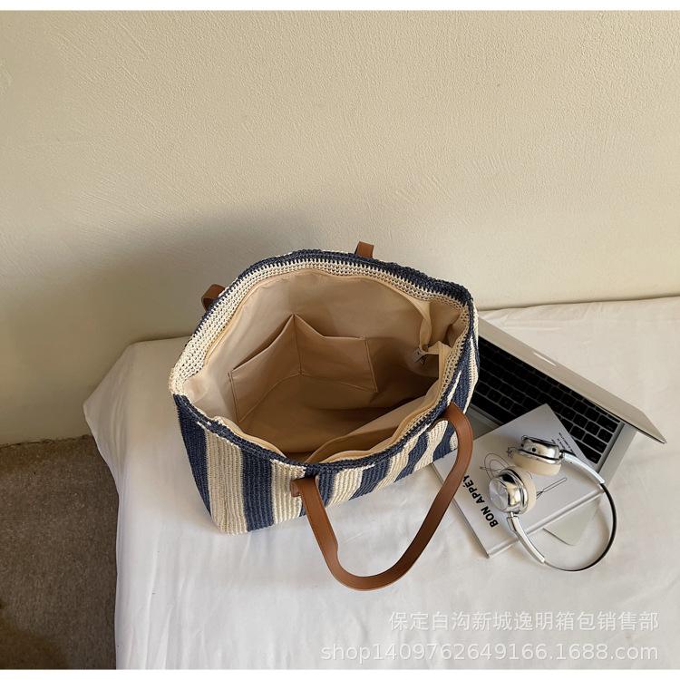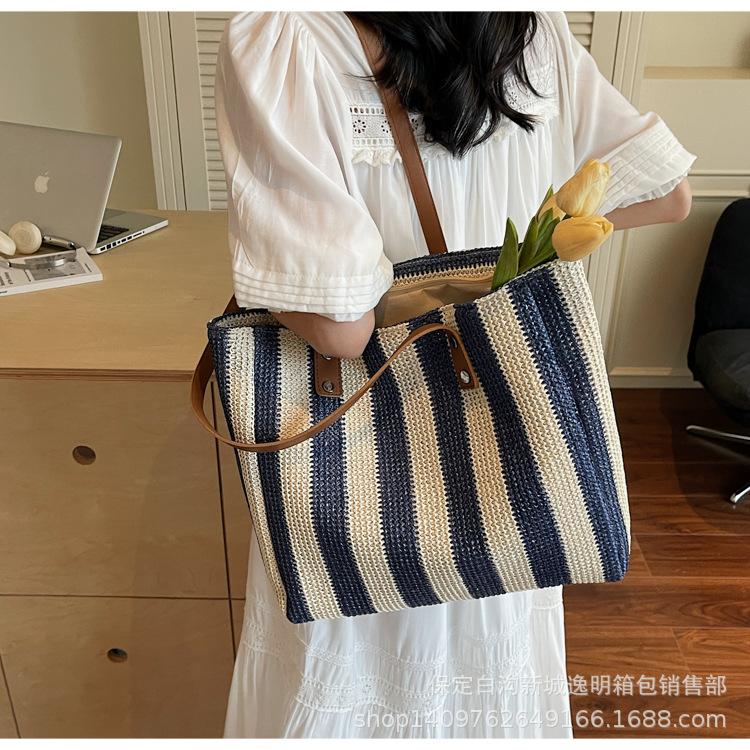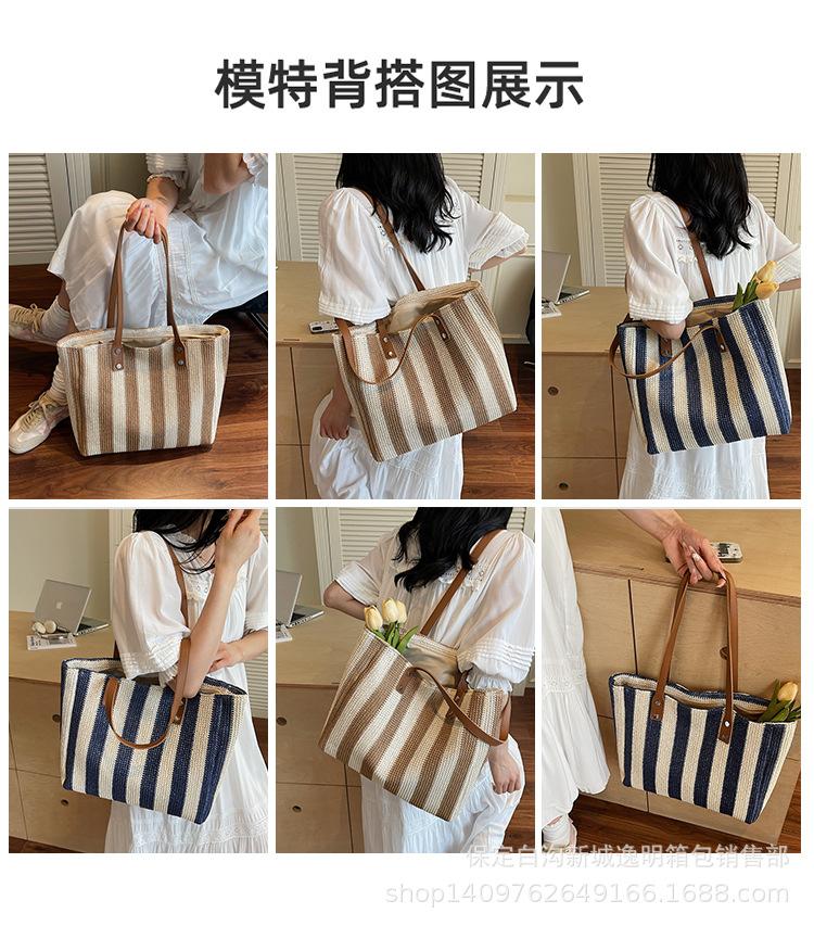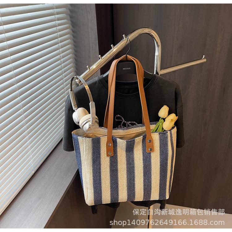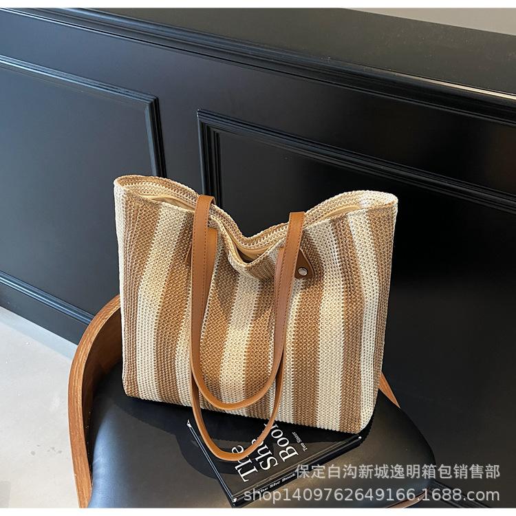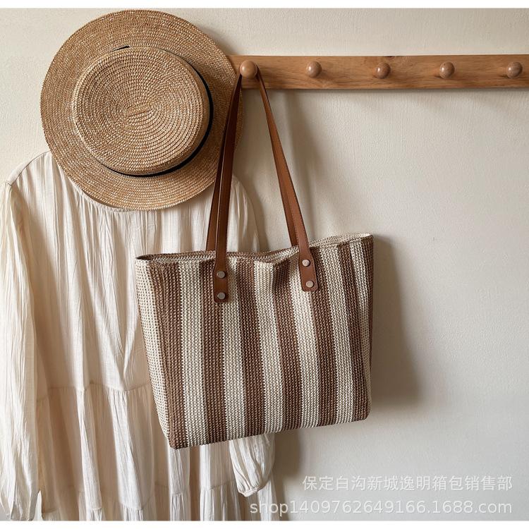 Bolso Tote de Gran Capacidad Bolso de Hombro Simple de Color Contrastante Bolso de Playa Casual para Vacaciones de Verano 2025 para Mujer