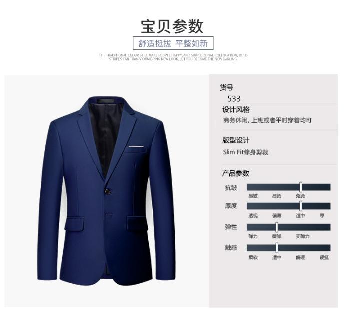 Traje Nuevo de Moda Transfronterizo para Hombre Estilo Coreano Juvenil Casual Negocios Color Sólido Fila Sencilla Dos Botones Chaqueta de Traje