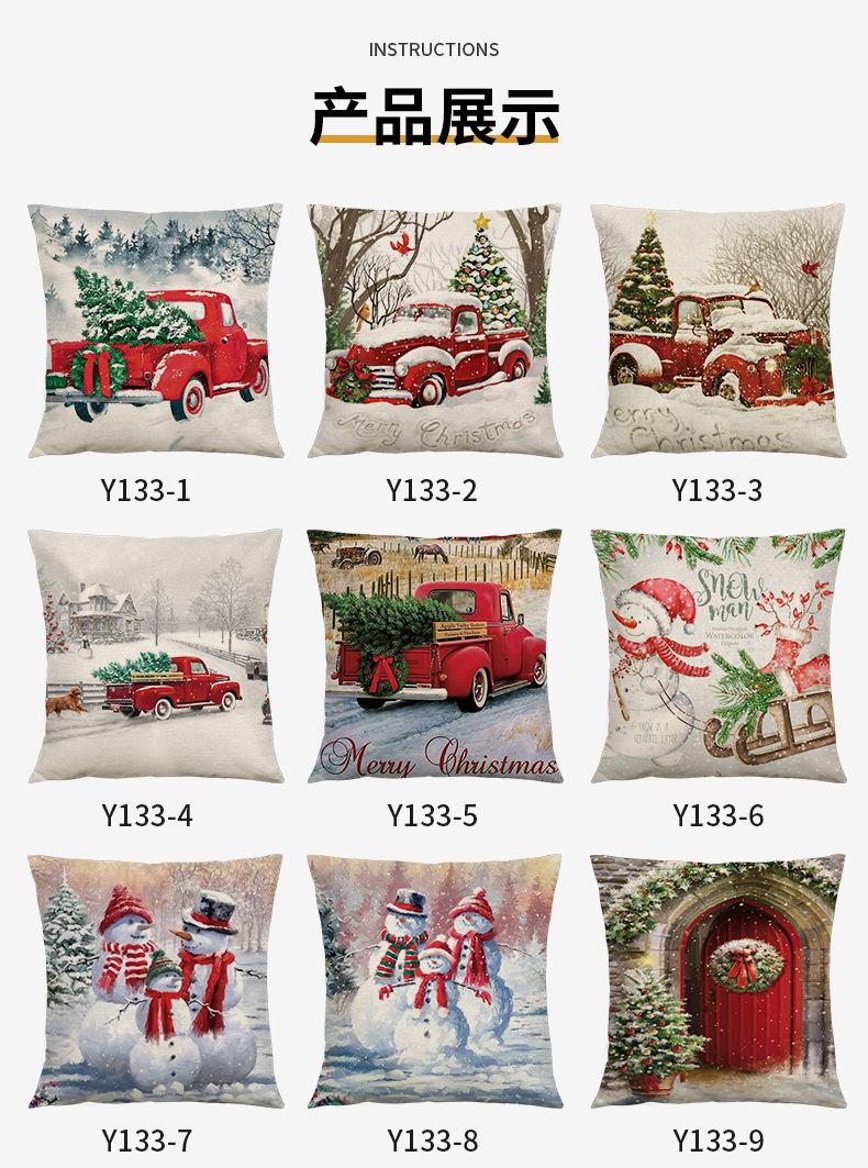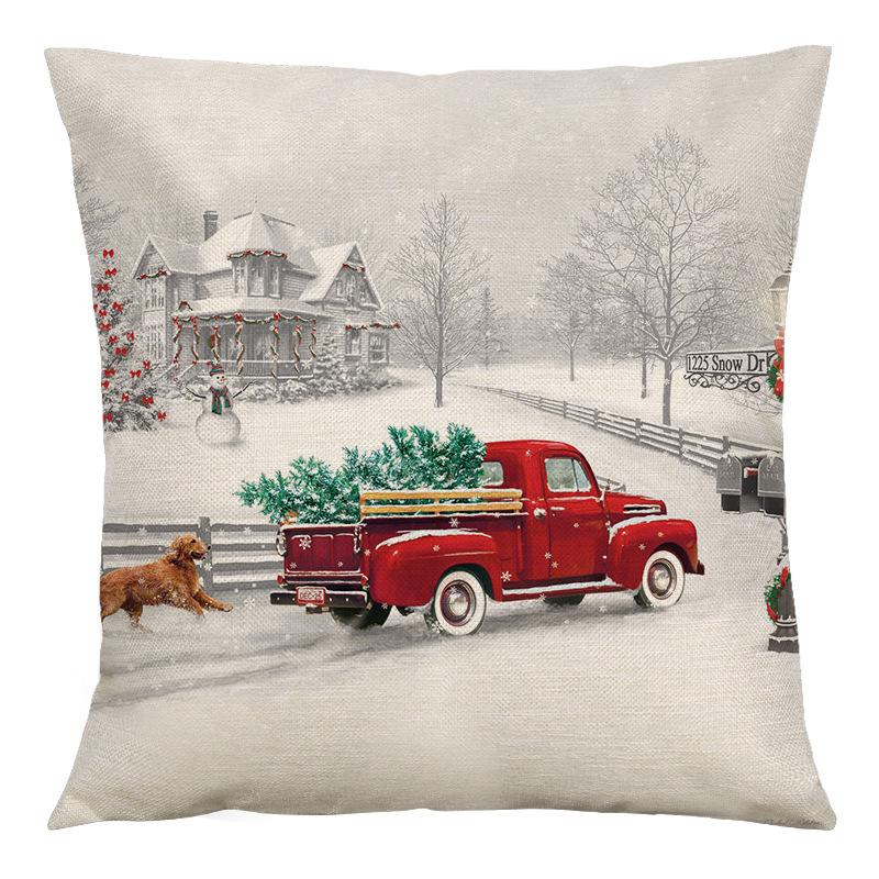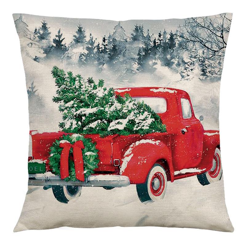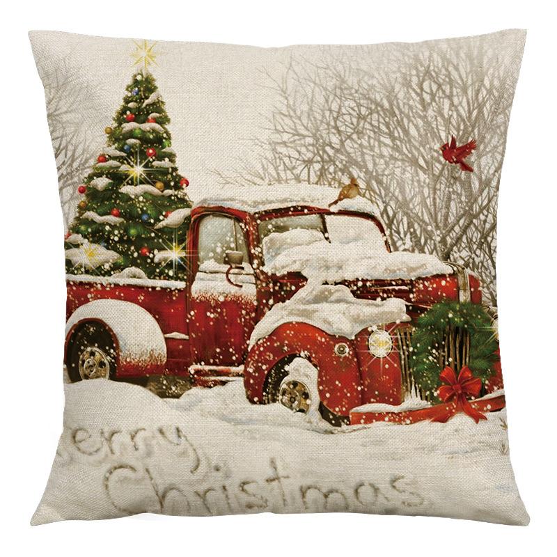Amazon Funda de Almohada Popular Navideña Transfronteriza Coche Retro Lino Hogar Sofá Funda de Almohada Cojín de Dormitorio