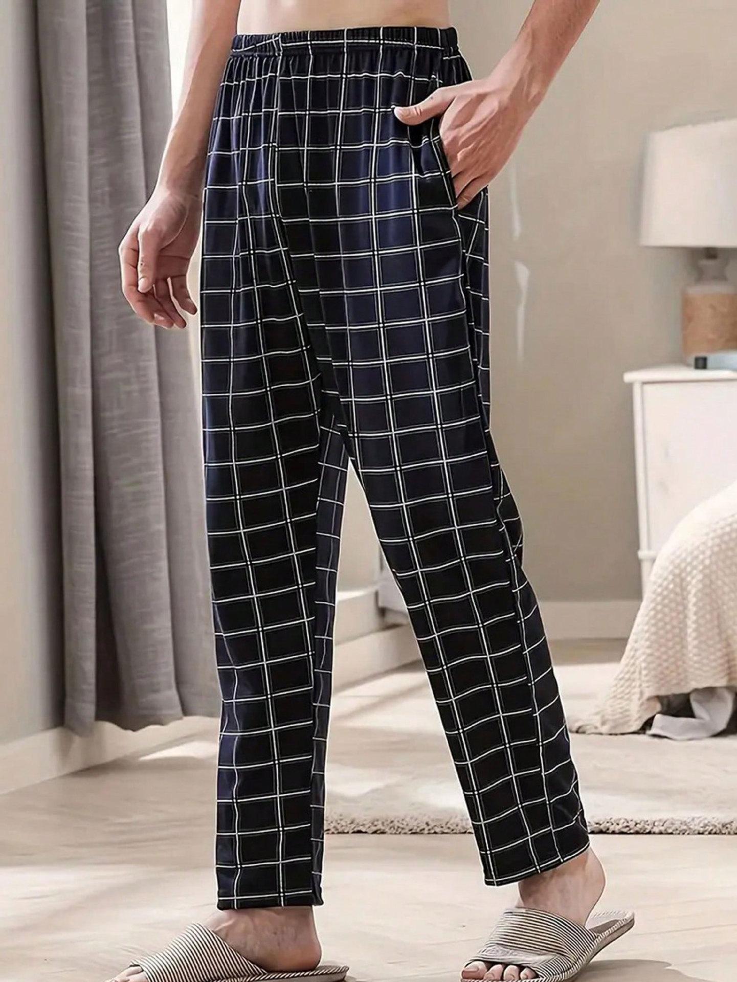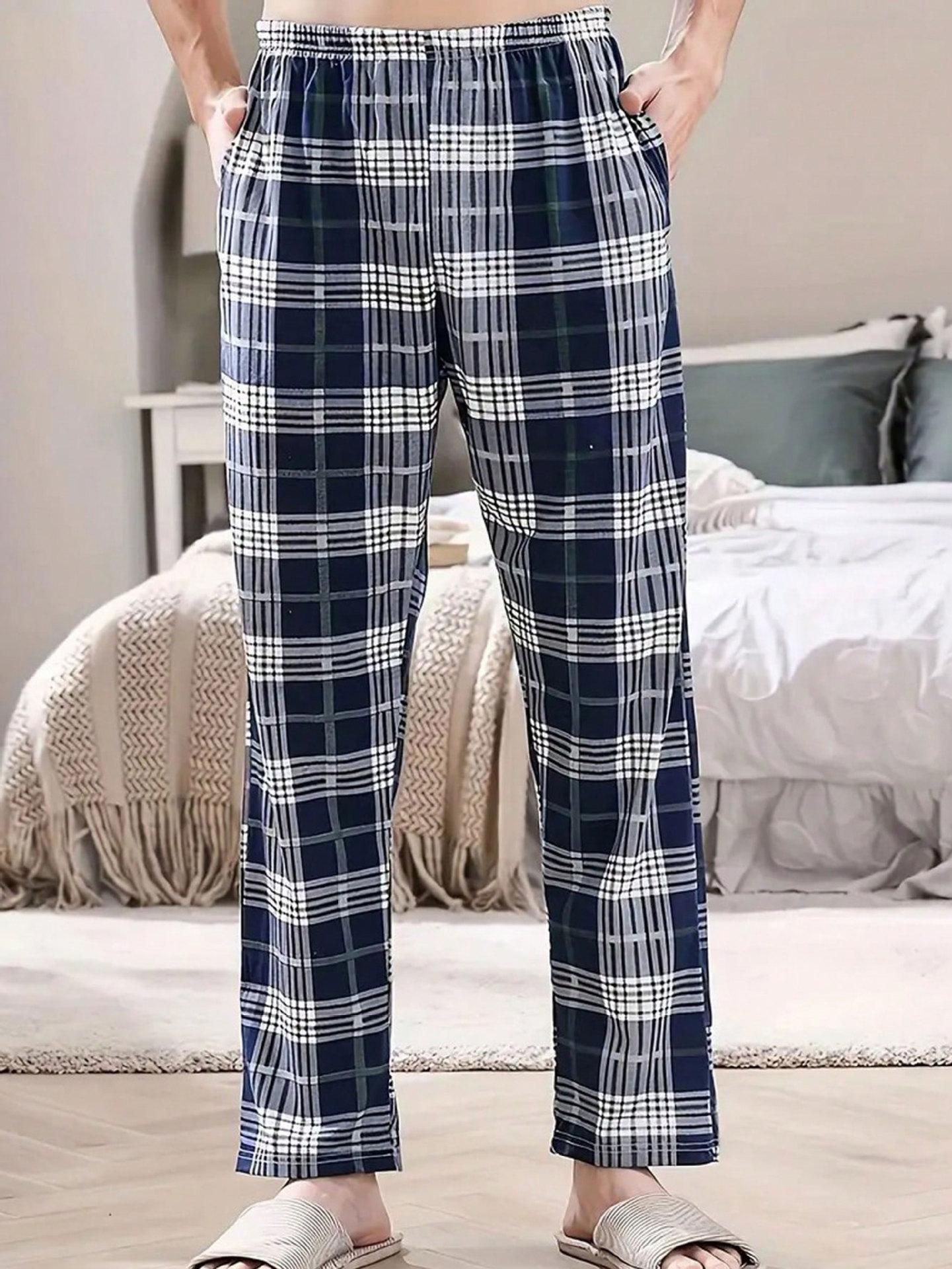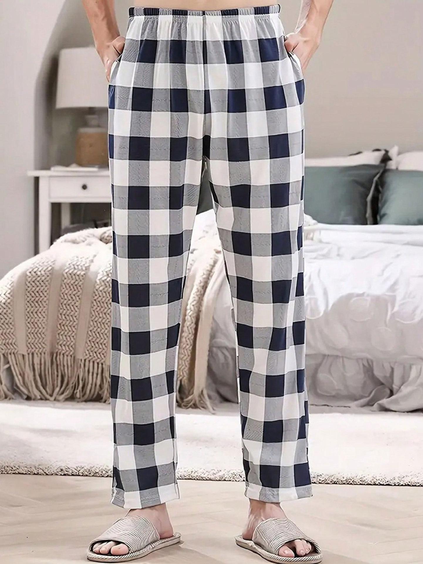 Pantalones de Pijama de Cuadros Multicolor para Hombre Primavera Sueltos Talla Grande Delgados Doble Bolsillo Verano Pantalones para Casa Casual Ropa Exterior