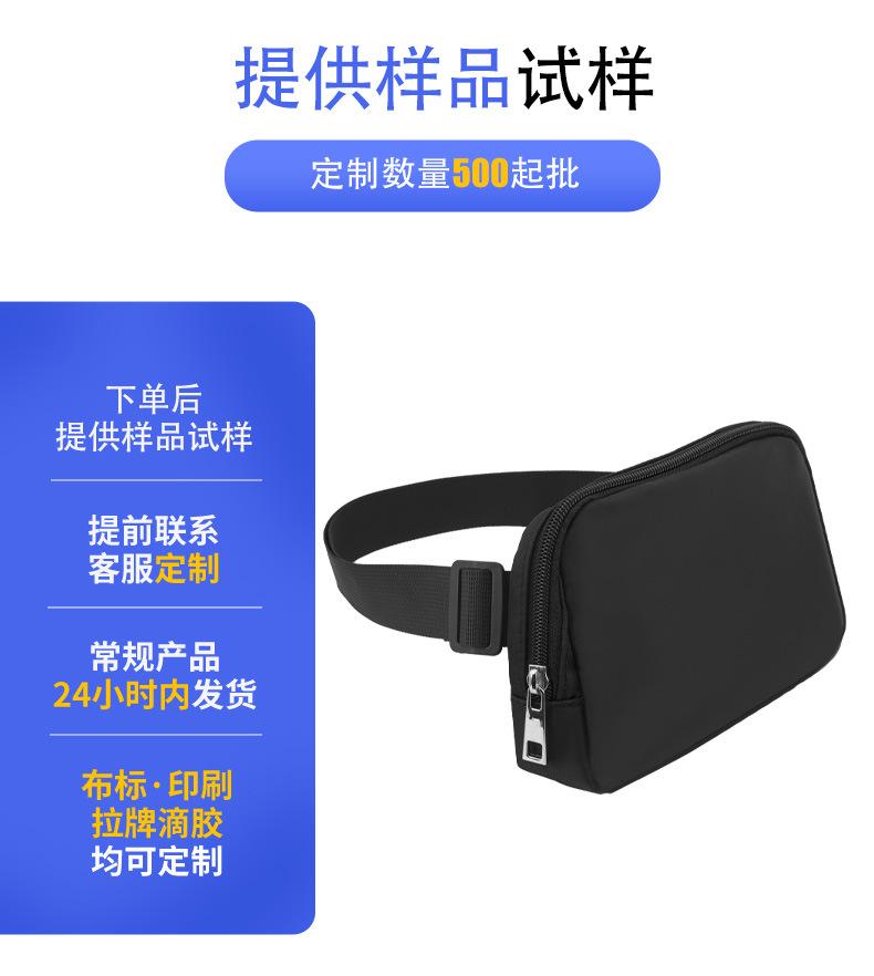 Bolsa de Cintura Deportiva Casual para Exteriores Lulu Personalizada Nylon Impermeable Cremallera Bolsa de Pecho Ajustable Bandolera Bolsa de Cintura para Hombre