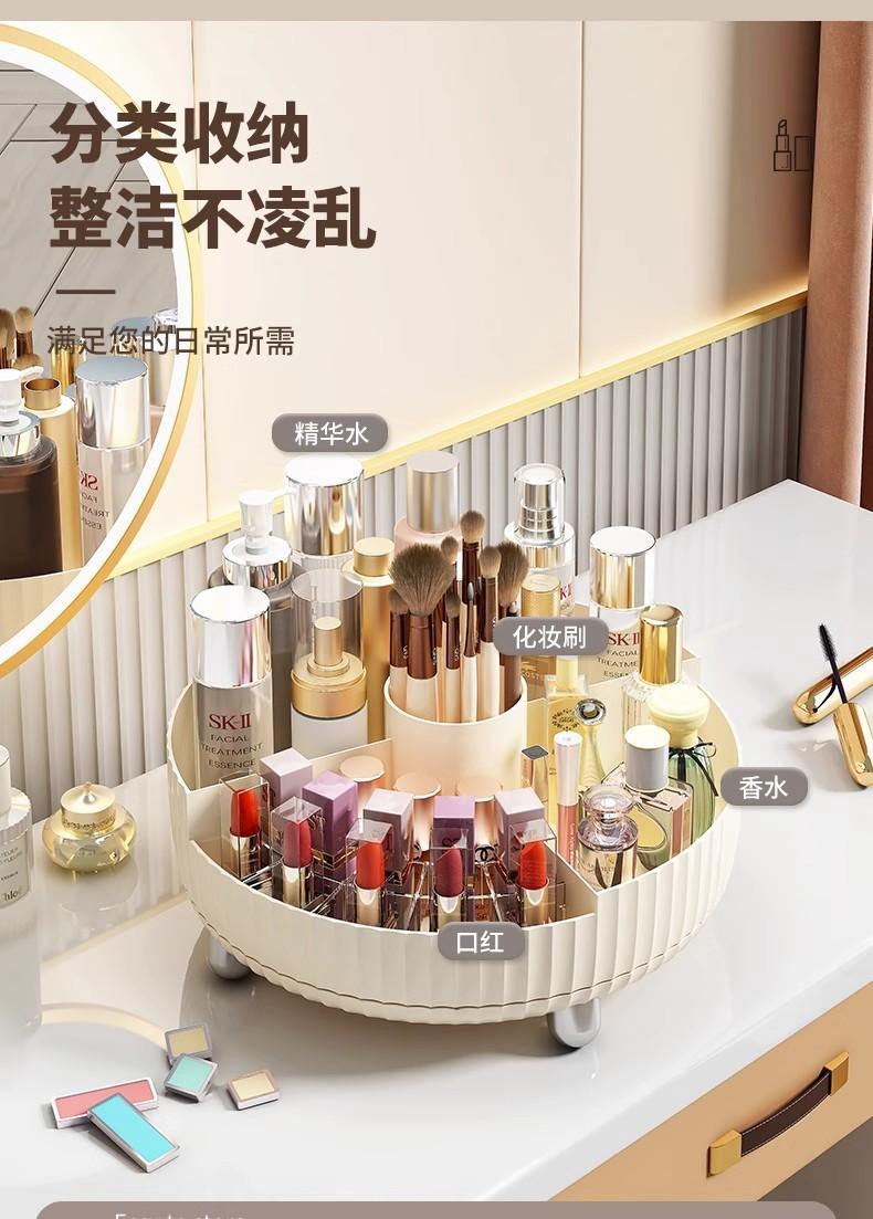 Cream white [rotatable] makeup storage tray, Elegant white [rotatable] makeup storage tray, Light luxury green...