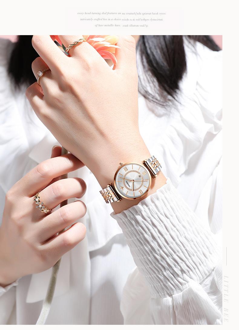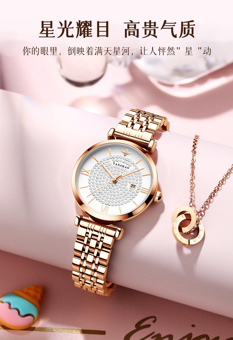 Women's steel band full-rose gold star diamond watch, Women's watch with steel strips, Women's Steel Strip Ful...