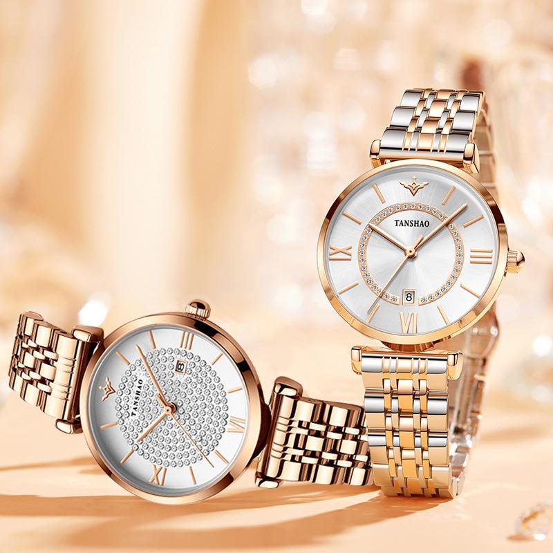 Compra Nuevo temperamento de gypsophila Reloj de mujer Reloj de cuarzo con diamantes completos oro rosa diamante Versión coreana del sonido de sacudida aguja rápida una generación de cabello al por mayor en Joom.pro