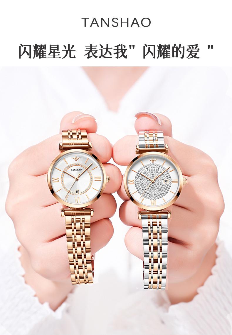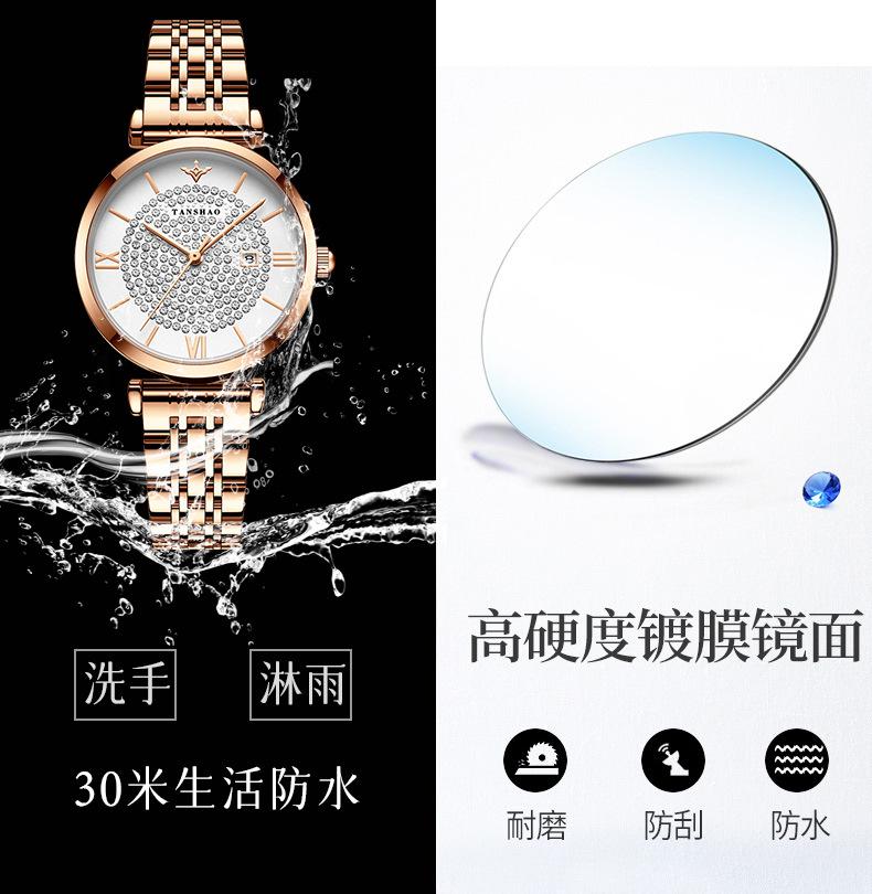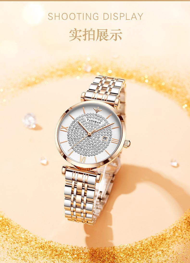 Nuevo temperamento de gypsophila Reloj de mujer Reloj de cuarzo con diamantes completos oro rosa diamante Versión coreana del sonido de sacudida aguja rápida una generación de cabello