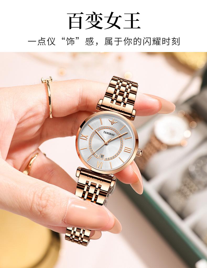 Women's steel strip rose gold round single drill face watch