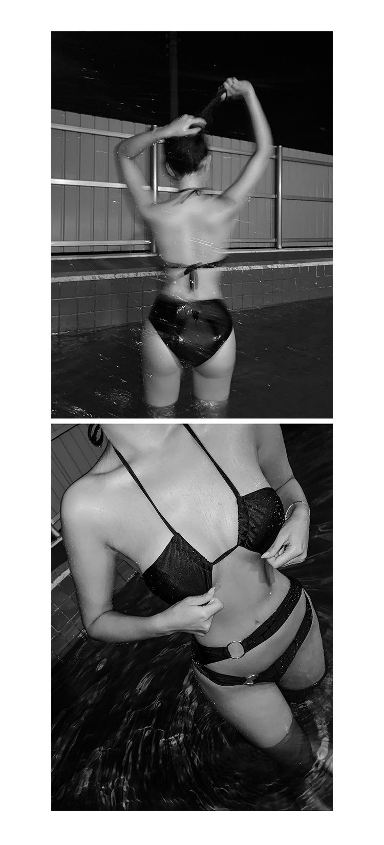 Abrigo negro de manga larga versión coreana directa de fábrica sexy moda traje de baño de una pieza triángulo mujer traje de baño delgado de tres piezas