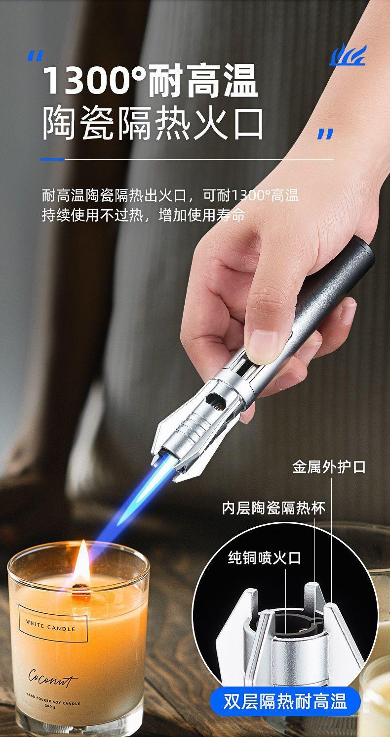 Soplete de Soldadura de Mano Encendedor a Prueba de Viento Portátil Mango Largo Petardos Fuegos Artificiales Punto Moxibustión Cigarro Lanzallamas de Alta Temperatura