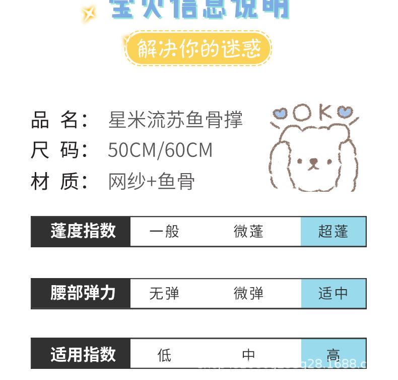 Enagua Lolita Lolita Soporte de espina de pescado Estrella Arroz Dos piezas Soporte de boda Cosplay diario Medio interior Slip