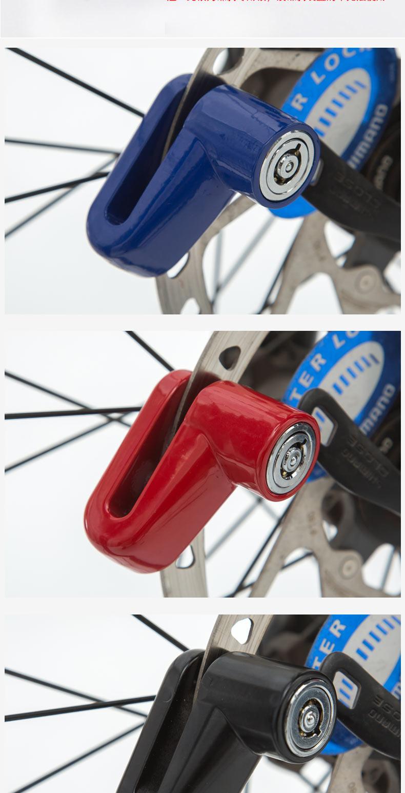 Disc brake lock black, Disc brake lock red, Disc brake lock blue, Black plastic case, Red plastic shell, Blue ...