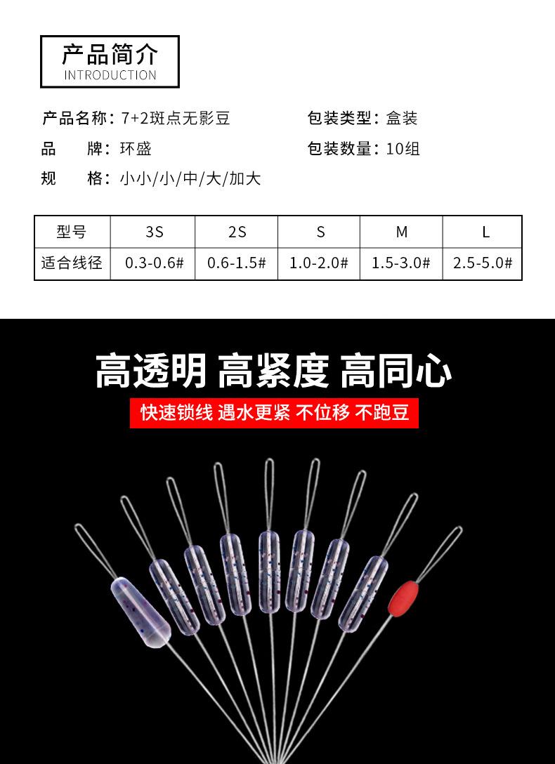 Huansheng Frijoles Espaciales de Silicona Competitivos Ultra-Ajustados Especiales Sombra de Agua Transparente Frijoles a Granel 7+2 Accesorios de Pesca Cilíndricos