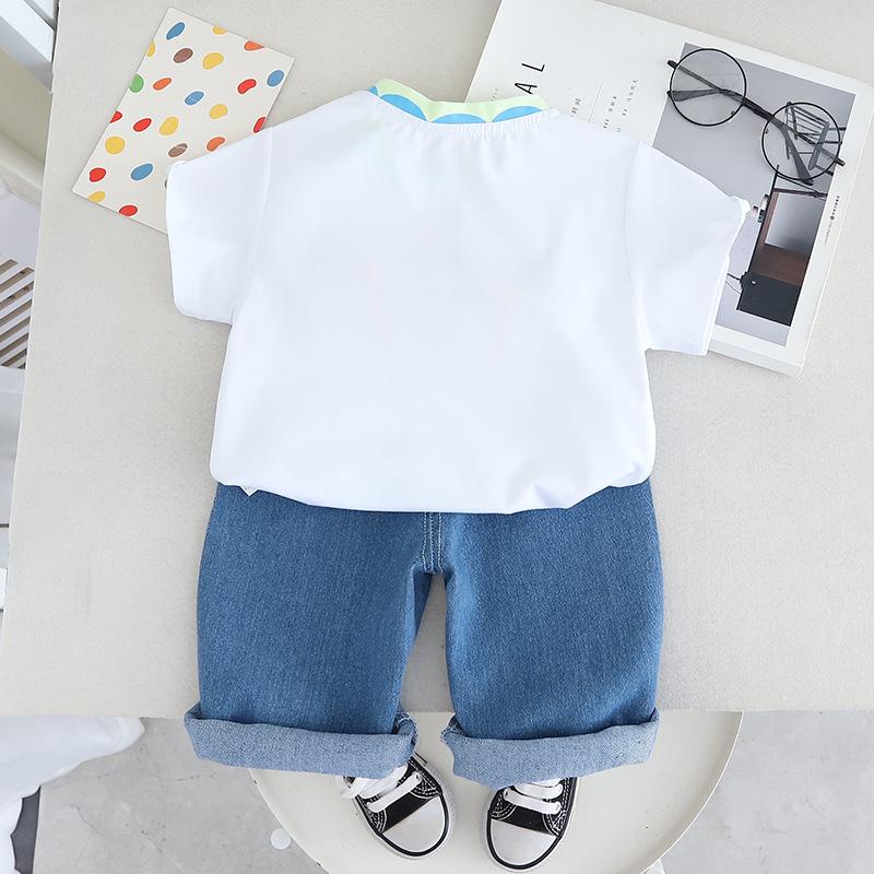 Ropa Infantil Yijia Traje de Manga Corta para Niños Delgado Transpirable Nuevo Conjunto de Dos Piezas Dibujos Animados Estilo Coreano Verano Ropa de Bebé