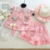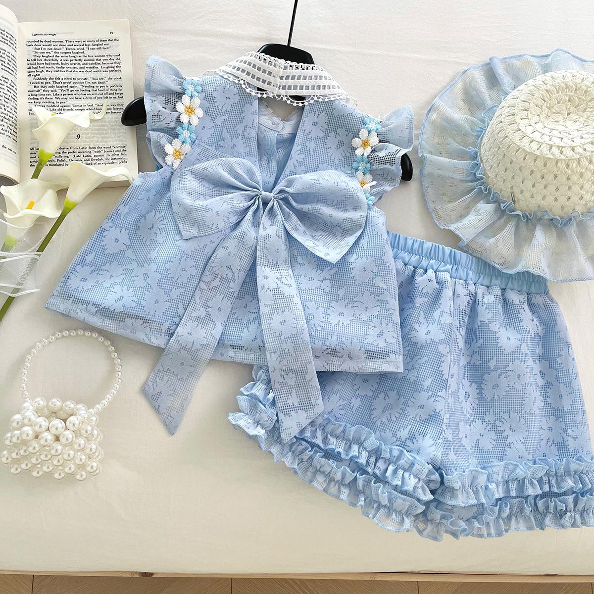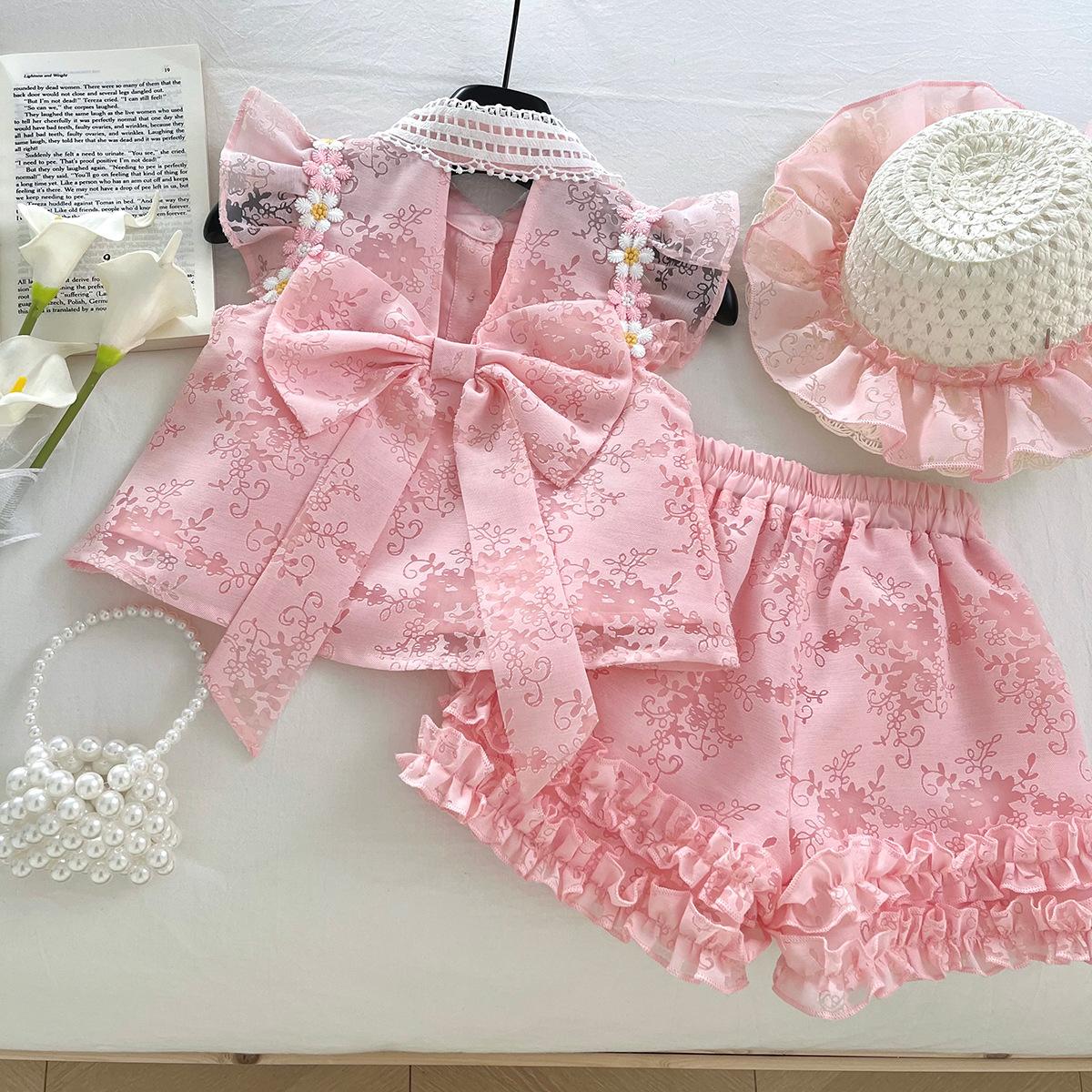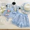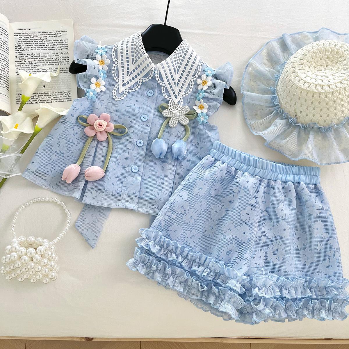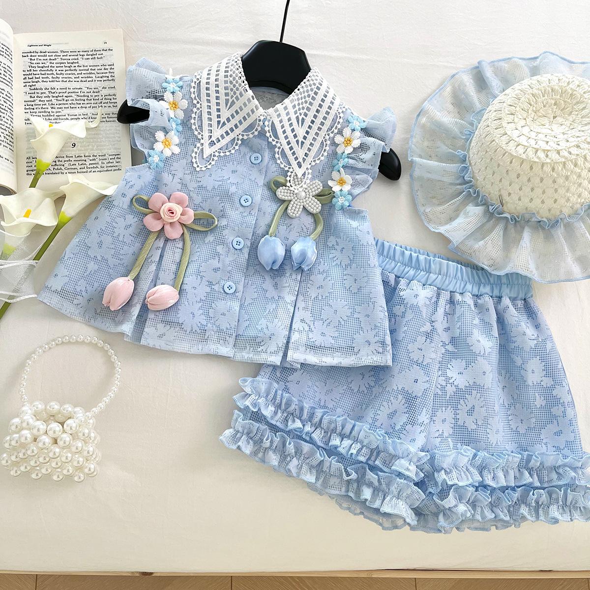 Compra Traje de Verano Nuevo para Niñas 2025 Estilo Bebé Infantil Camisa de Manga Volante con Flores Traje de Encaje Versátil 30139 al por mayor en Joom.pro