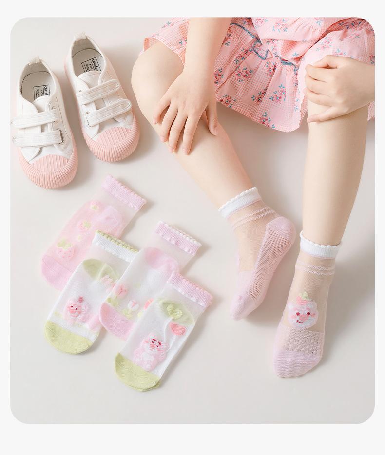 Calcetines de Seda de Hielo para Niñas, Calcetines Finos de Algodón de Verano para Niños, Medias de Malla Transpirables Ultrafinas de Verano para Niñas, Calcetines para Bebé