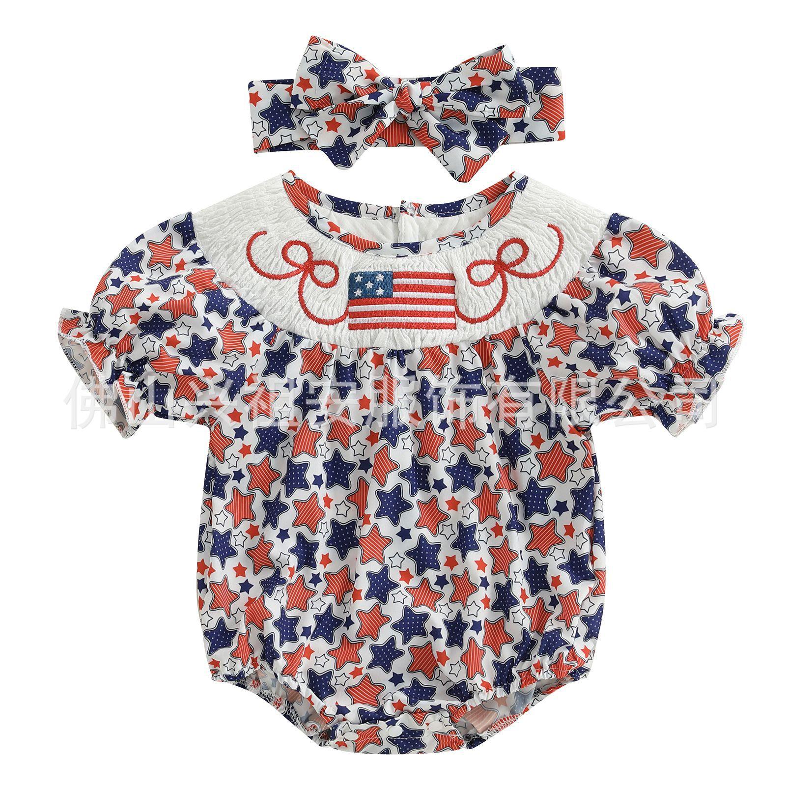 Mono triangular bordado con prepucio y turbante para bebé recién nacido de Cross-Border, Día de la Independencia