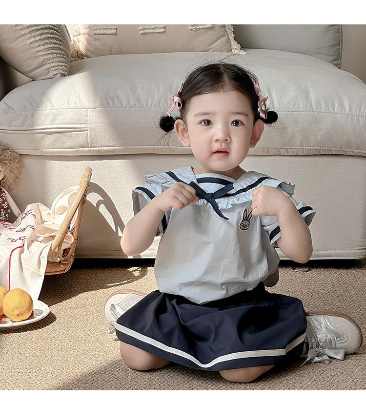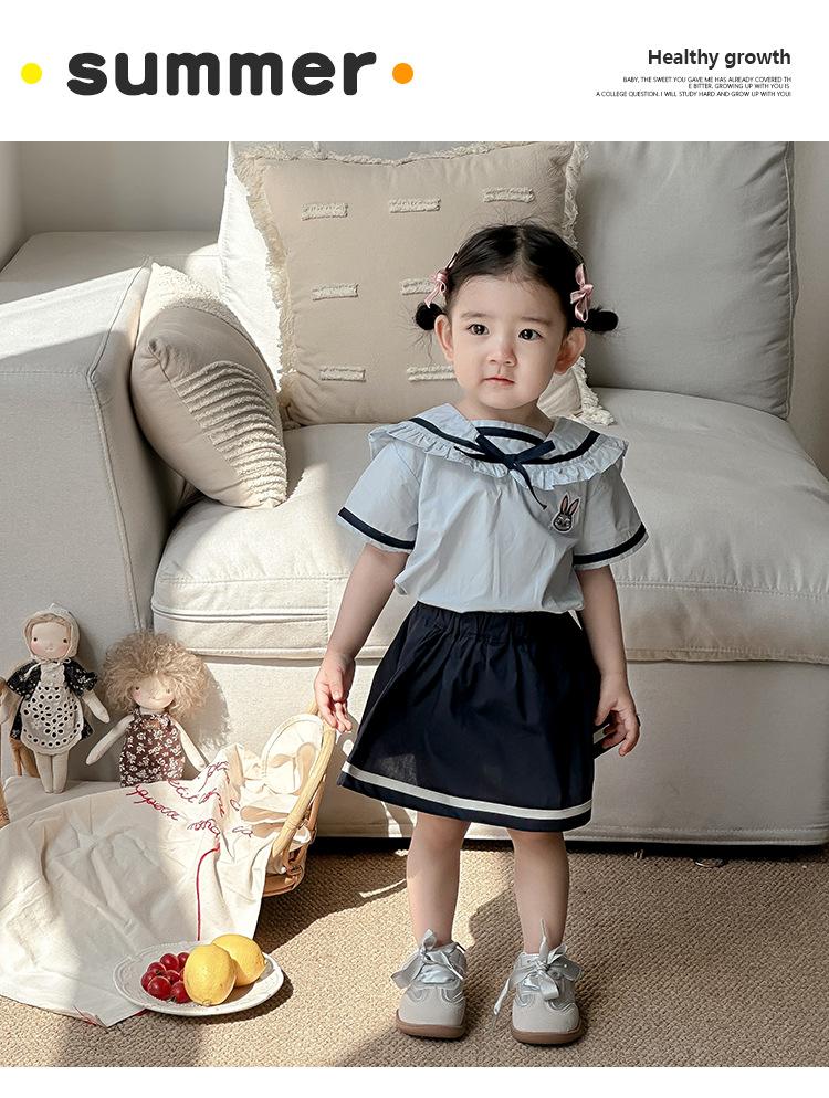 Producto Nuevo Ropa de Verano para Bebé Traje Estilo Universitario para Bebé Niña Algodón de Dibujos Animados Conjunto de Dos Piezas