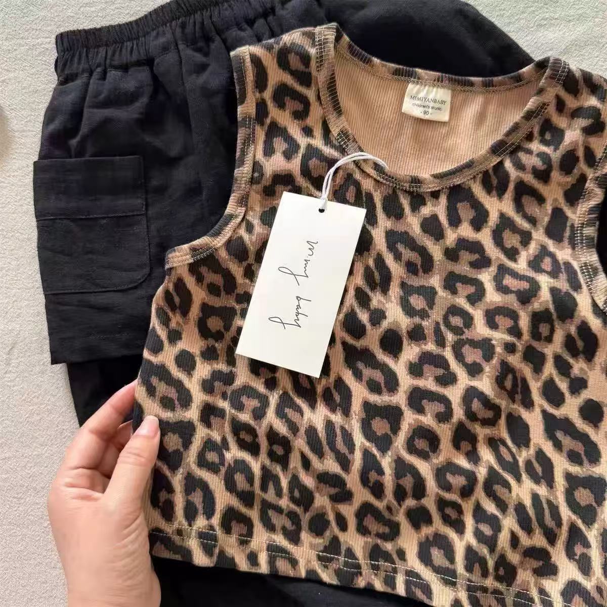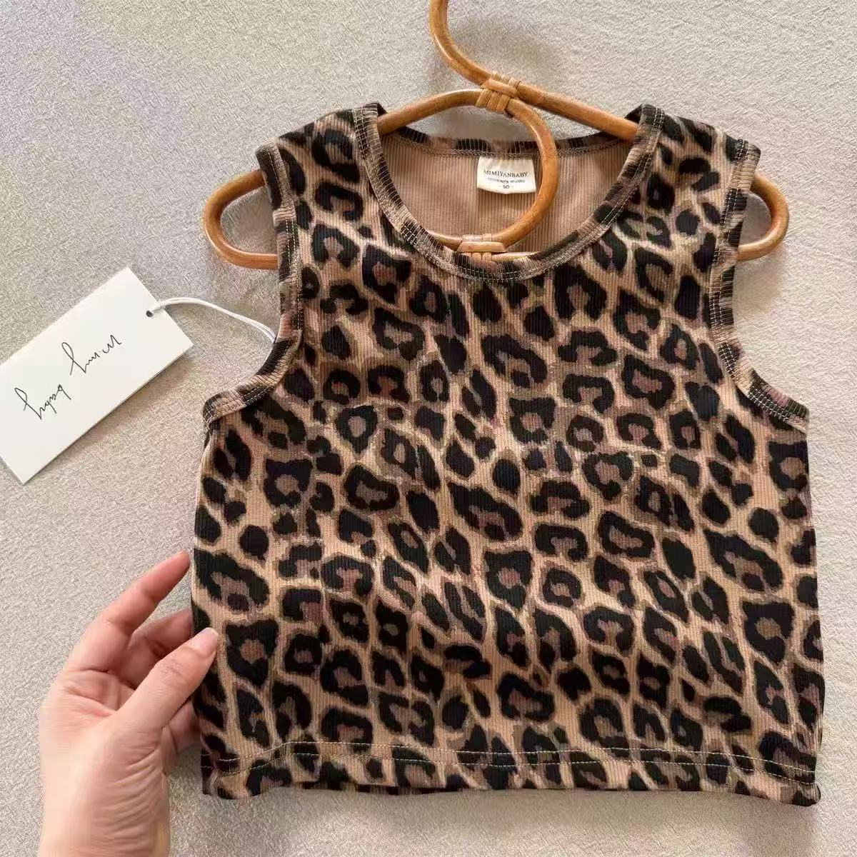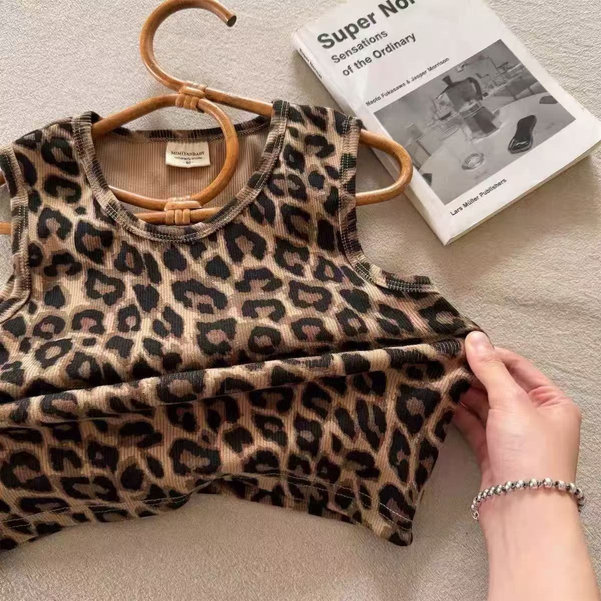Camiseta sin mangas para niños 2025 Verano Nuevo Estilo Tops Casuales Delgados para Niños Chaleco de Estampado de Leopardo Transpirable para Bebé a la Moda