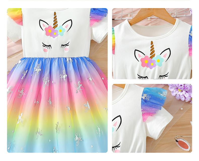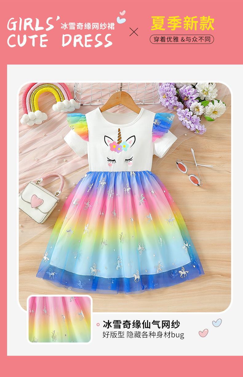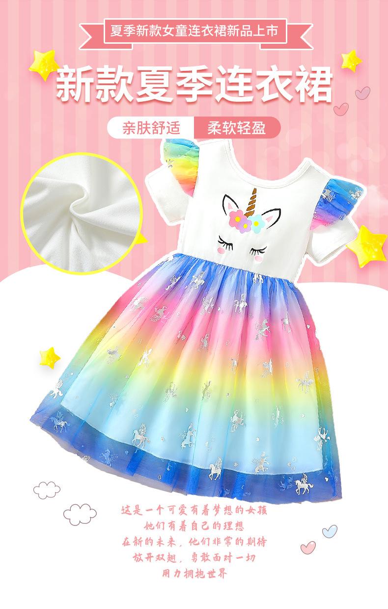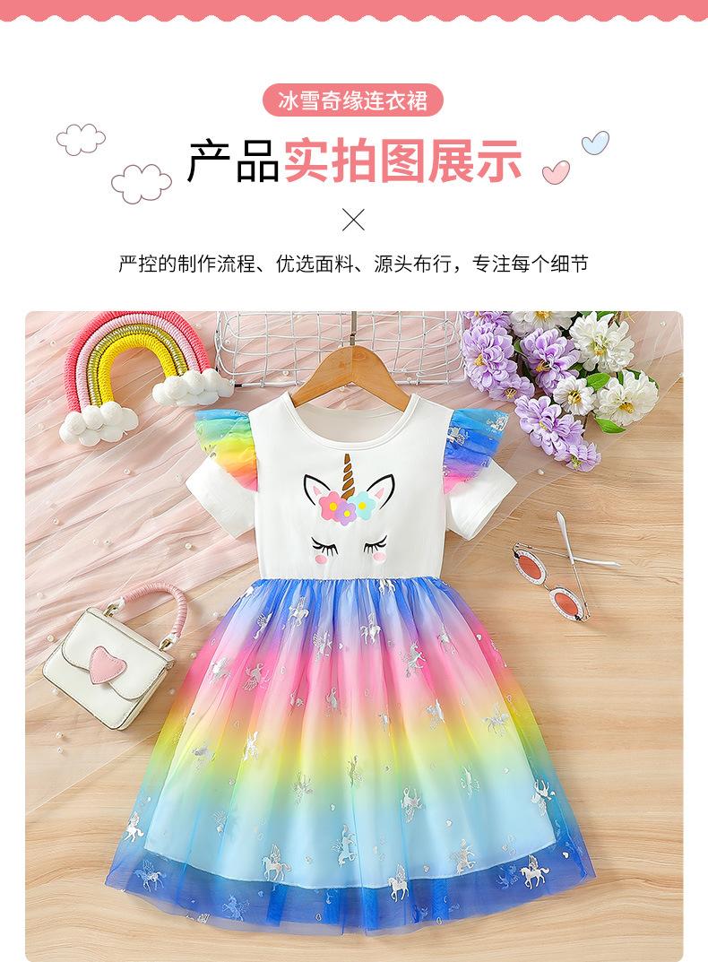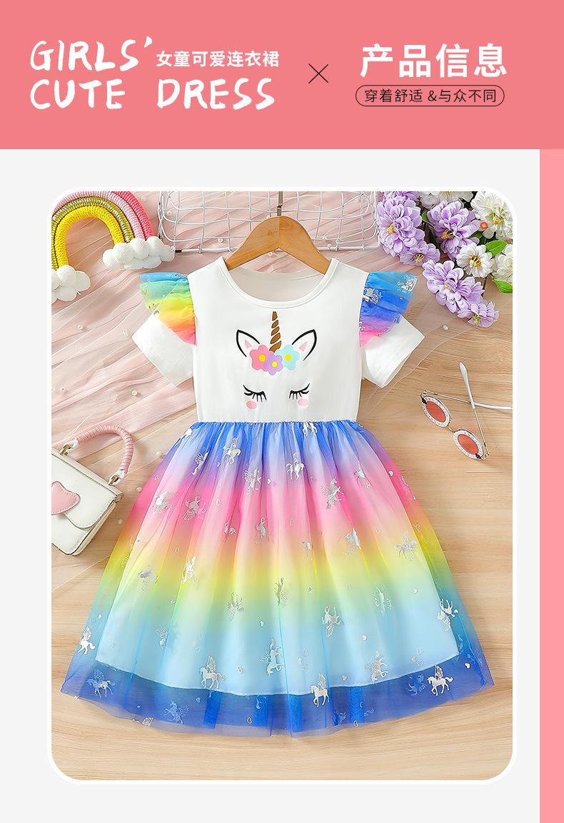 Compra Vestido de Unicornio para Niñas de Comercio Exterior 2025 Verano Nuevo Vestido de Manga Corta para Niña Falda Estilo Infantil al por mayor en Joom.pro
