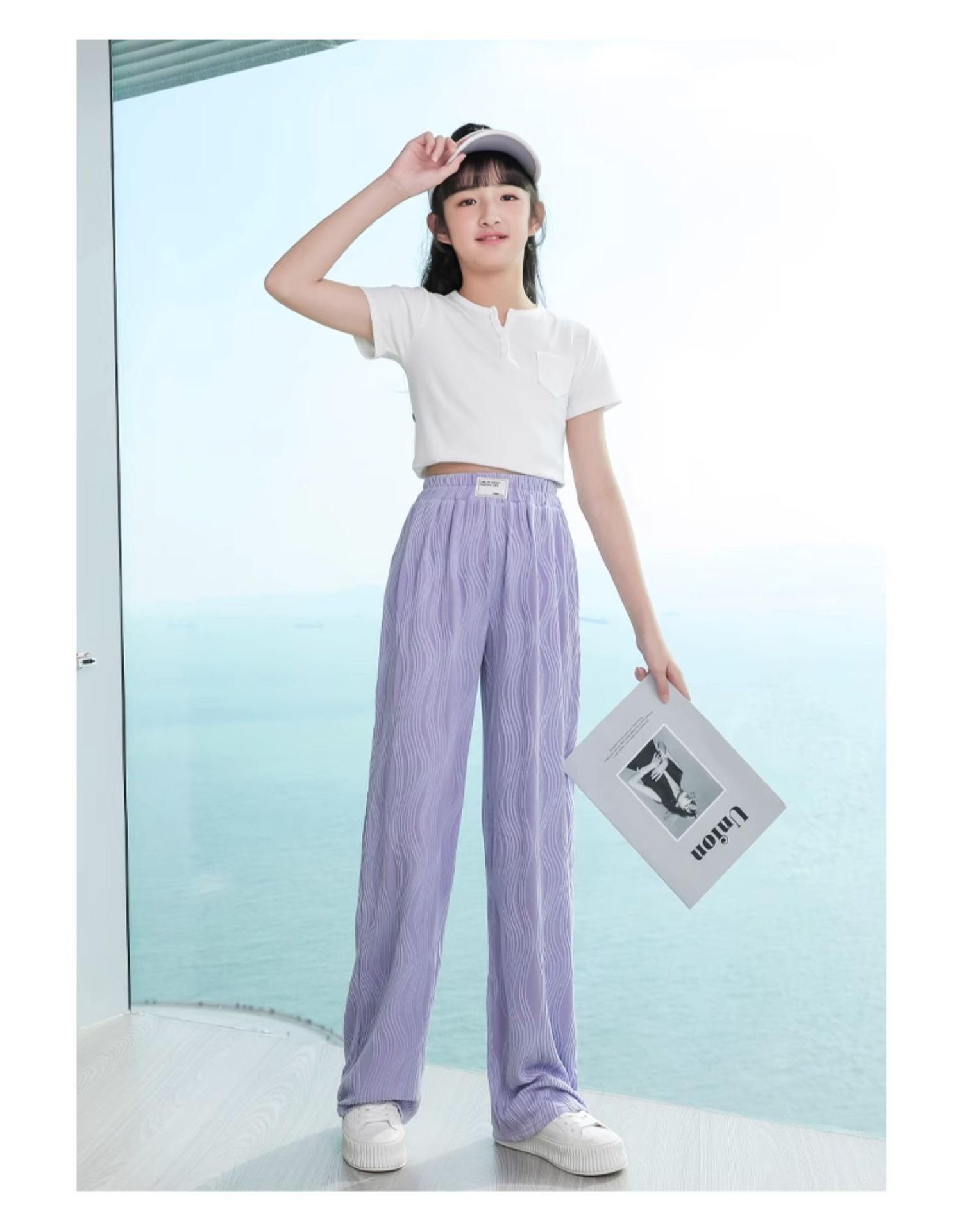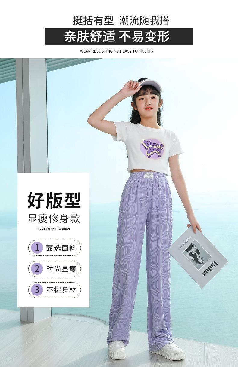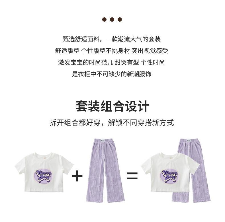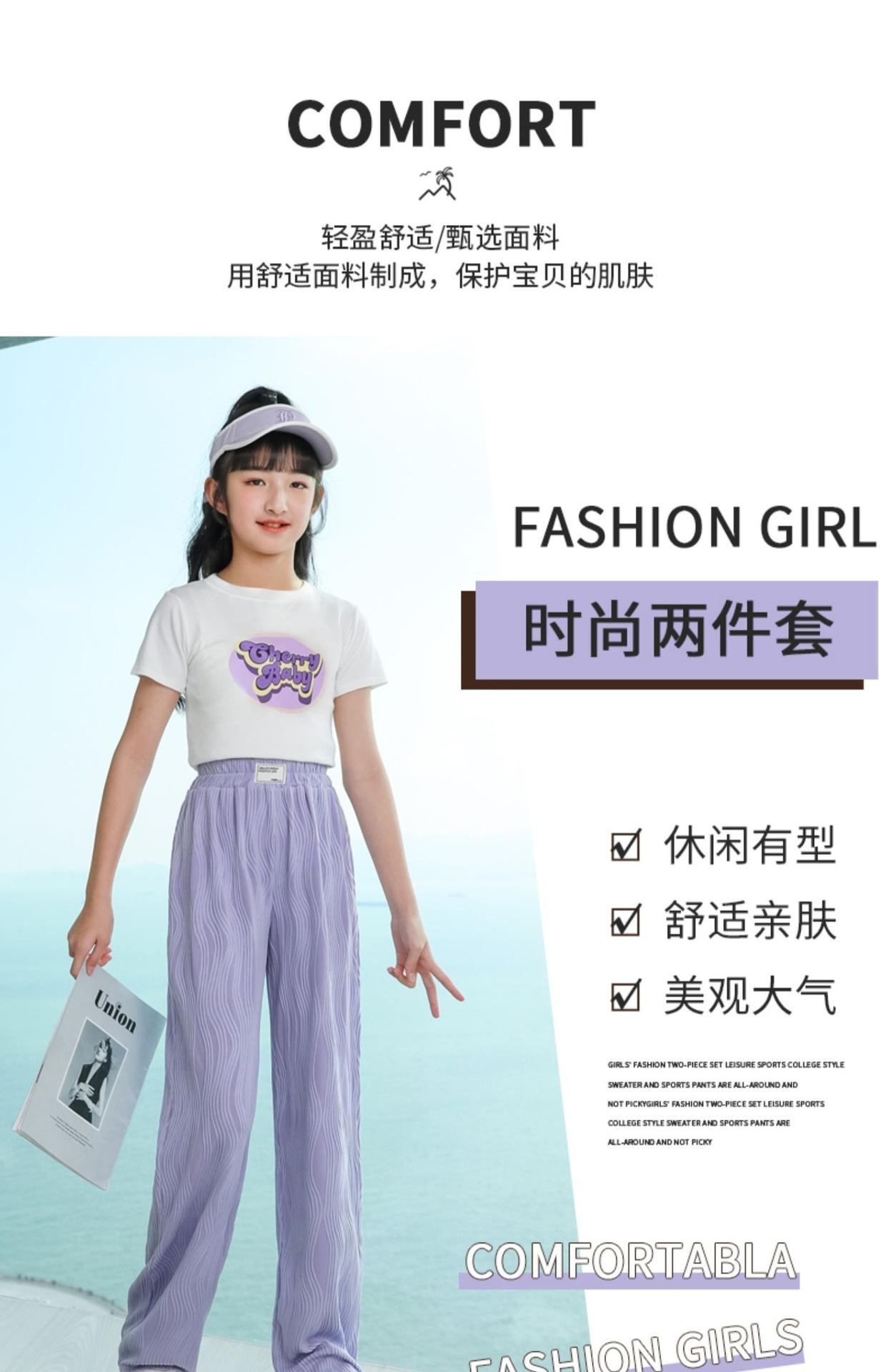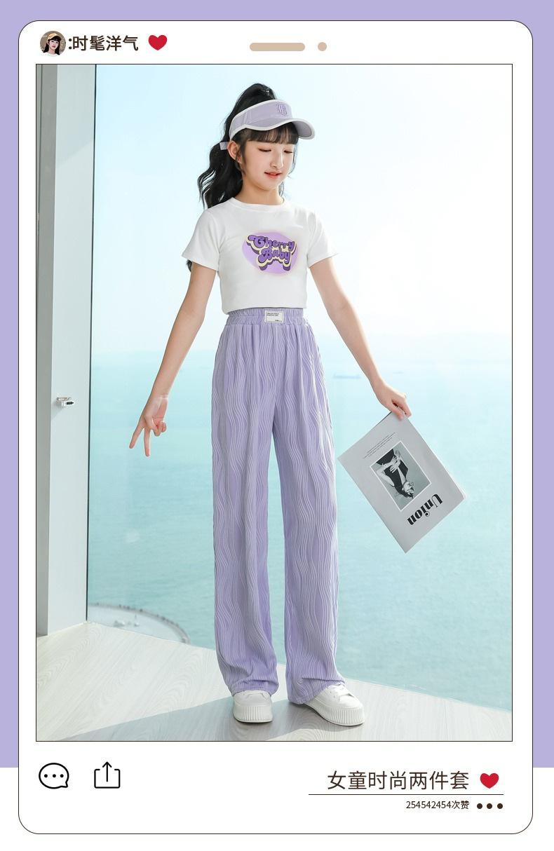 Traje de ropa de verano para niñas, ropa de verano para niños de estilo occidental frito, ropa infantil para niños medianos y grandes, pantalones casuales de pierna ancha a la moda deportiva