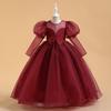 Nuevo Vestido de Boda Infantil Transfronterizo Europeo y Americano para Niñas Encaje Actuación de Piano Cumpleaños Anfitriona Princesa Esponjosa Falda Midi