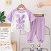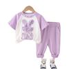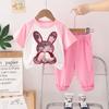 2025 Verano Nuevo Ropa Infantil para Niñas Moda Niña Lentejuelas Conejo Manga Corta Lazo Pantalones Conjunto de Dos Piezas