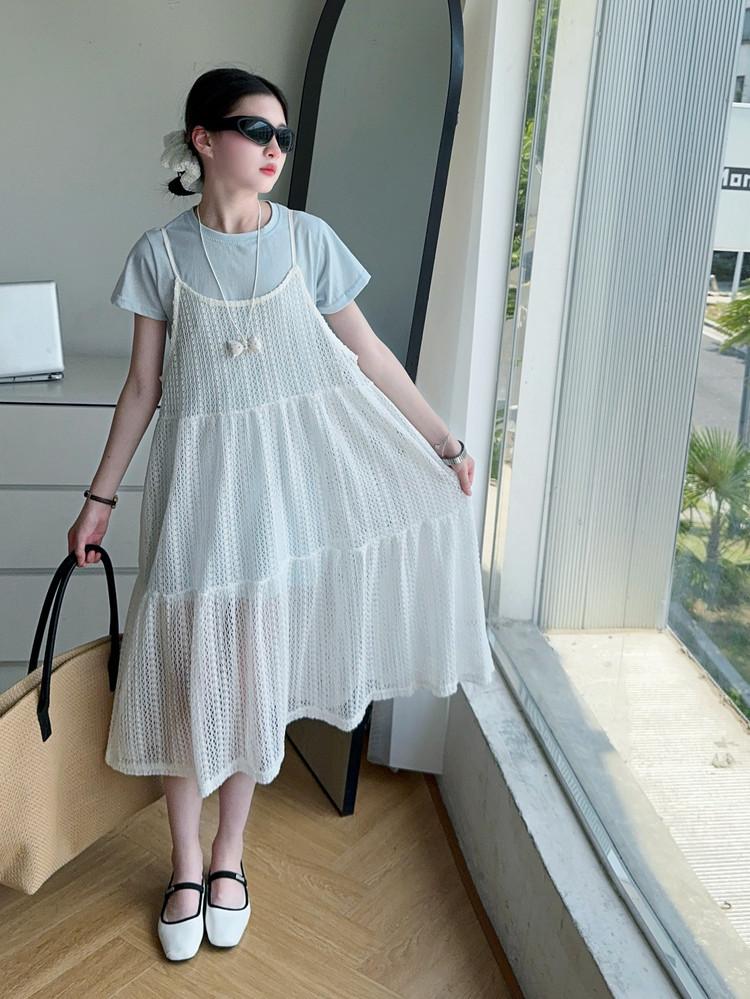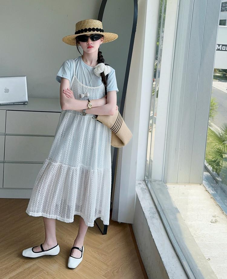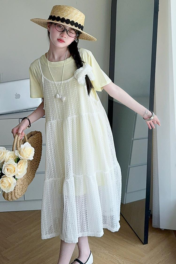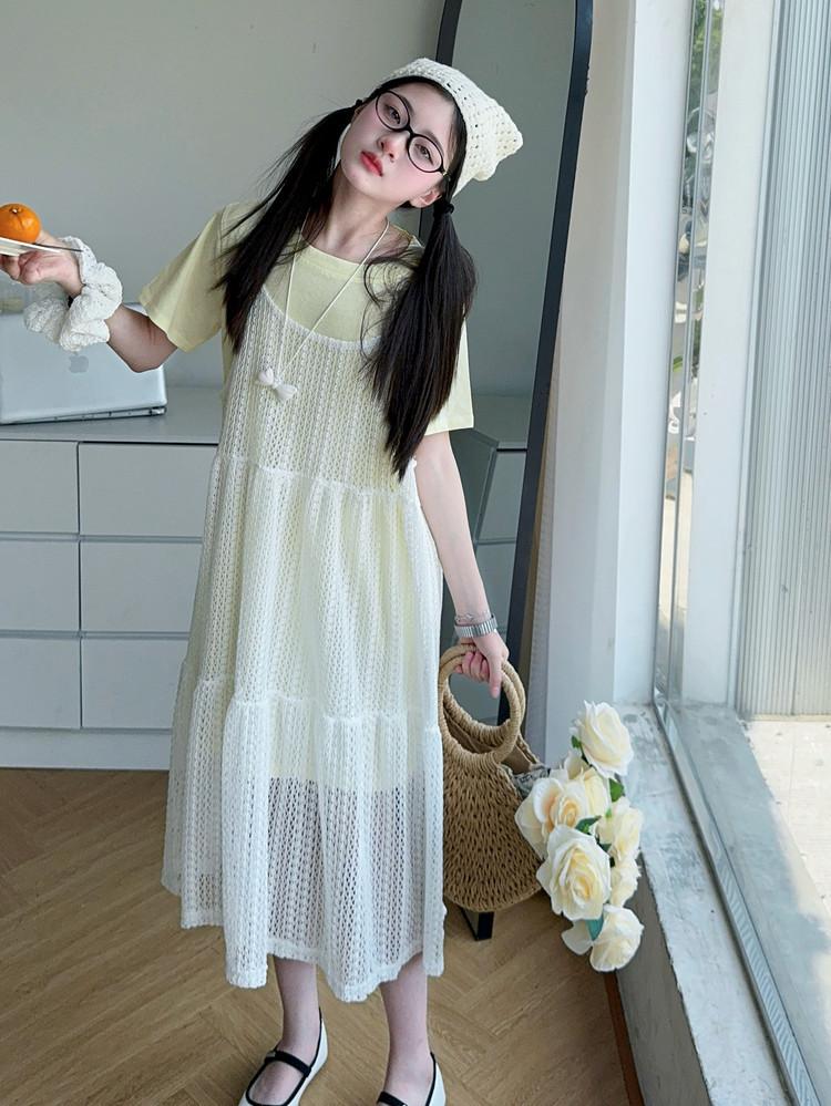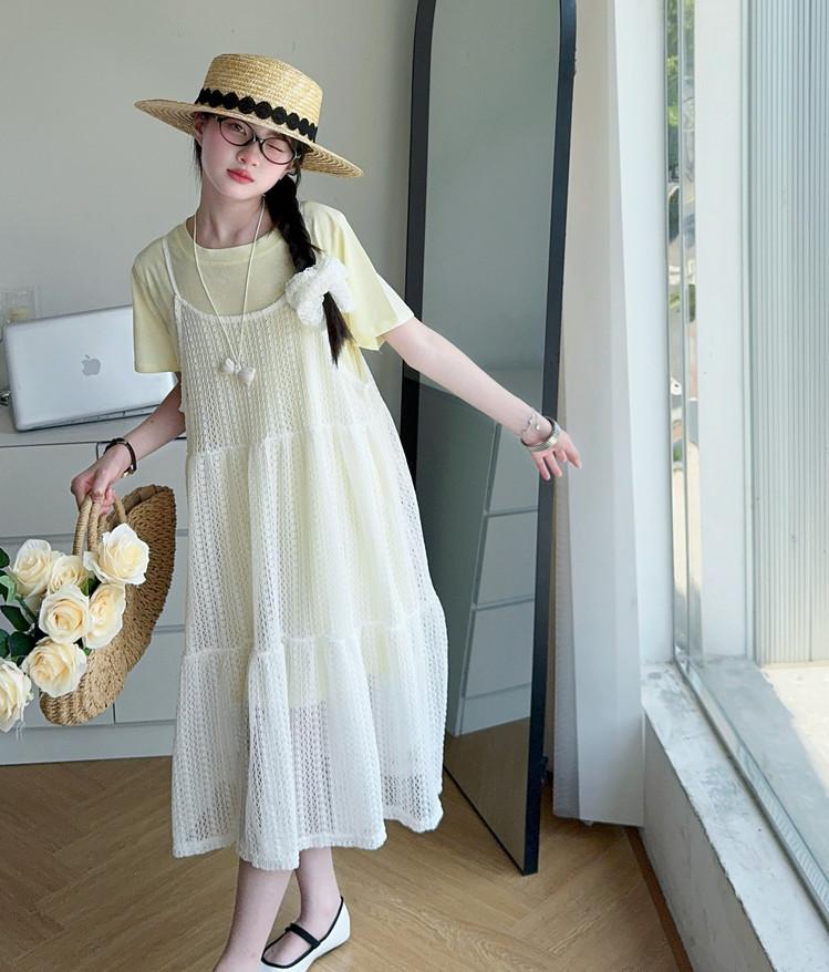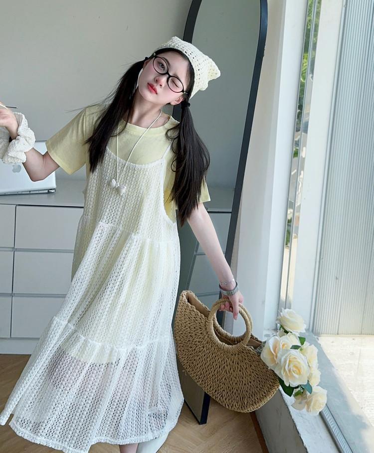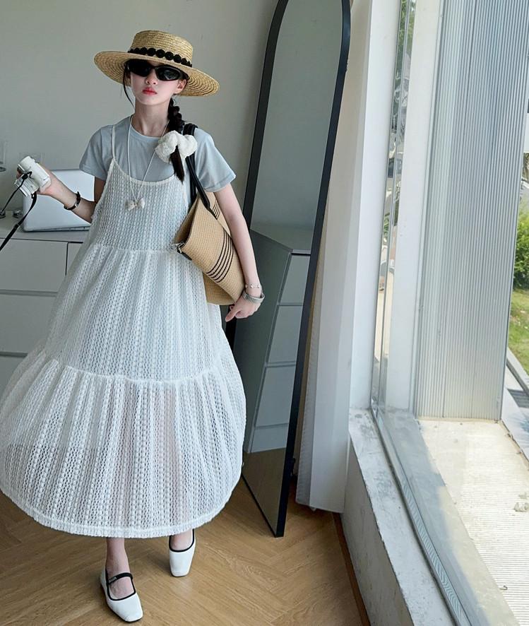 Vestido de Verano para Niñas 2025 Nuevo Elegante Transfronterizo Niños Grandes Vestido de Tirantes de Verano Conjunto de Vestido Largo a la Moda