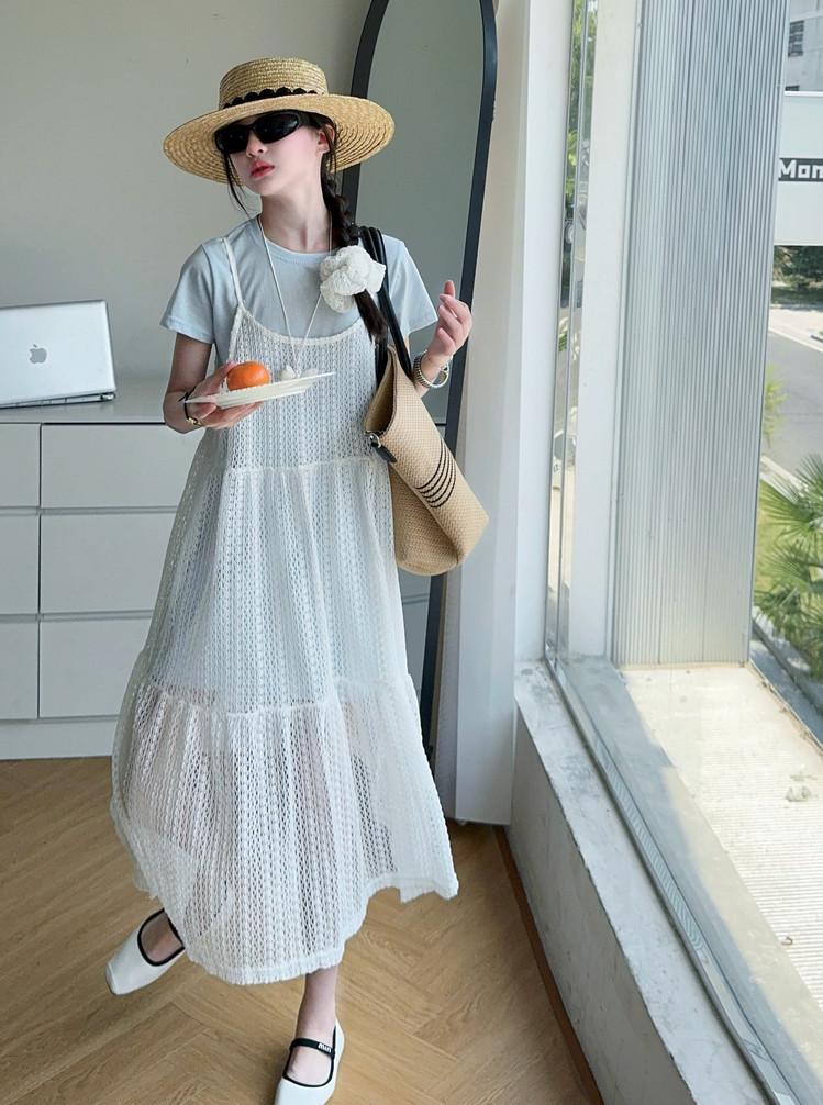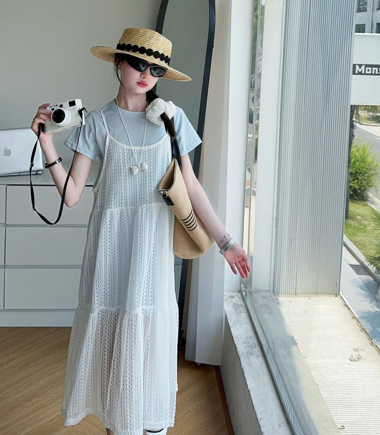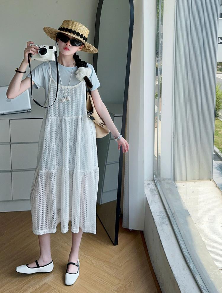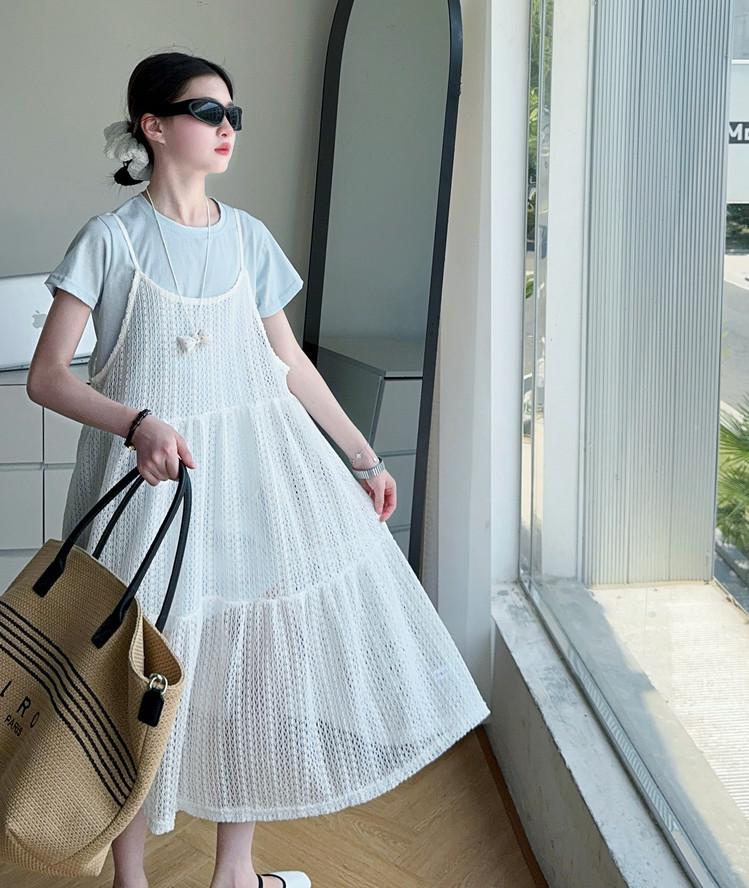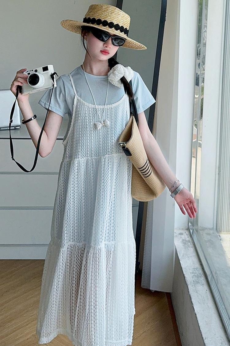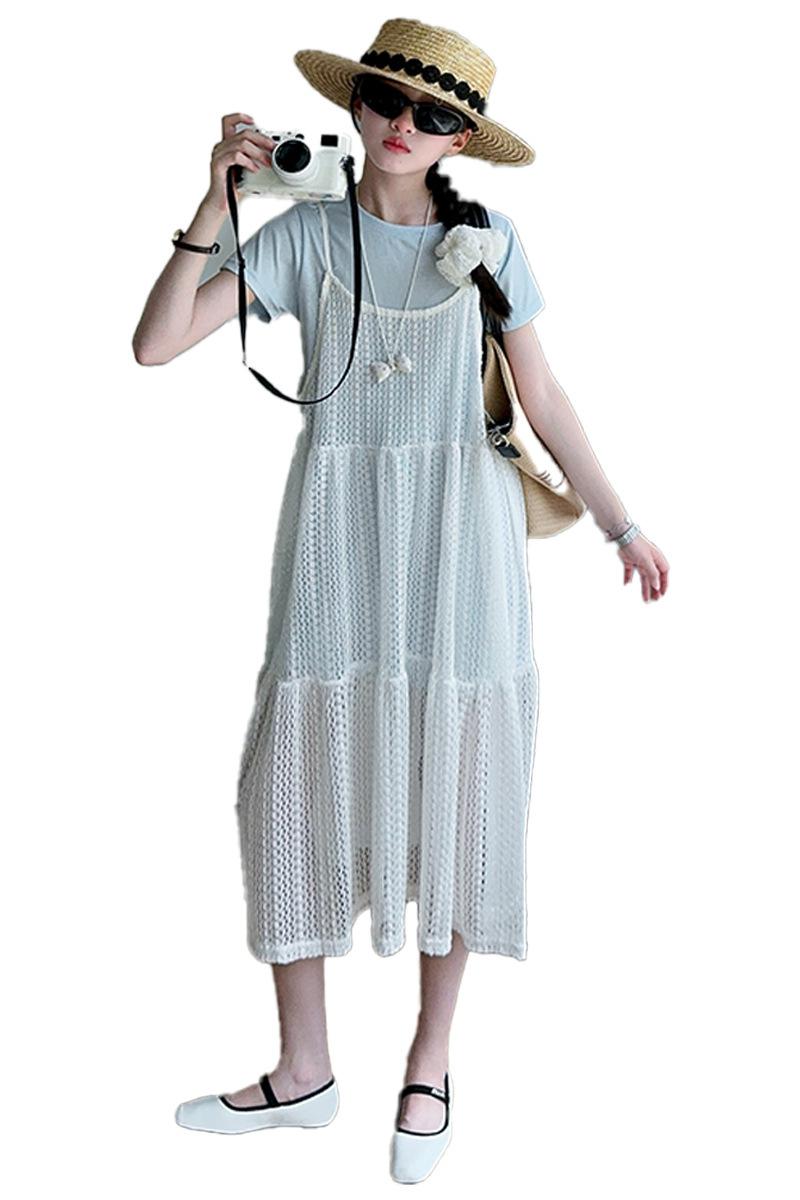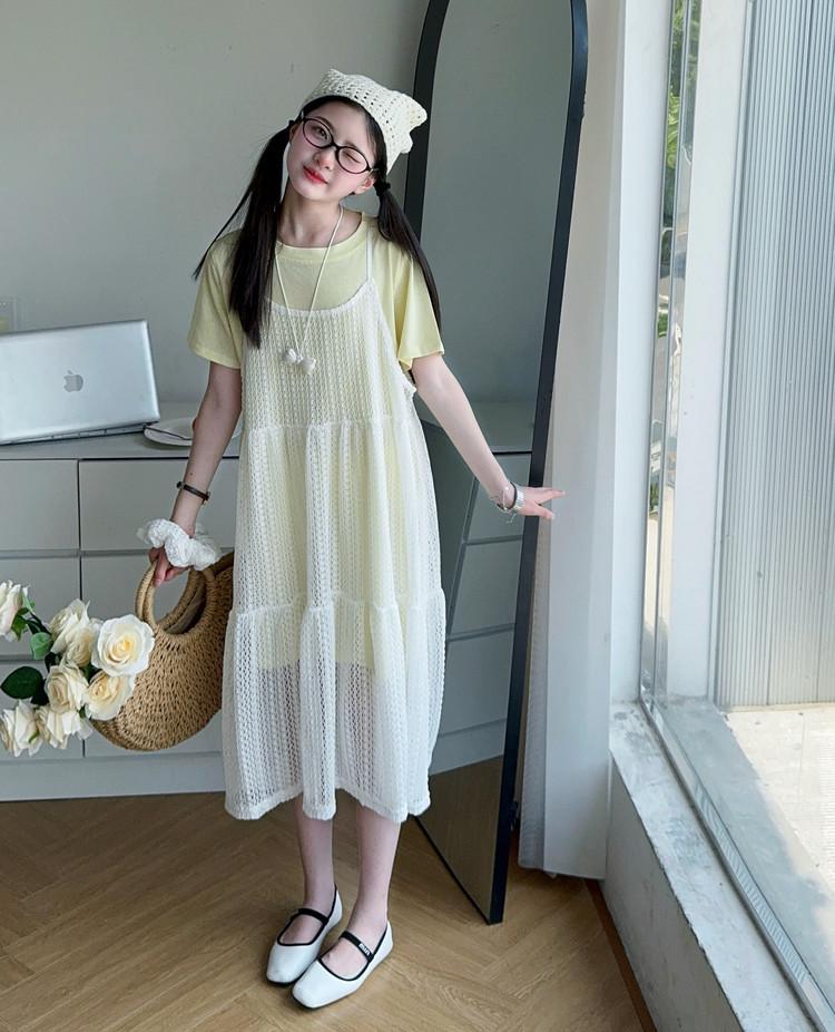 Vestido de Verano para Niñas 2025 Nuevo Elegante Transfronterizo Niños Grandes Vestido de Tirantes de Verano Conjunto de Vestido Largo a la Moda