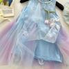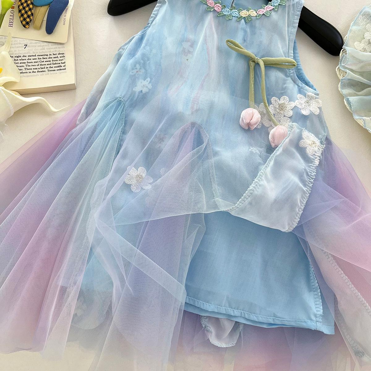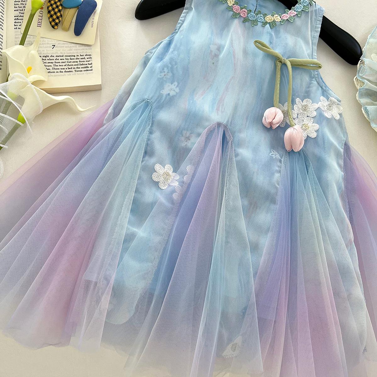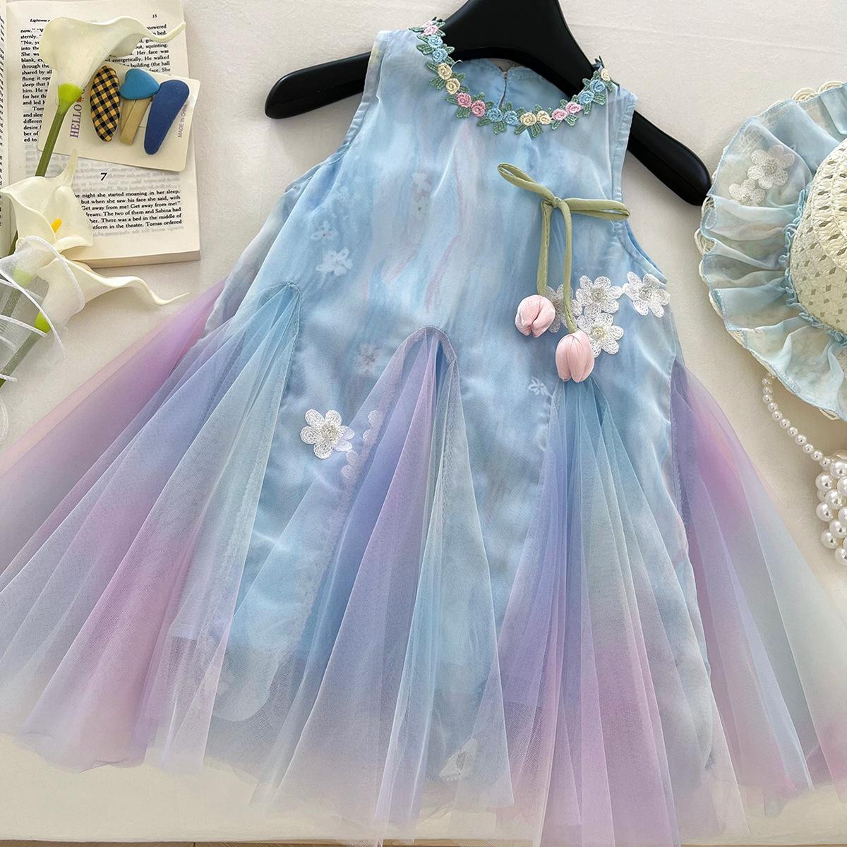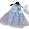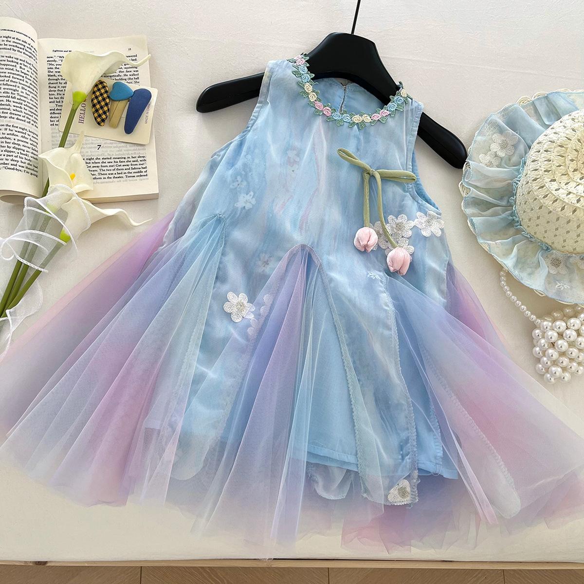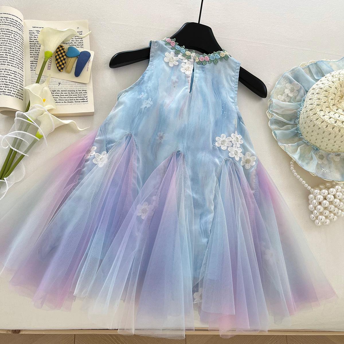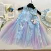 Vestido sin Mangas para Niña Verano 2025 Nuevo Vestido Chaleco con Empalme de Malla Vacaciones Bebé Niña Vestido de Princesa Abullonado