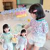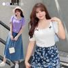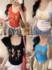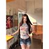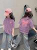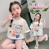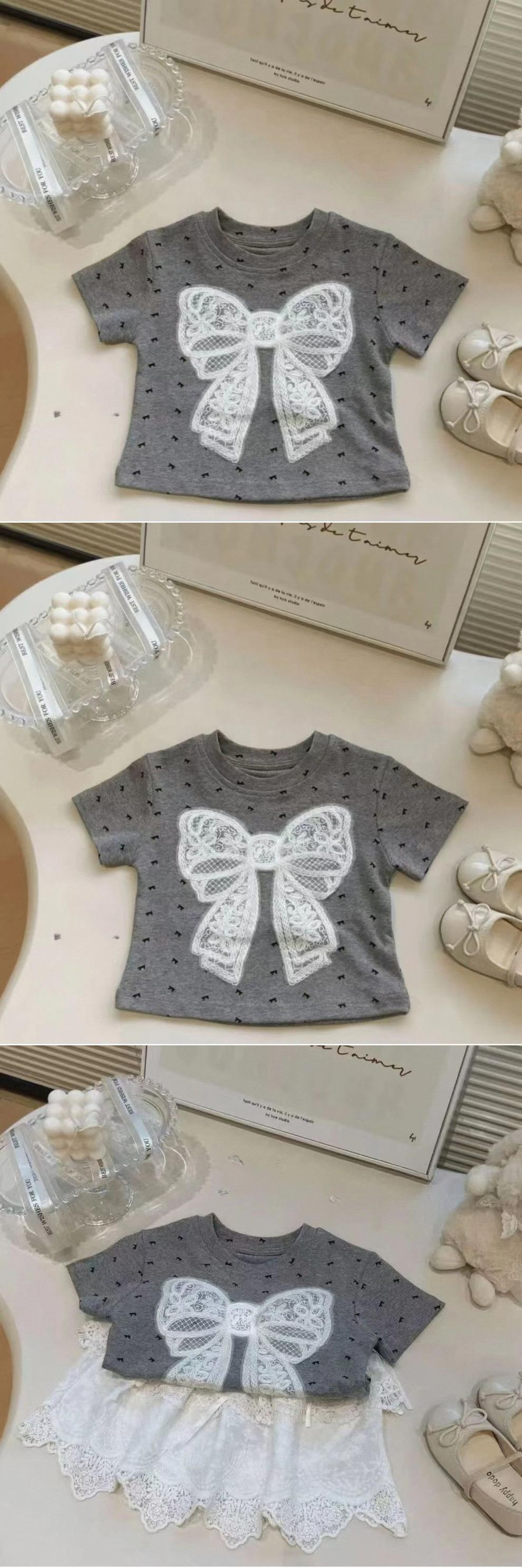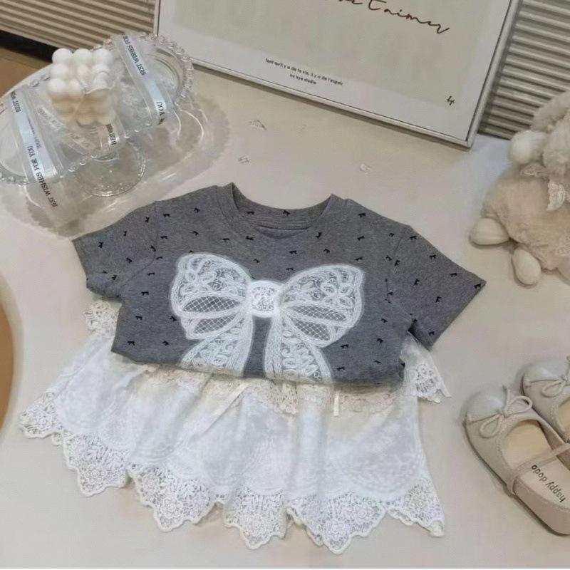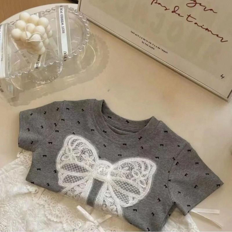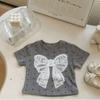 Moda de Verano para Niñas Camiseta de Manga Corta con Base Gris Estampada con Lazo Tridimensional Moda Trendy Camiseta Popular