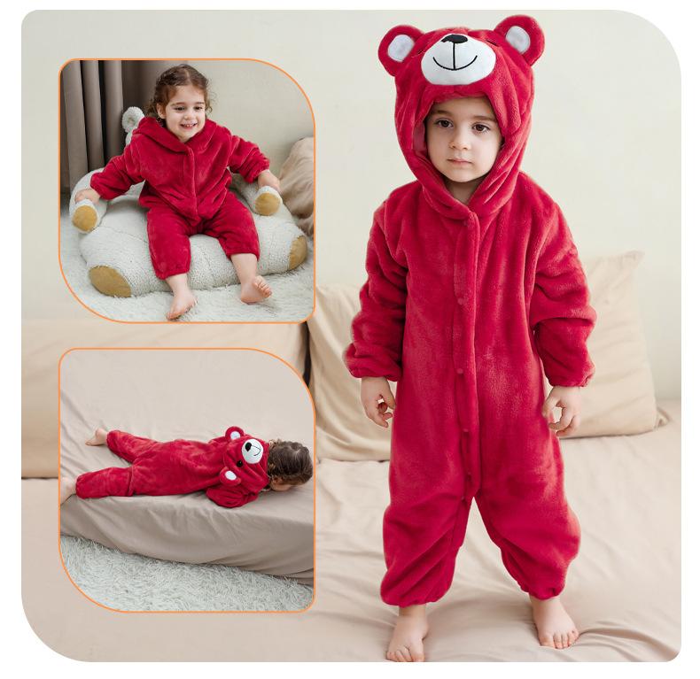 Traje de Franela para Gatear Michley Mameluco con Forma de Oso Traje para Gatear para Bebé y Niño Pequeño Mameluco de Franela Transfronterizo