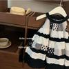 Vestido de Chaleco Halterneck con Empalme de Lunares de Moda Coreana para Niñas Verano 2025 Vestido de Estilo Vacacional de Estilo Coreano para Niños