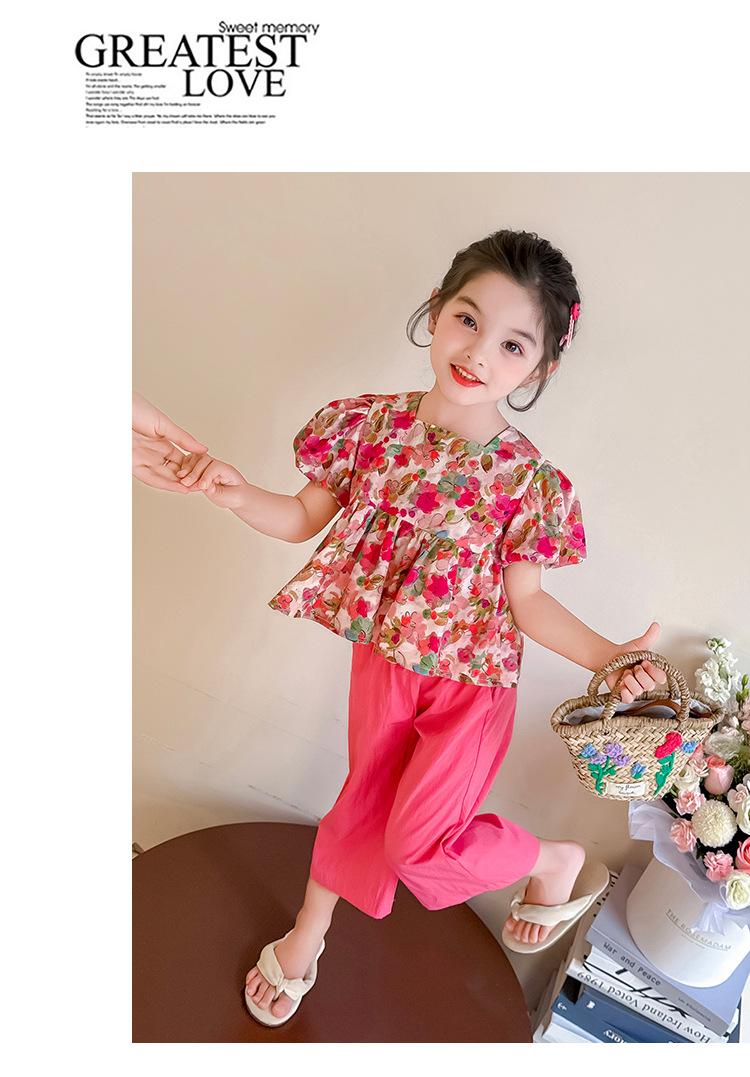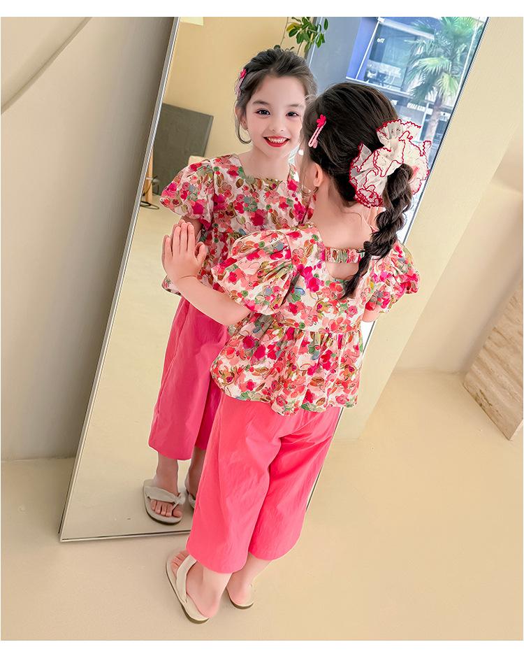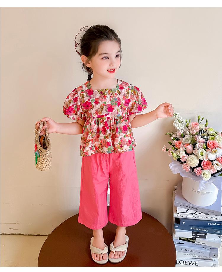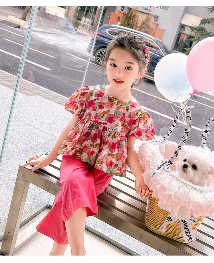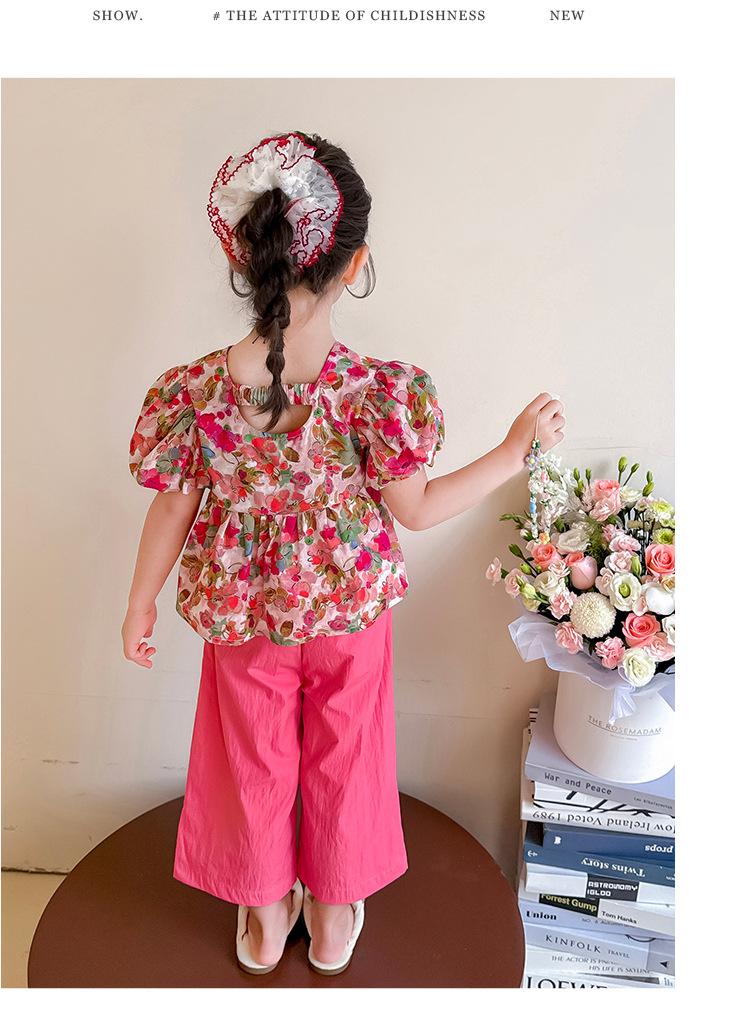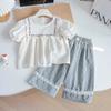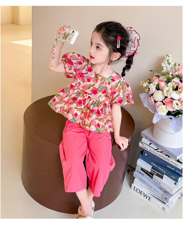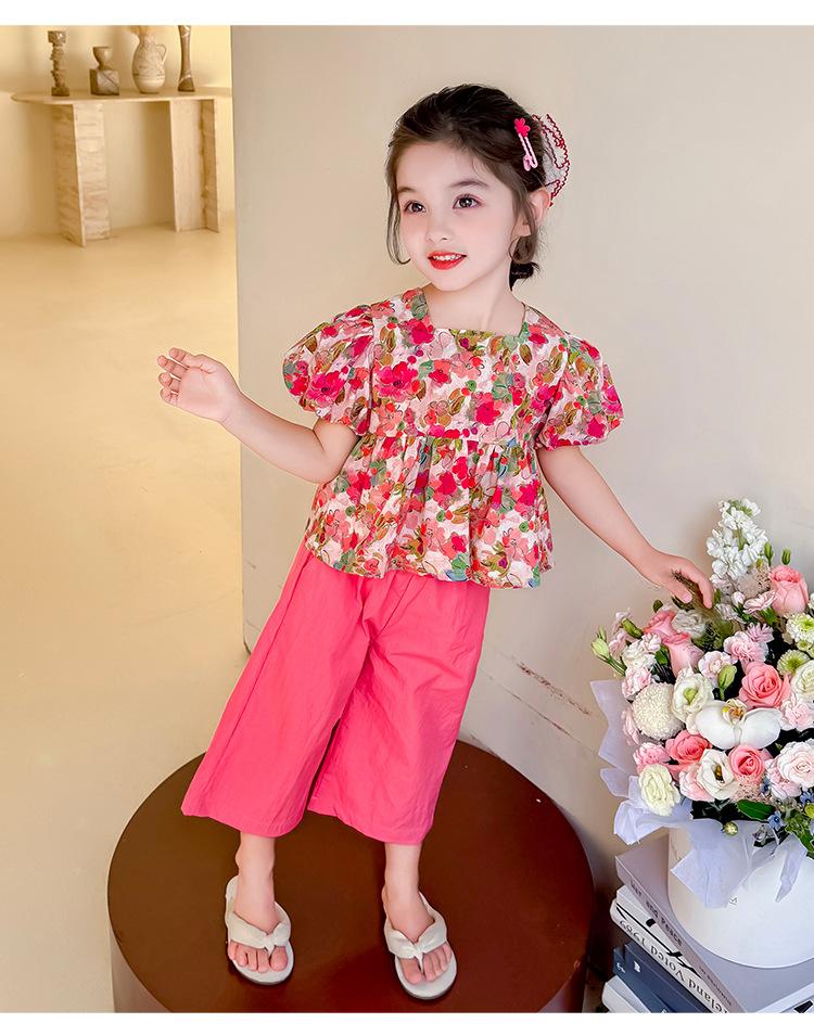 Traje de Verano para Niñas 2025 Nuevo Niña Pequeña Moda Coreana Camisa de Muñeca Floral Moderna Pantalones de Pierna Ancha Conjunto Casual de Dos Piezas